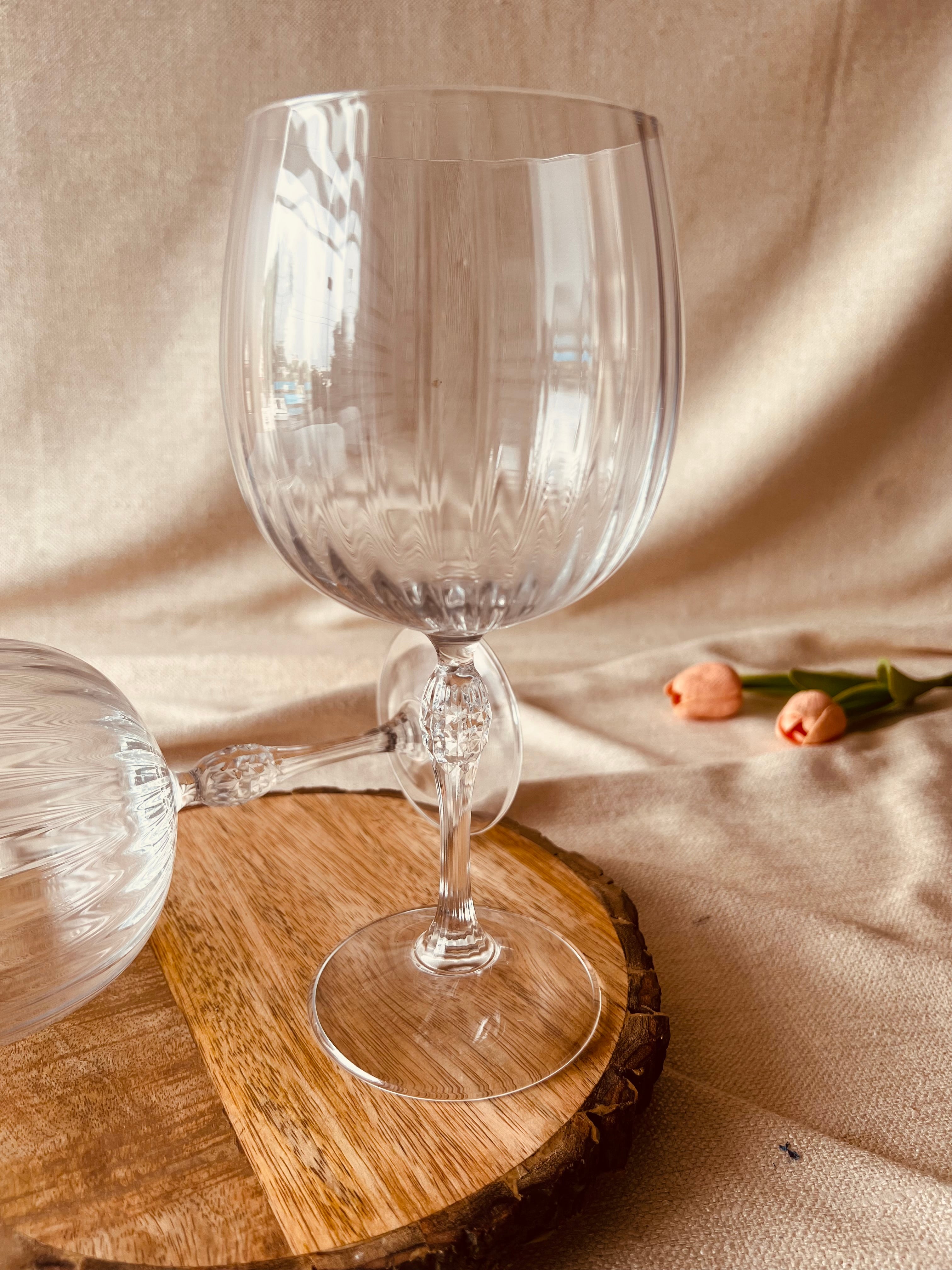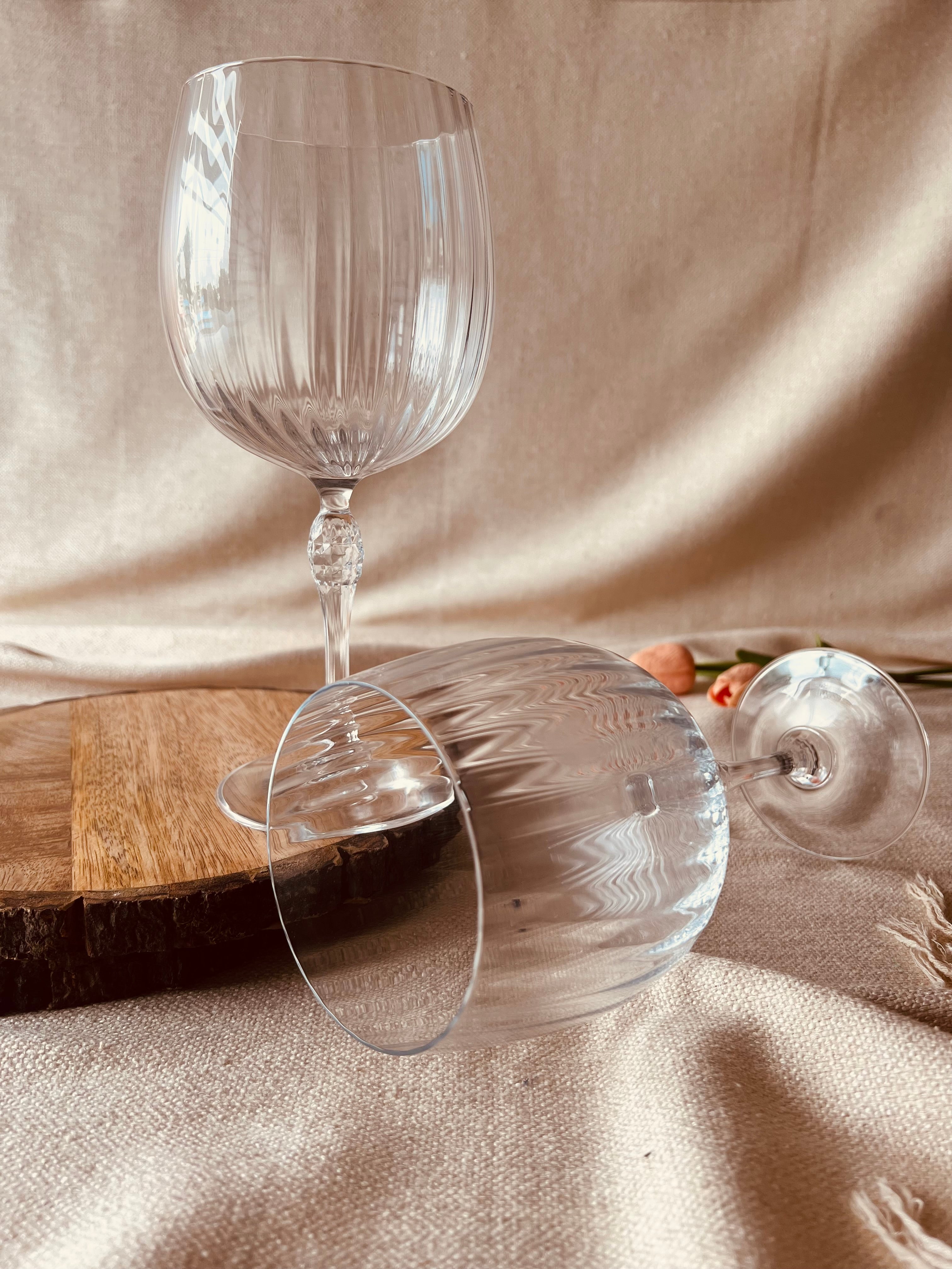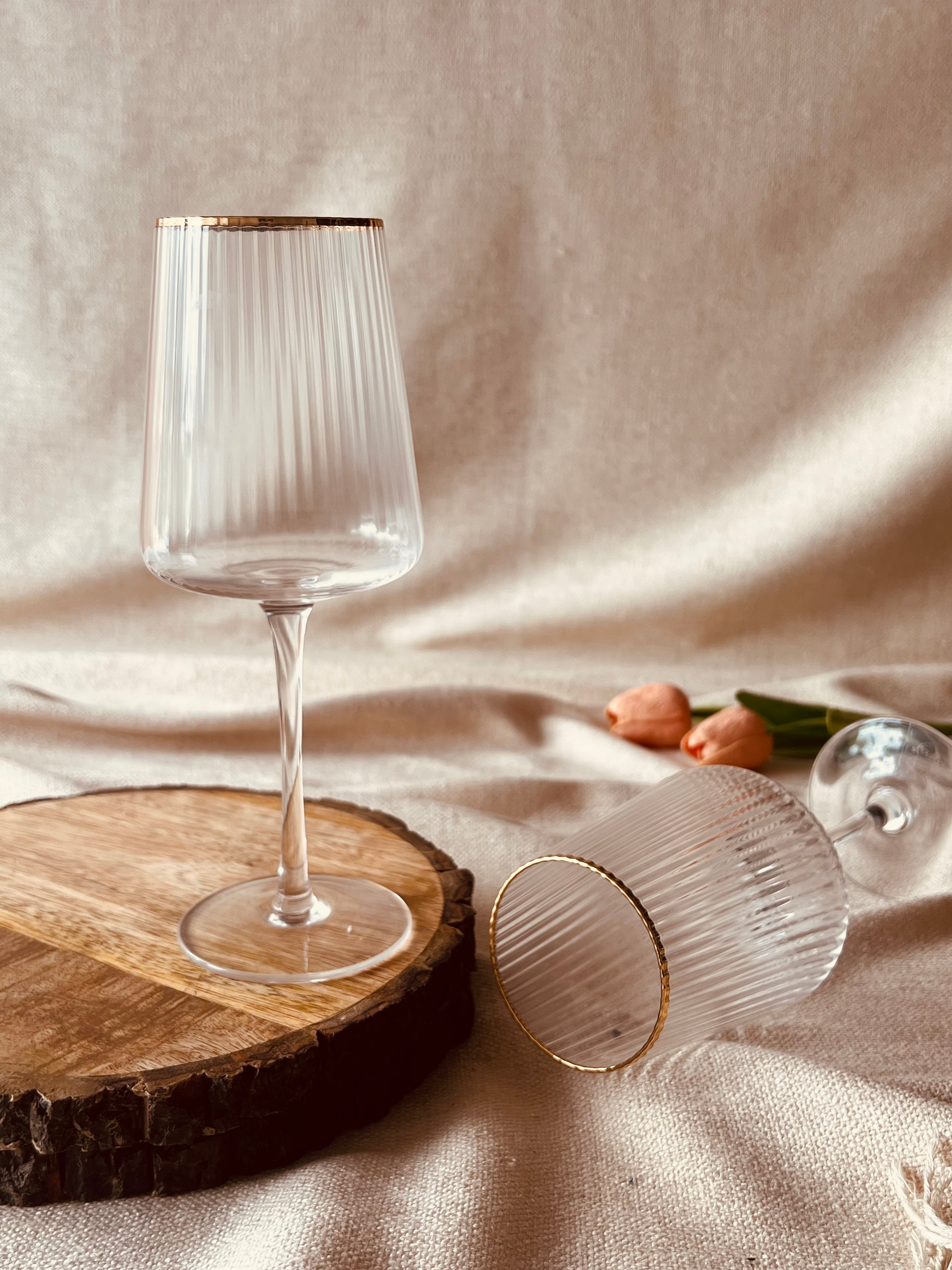 Ribbed Wine Glasses with Golden Rim - Set of 4