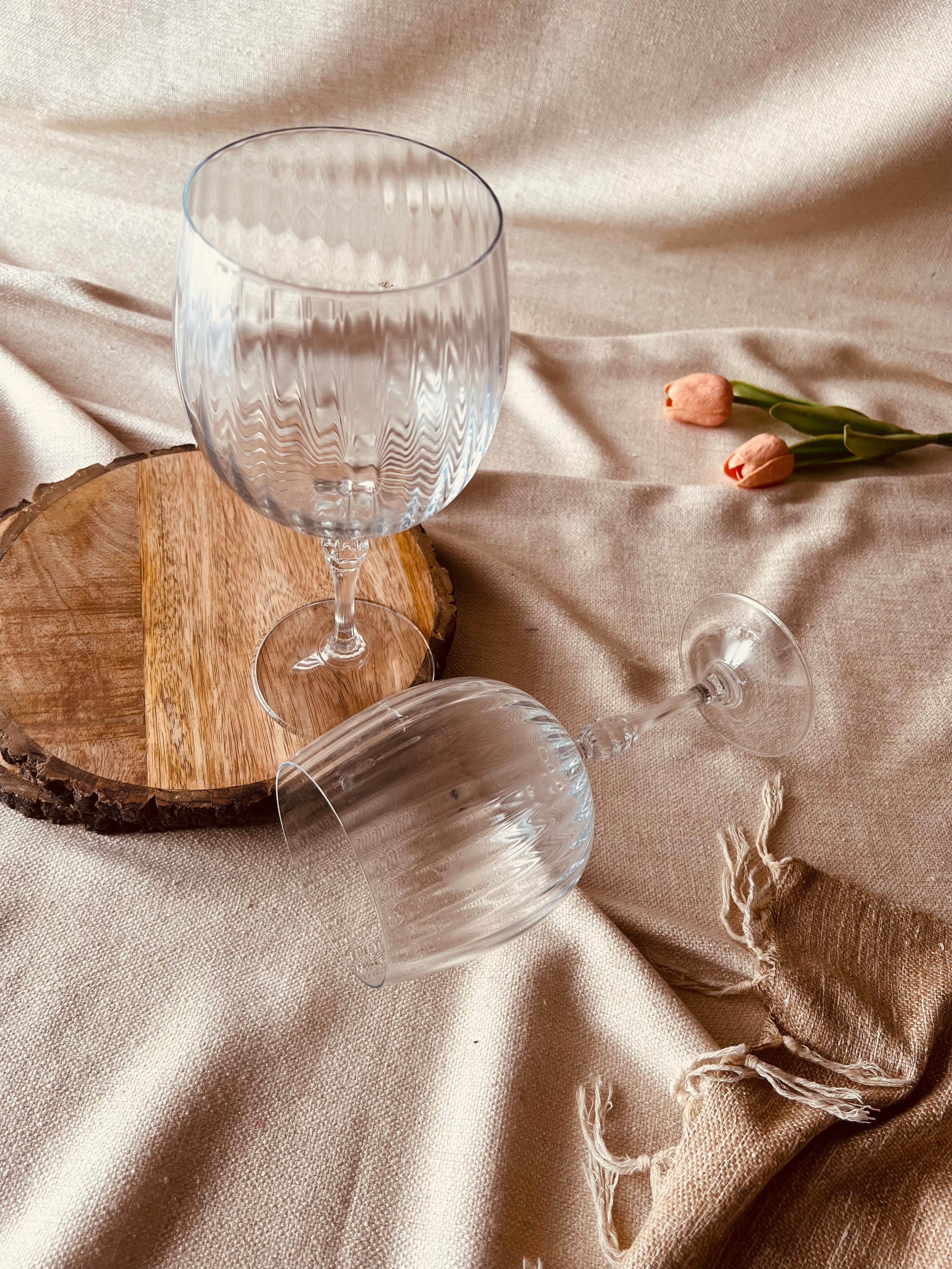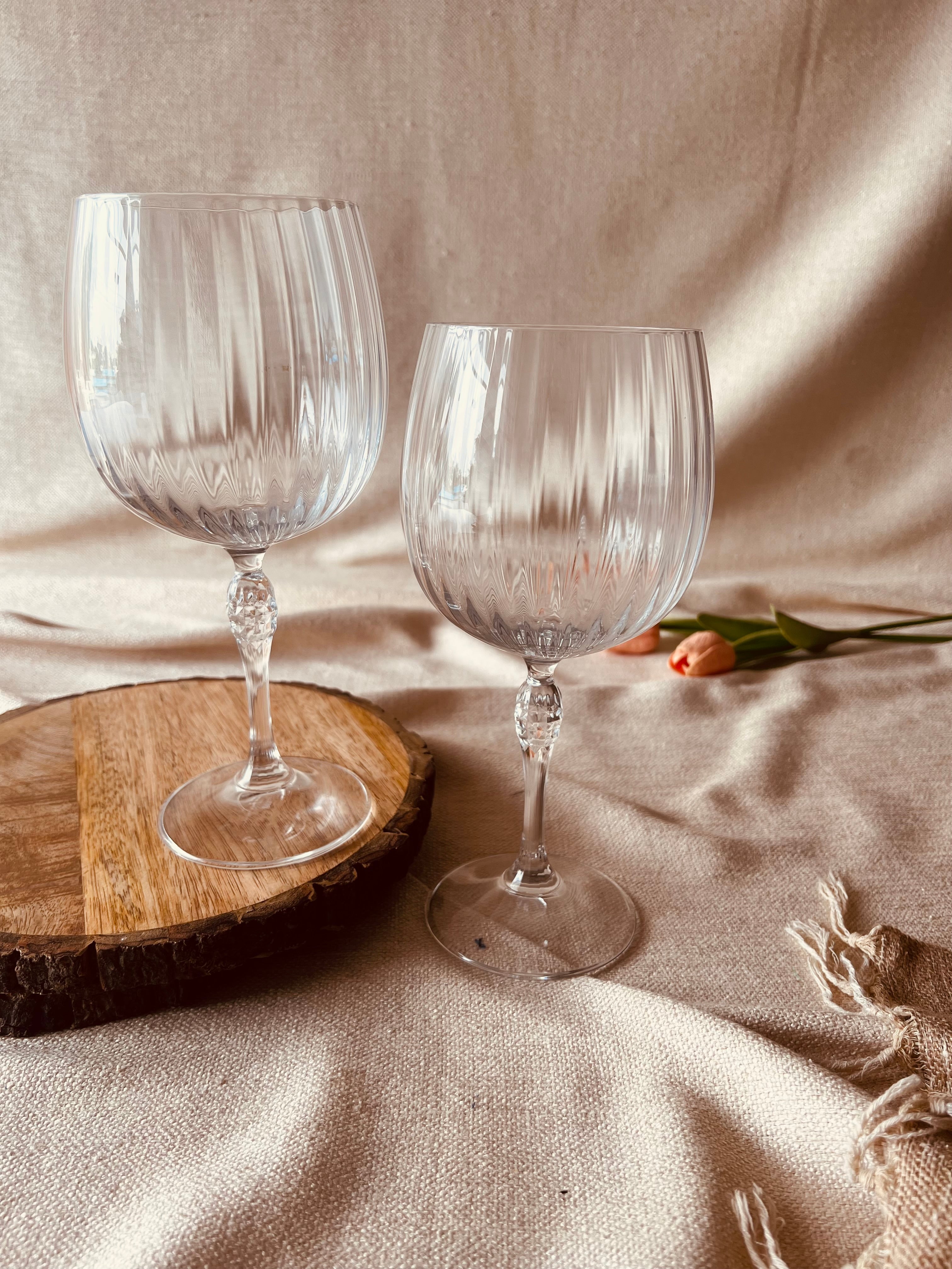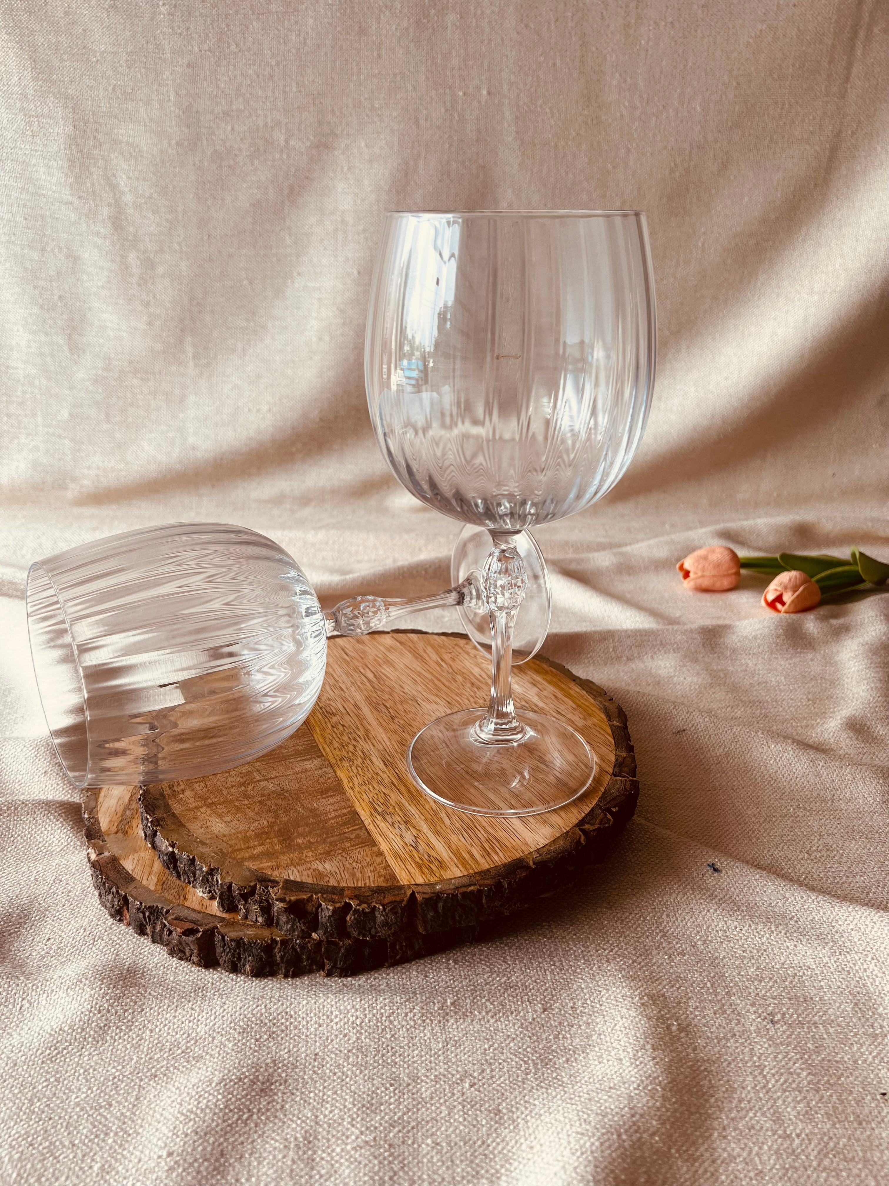 Ribbed Wine Glasses with Golden Rim - Set of 4