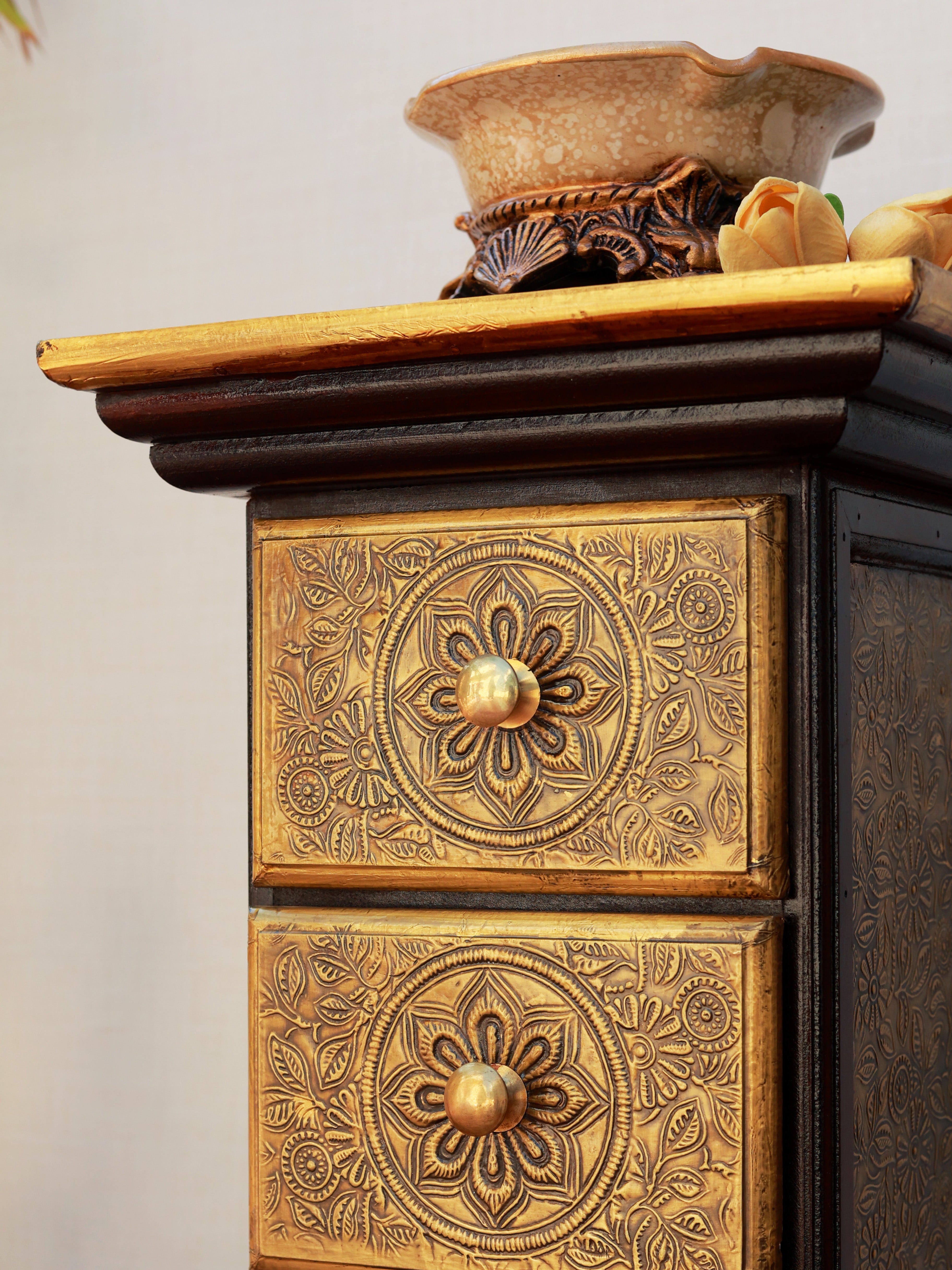 Tall wine glass with Royal black stem and golden base (Set of 4)