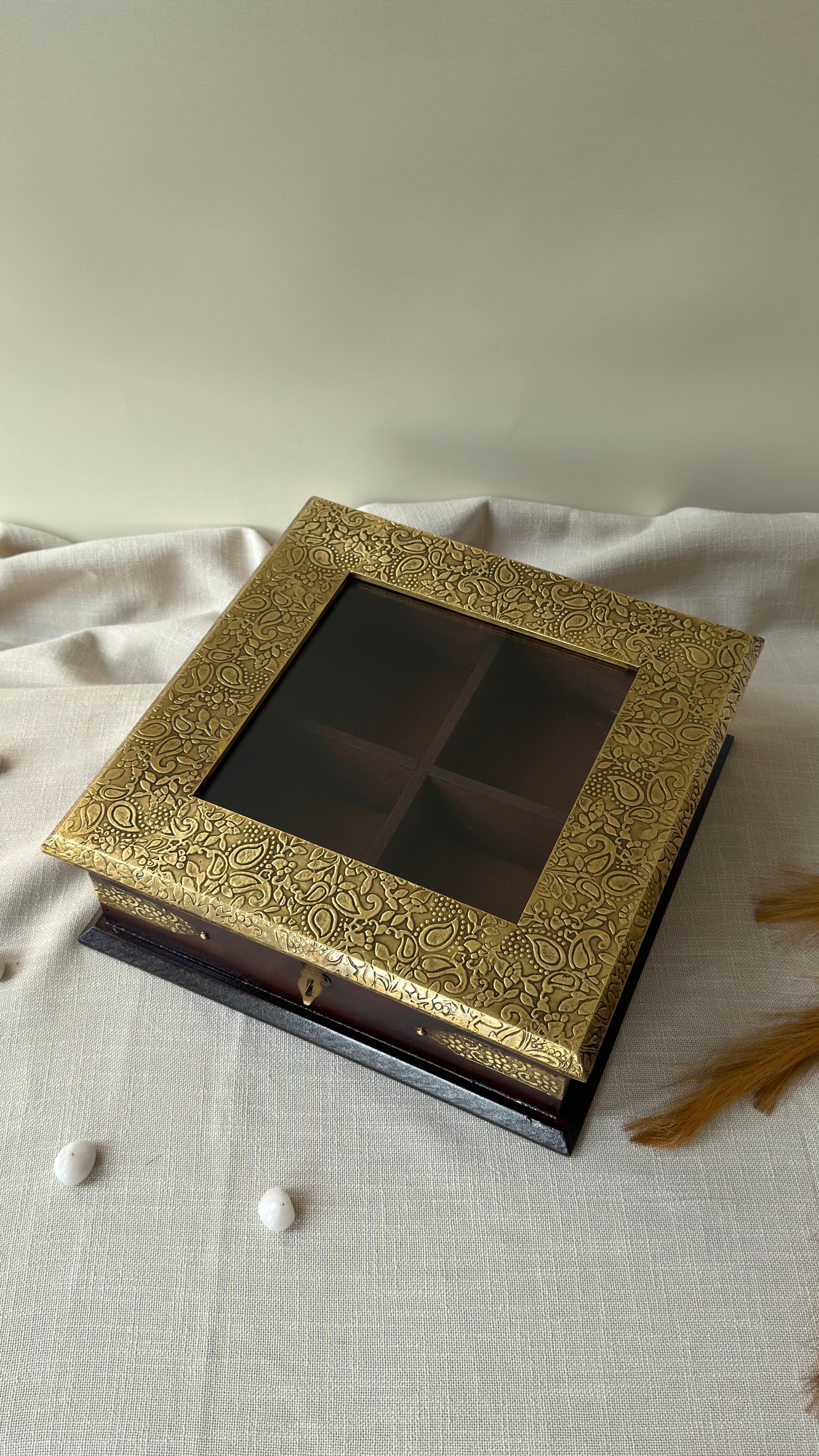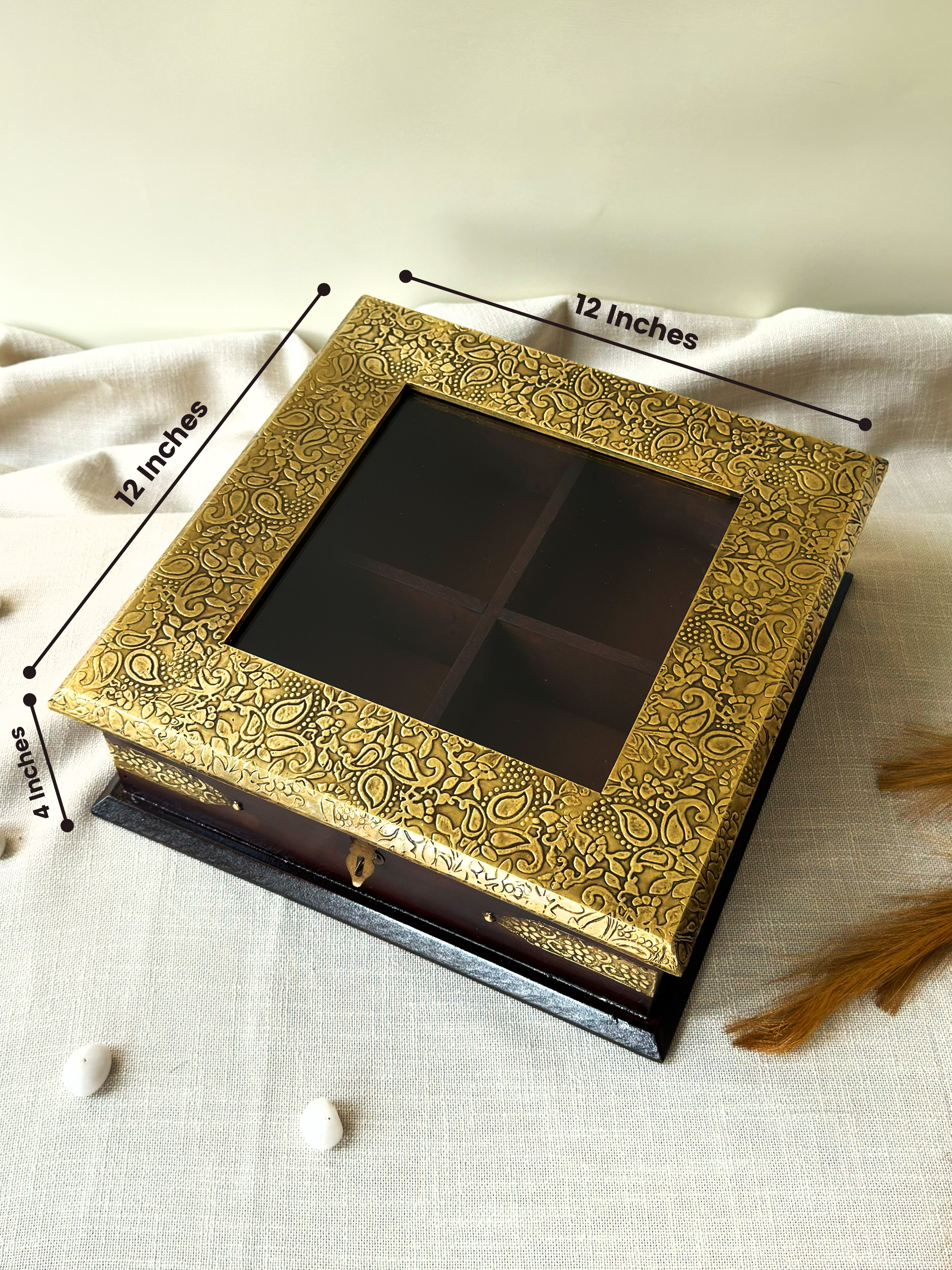 Handcrafted Brass Fitted Wooden Storage Box