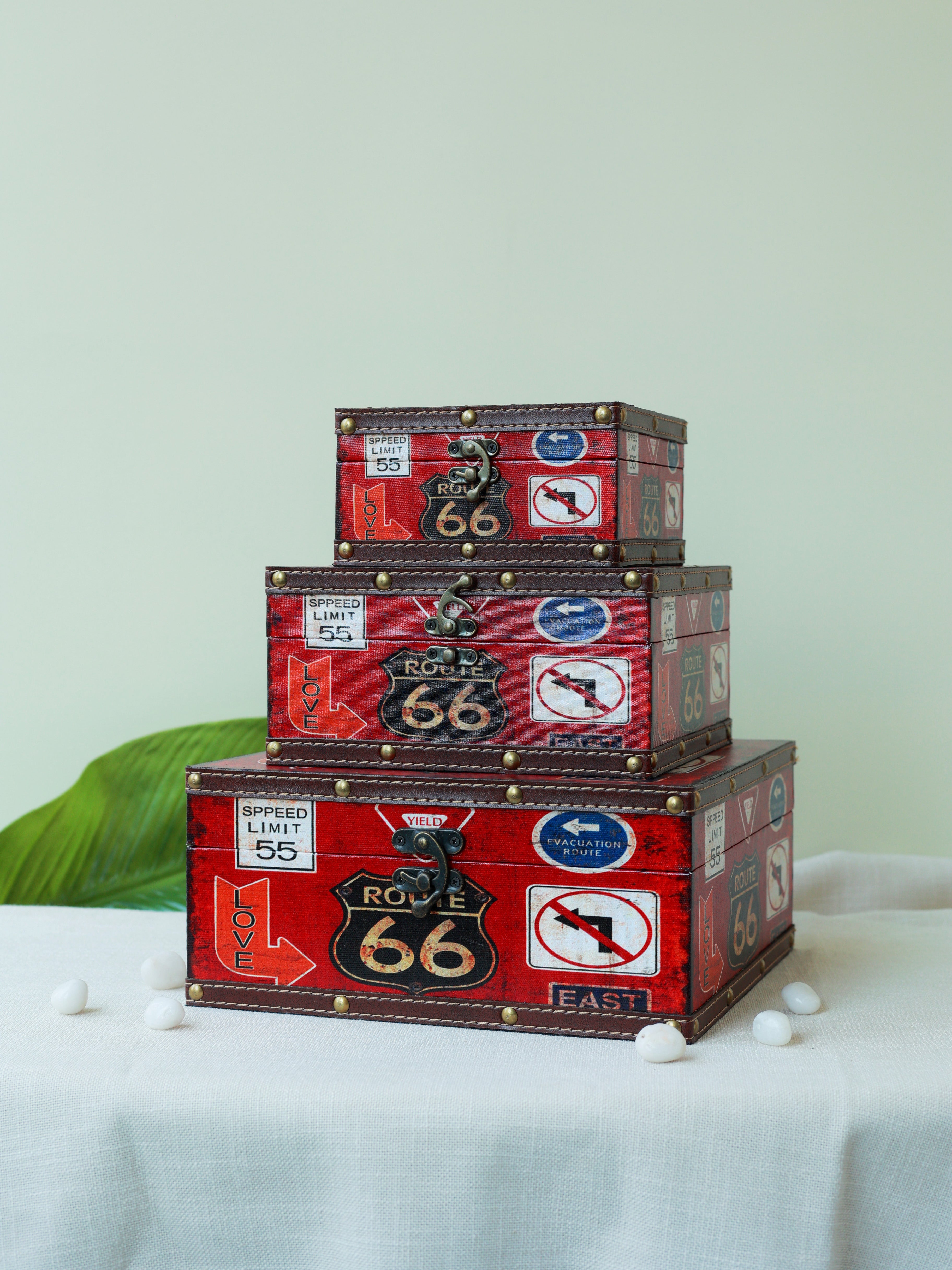 Route 66 Vintage Storage Trunk Set