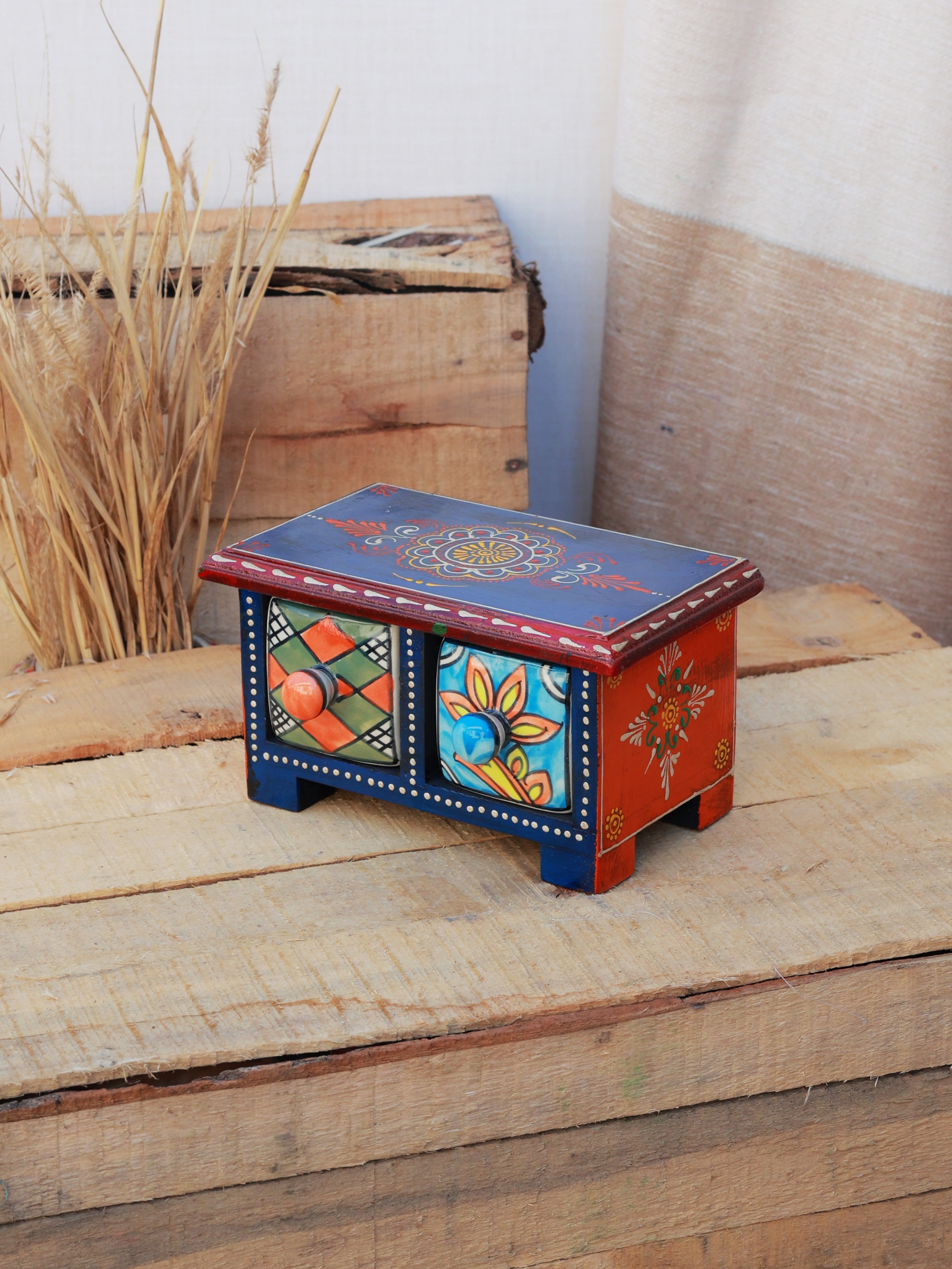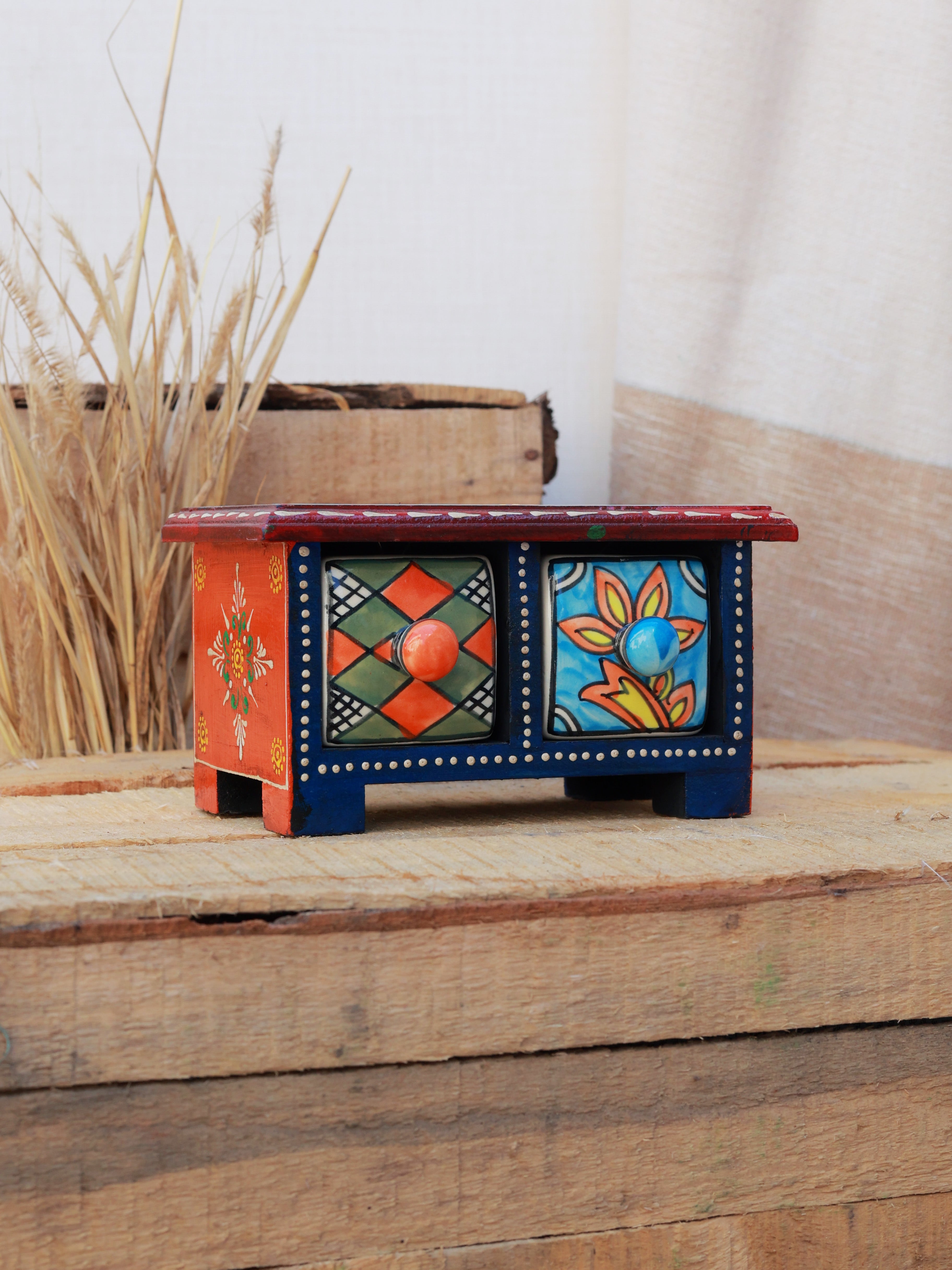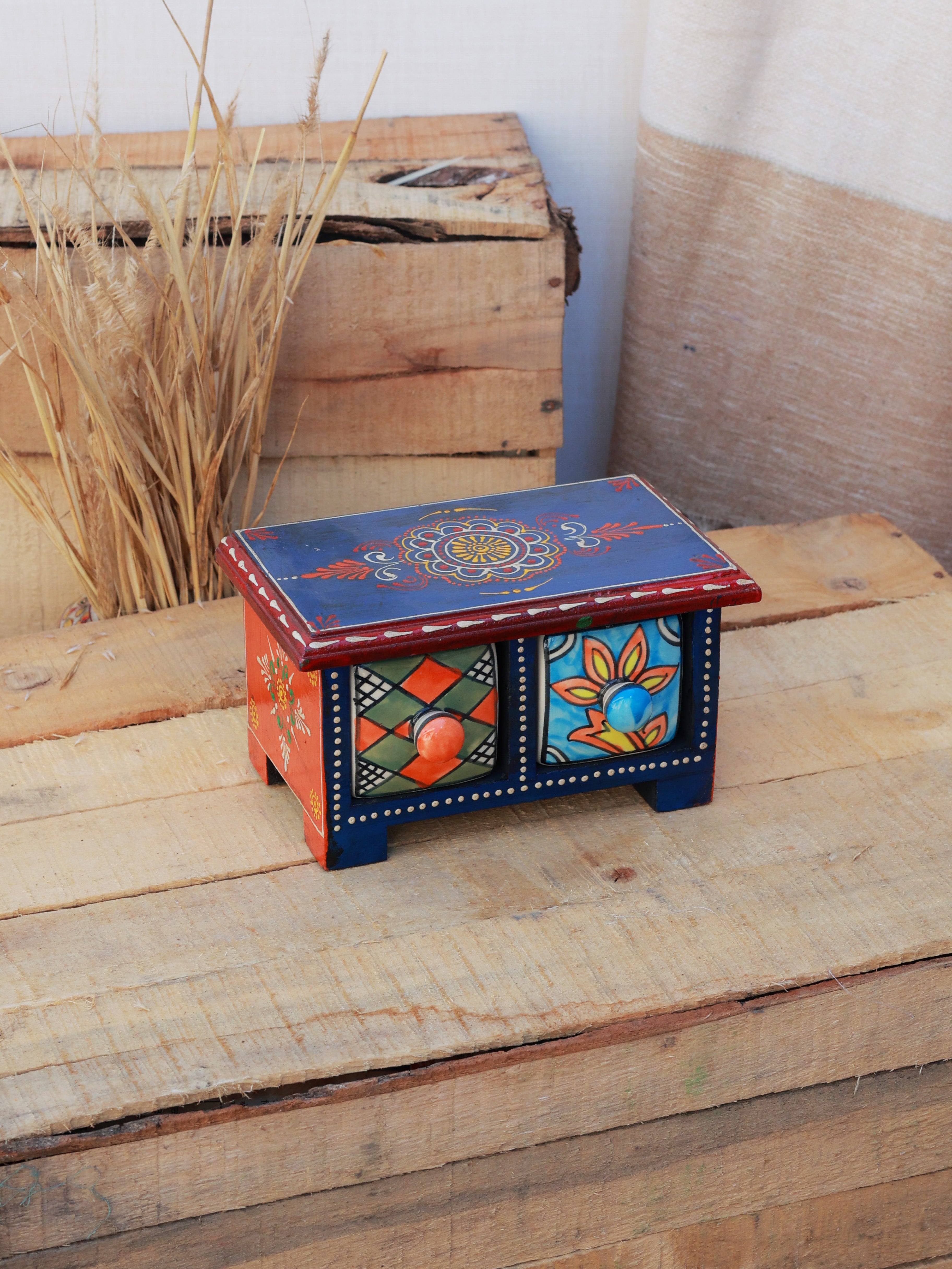 The Rangoli Ceramic Tile Drawer Box is a charming blend of artistry and functionality. Crafted with vibrant ceramic tiles and a sturdy wooden frame, it’s perfect for organizing jewelry, keepsakes, or small trinkets in style. Its intricate design adds a touch of traditional elegance to any room. This exquisite box also makes a thoughtful gift for weddings, anniversaries, or special occasions, delighting anyone who loves both beauty and utility.