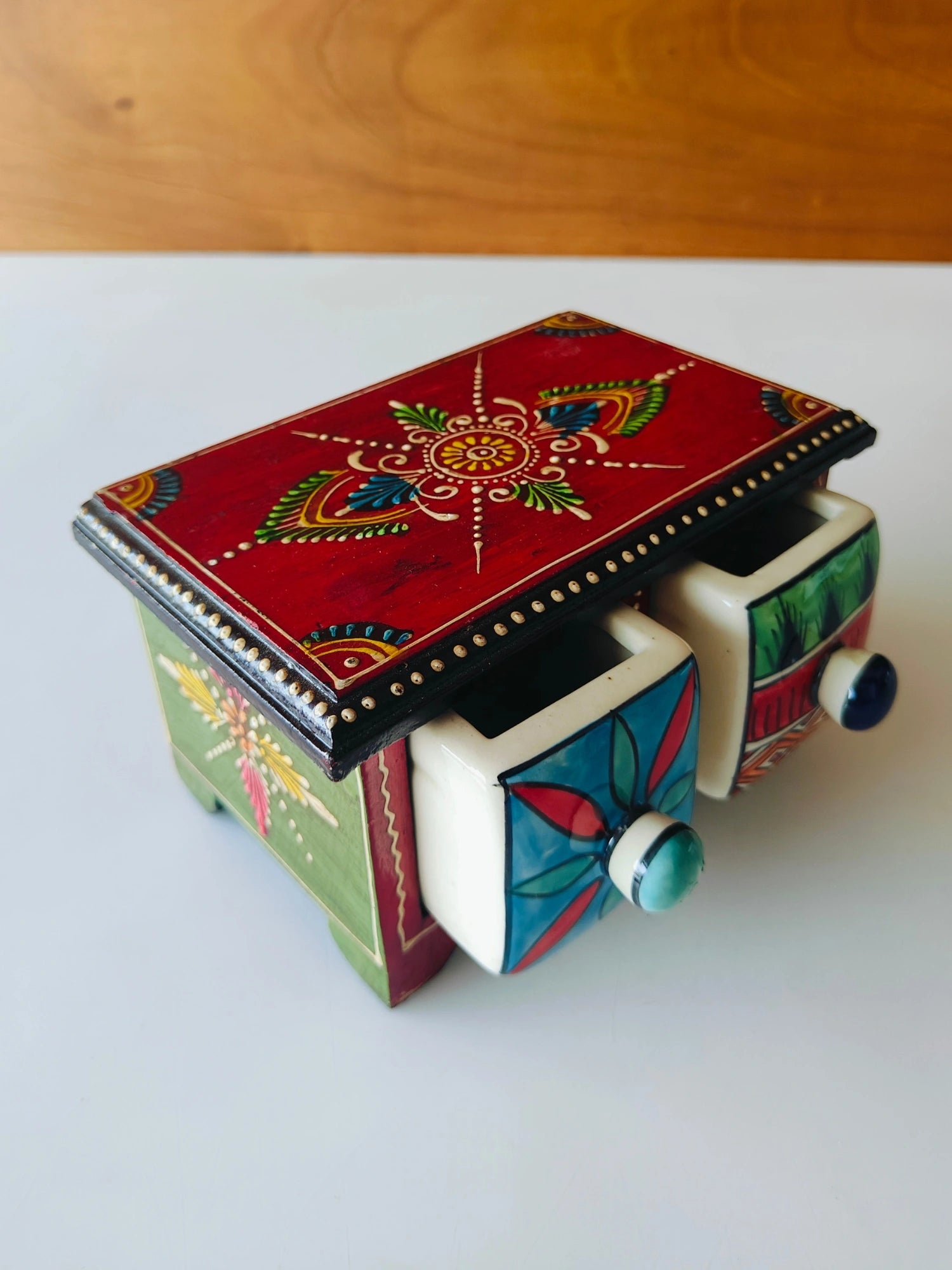 Bring color and charm into your space with this beautifully handcrafted Hand-Painted Wooden Ceramic Drawer Box. Perfectly blending function and artistry, it’s ideal for organizing small items while adding a touch of elegance to any room.