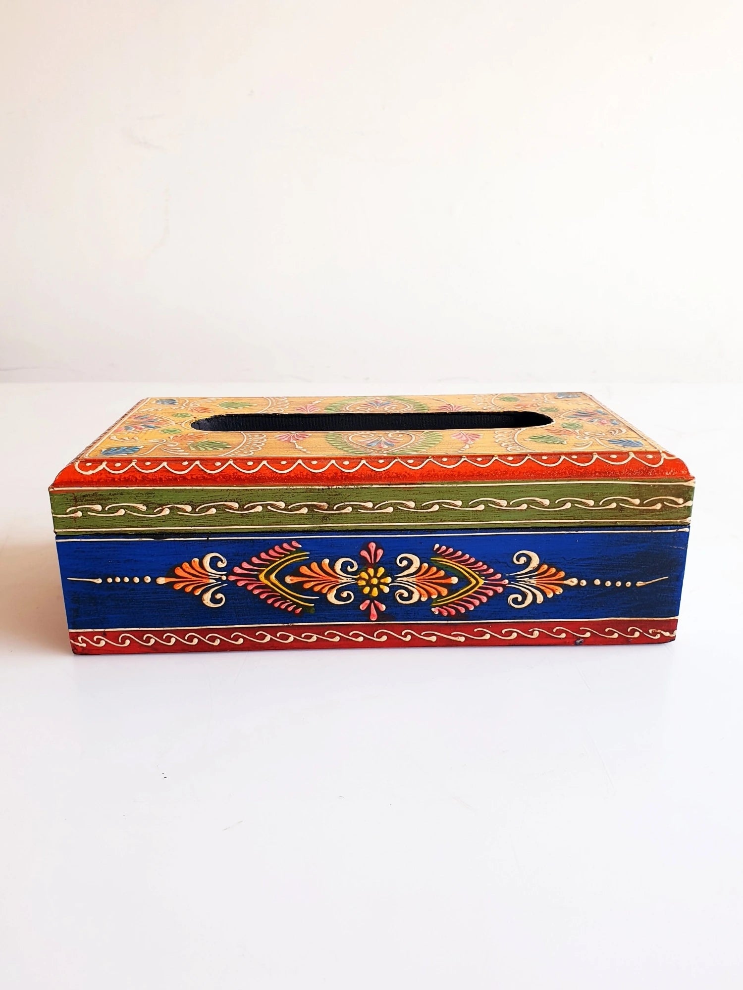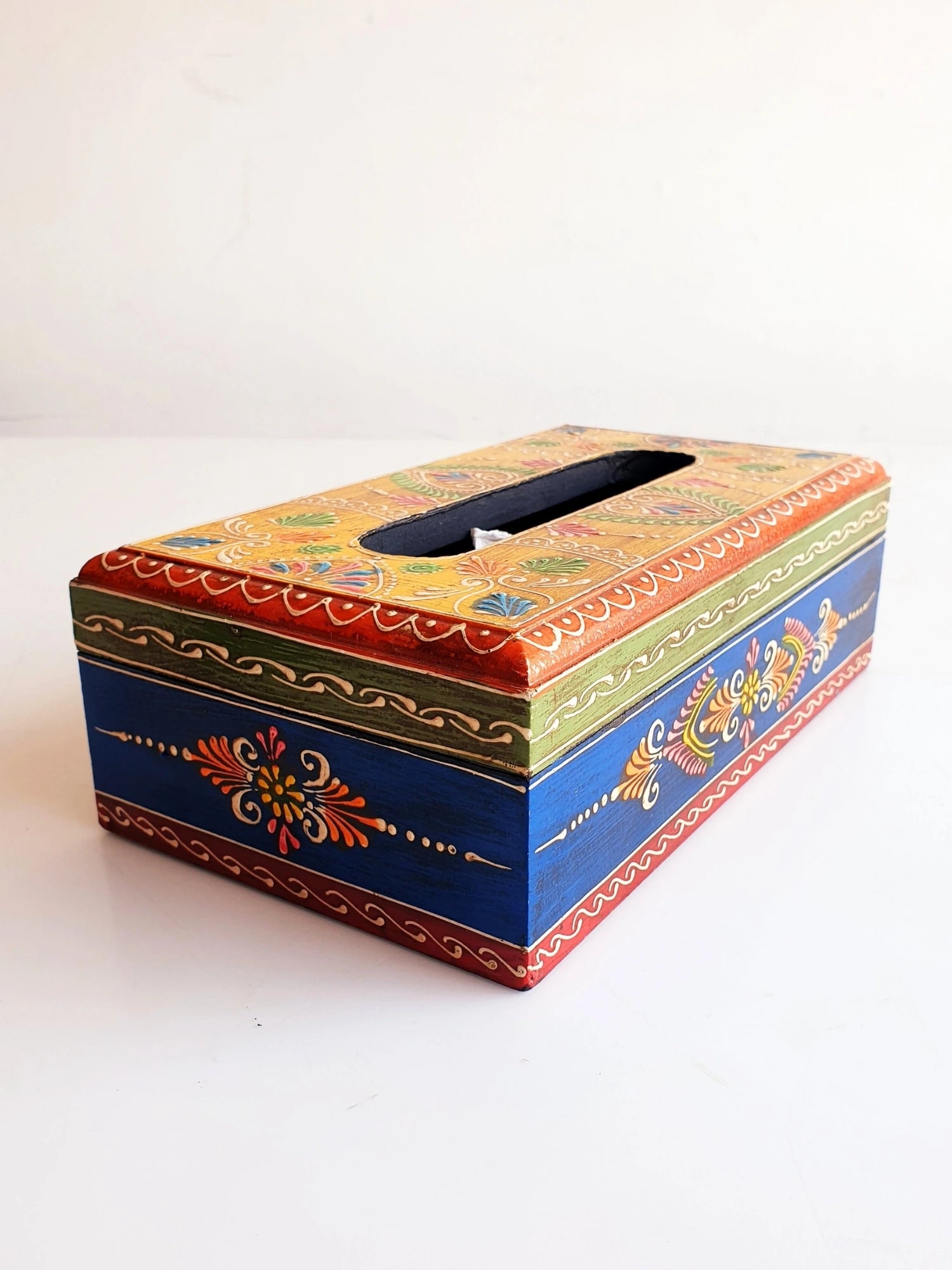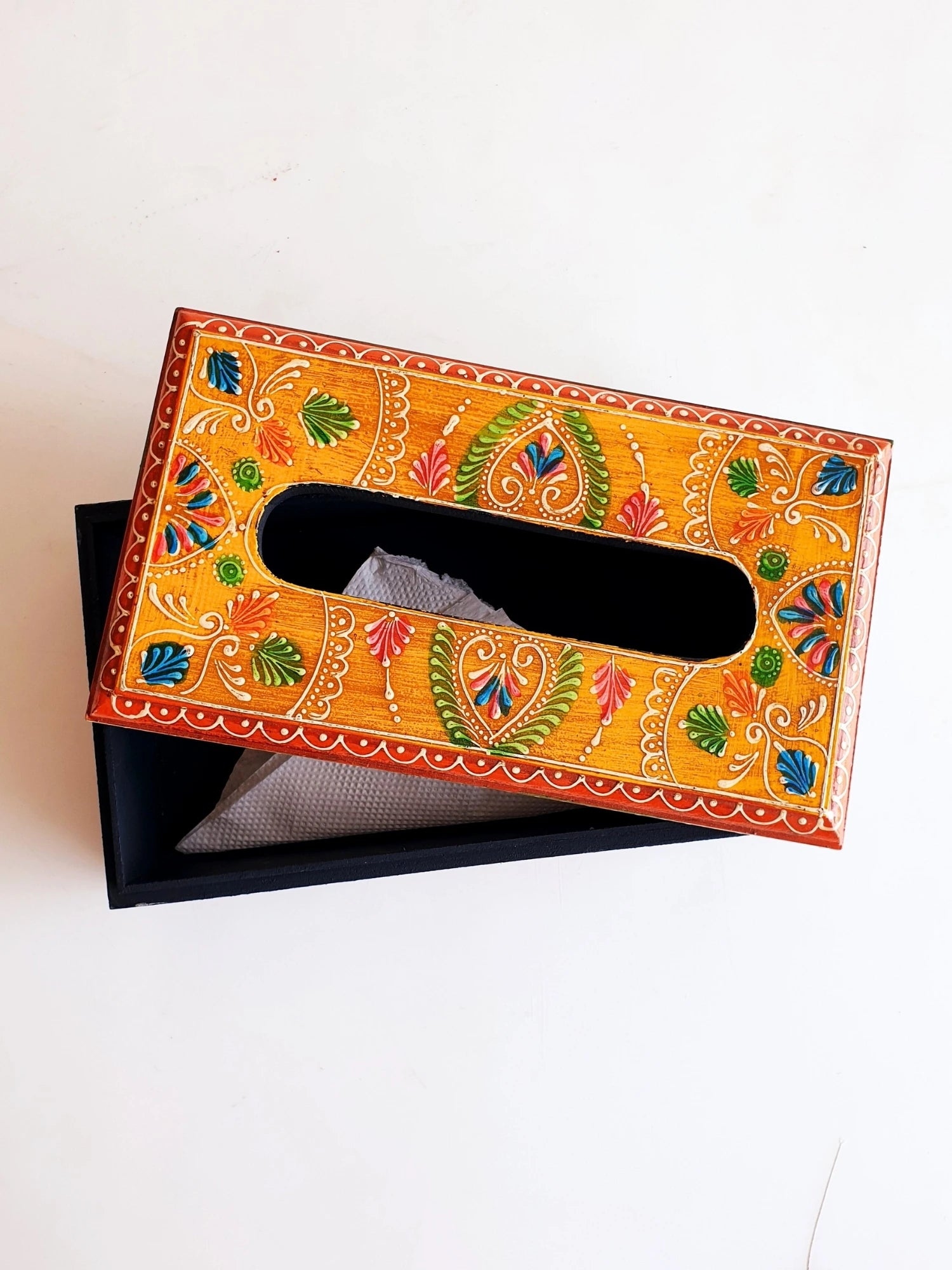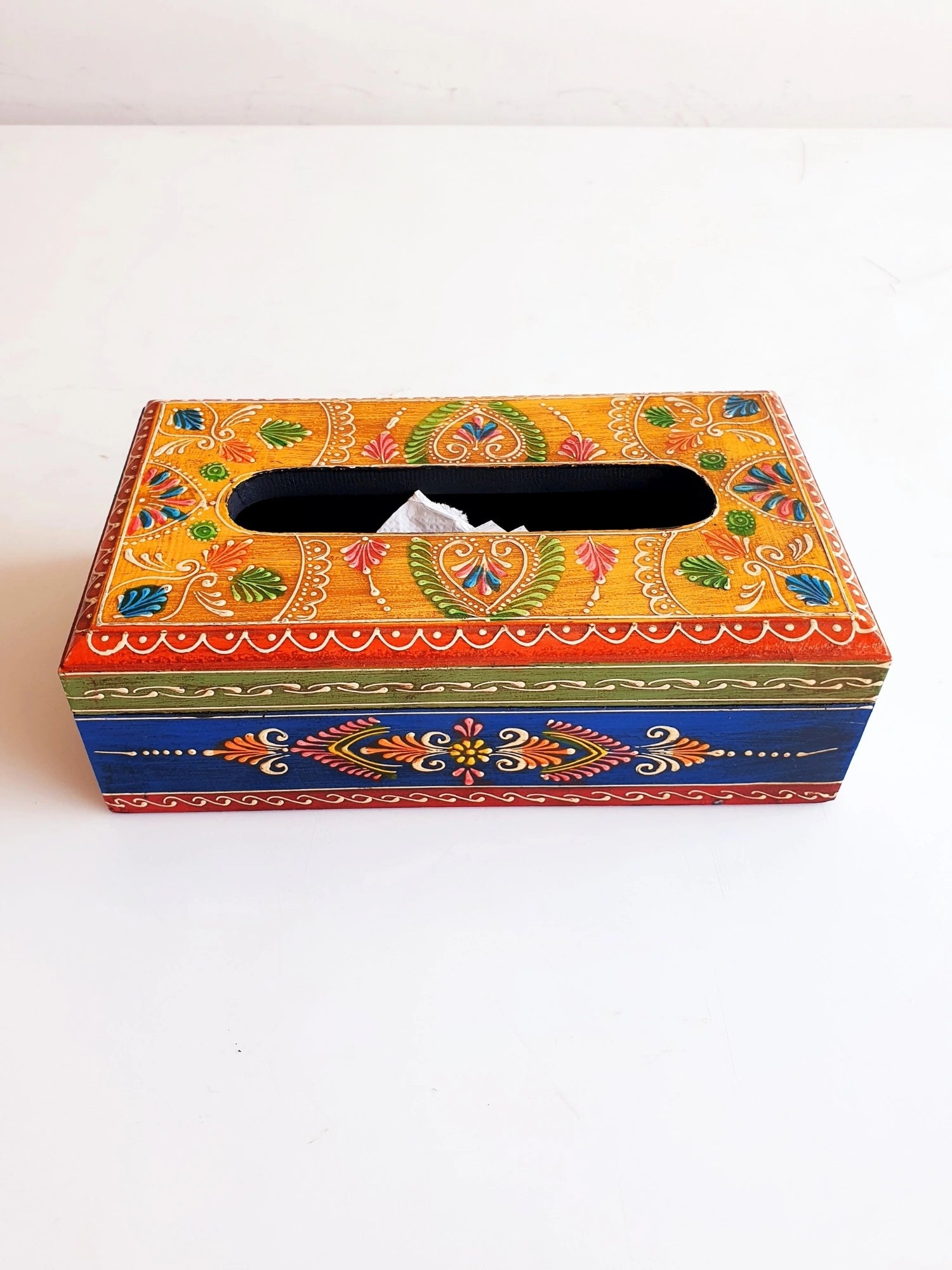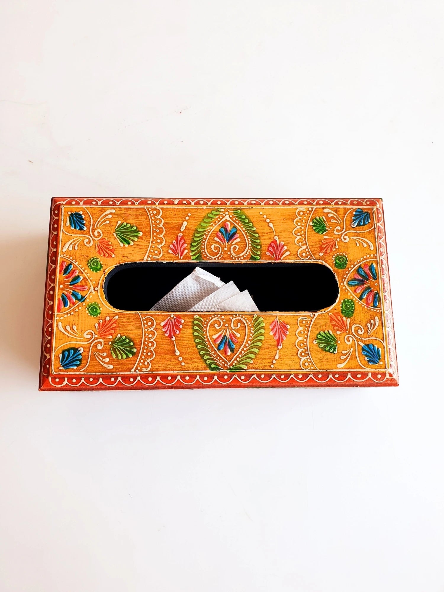 Introducing our exquisite Hand-Painted Wooden Tissue Box, a unique blend of functionality and artistry. Each piece is meticulously crafted and adorned with vibrant, hand-painted floral motifs, bringing a splash of color and a touch of traditional Indian charm to your living space.