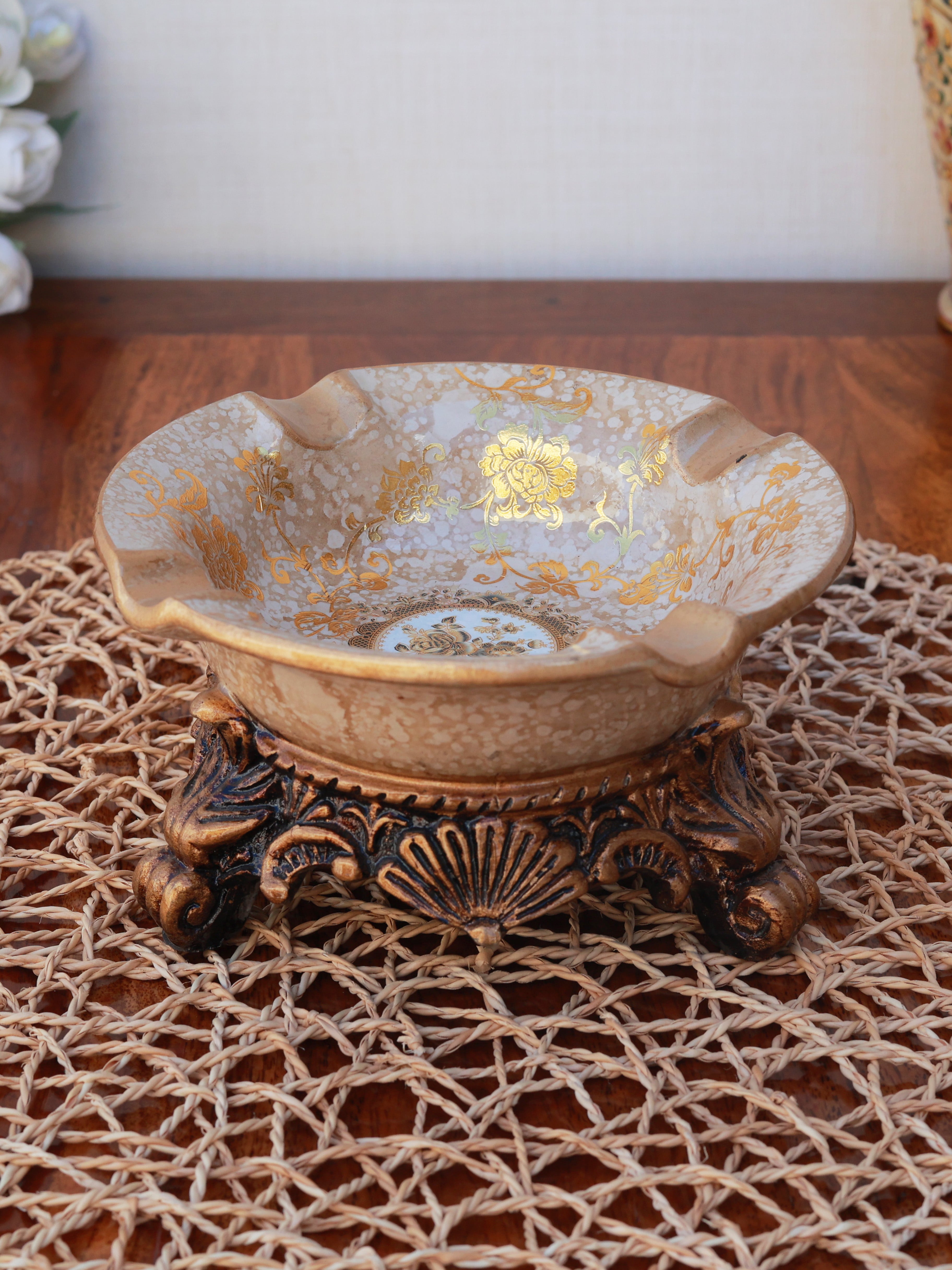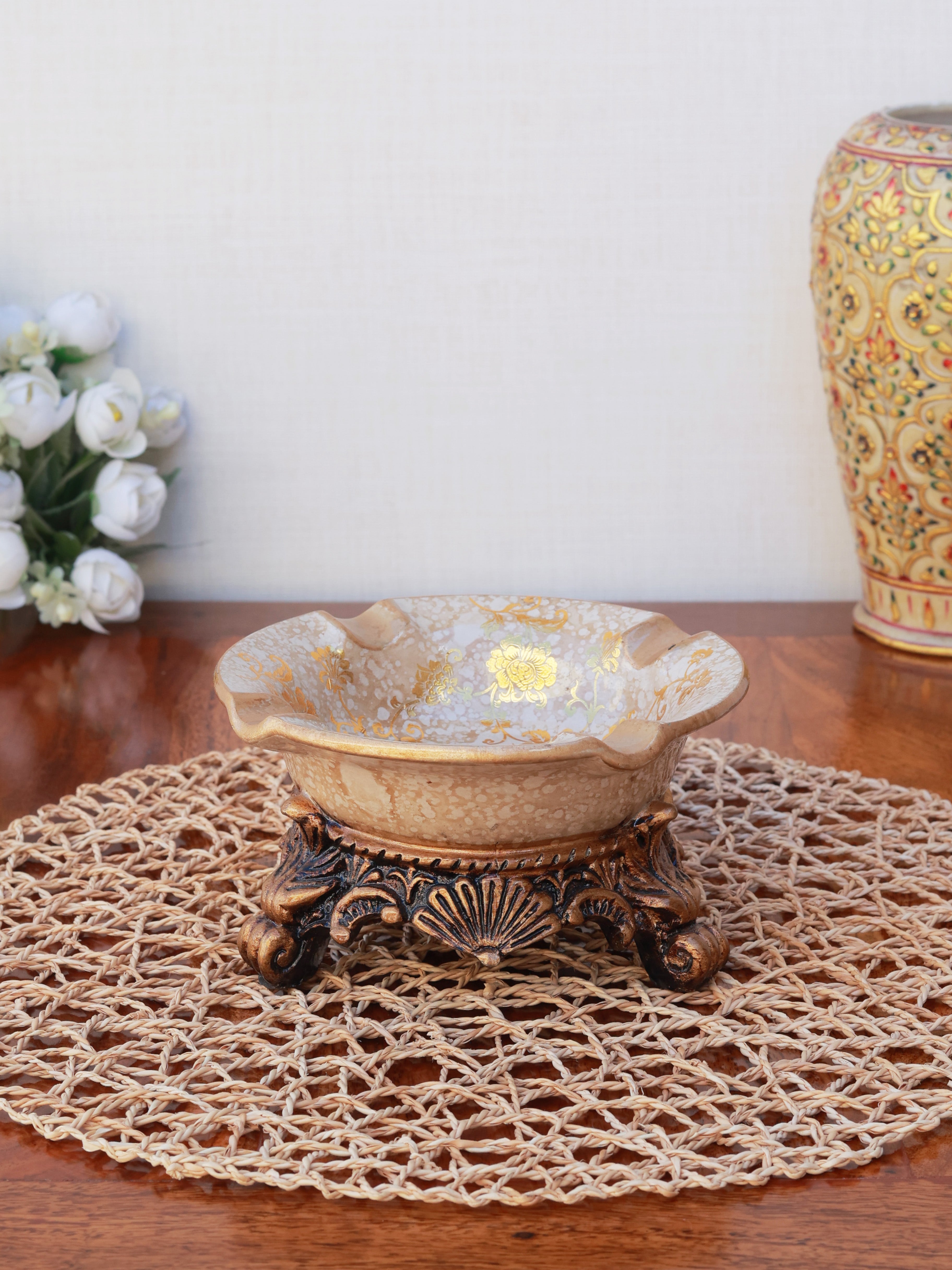 Gilded Lotus Pedestal Bowl is a striking expression of elegance and artistry. Featuring a delicately textured bowl adorned with subtle gold-toned motifs, it rests gracefully on an ornate pedestal base inspired by classic lotus forms. Perfect as a centerpiece or accent décor, this bowl brings a sense of refined luxury and timeless charm to living spaces, dining settings, or console displays.
