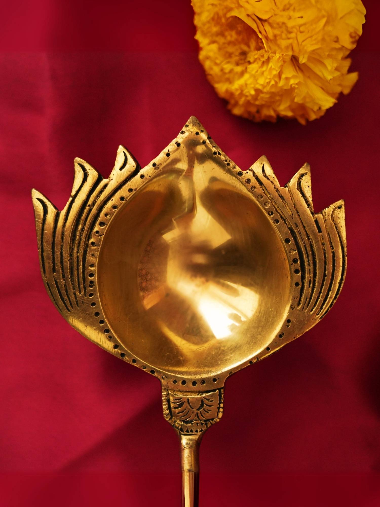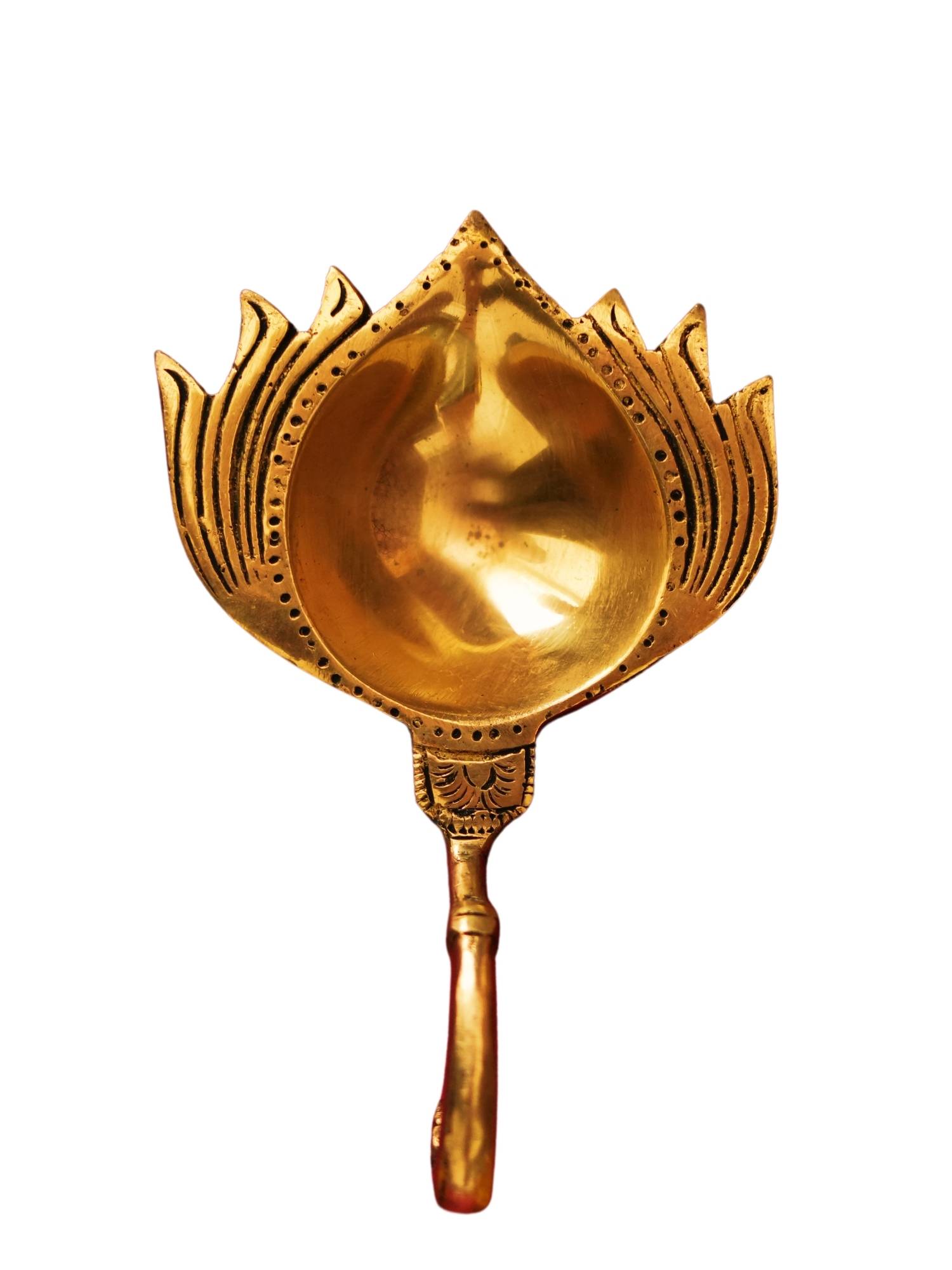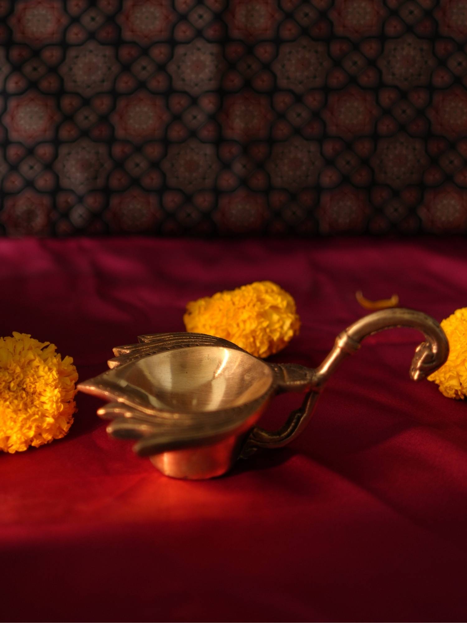Handcrafted Brass Rectangular Lotus Design Tea Light Holder