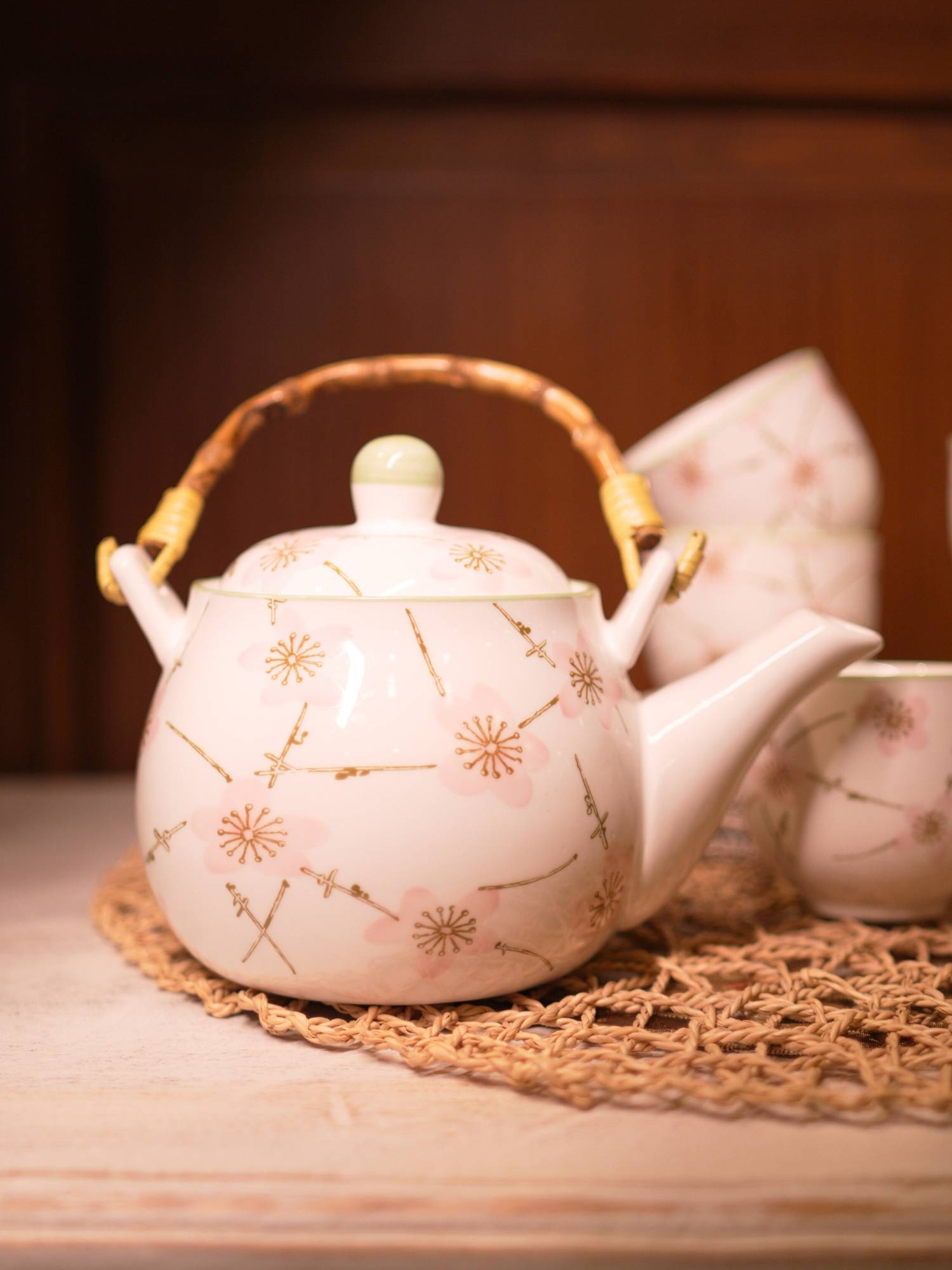 Experience the beauty and functionality of our Blush Bloom Tea Set. This exquisite set is a masterpiece of craftsmanship, featuring intricate floral designs hand-painted with precision. The high-temperature ceramic ensures durability and a smooth finish, making it perfect for daily use or special occasions