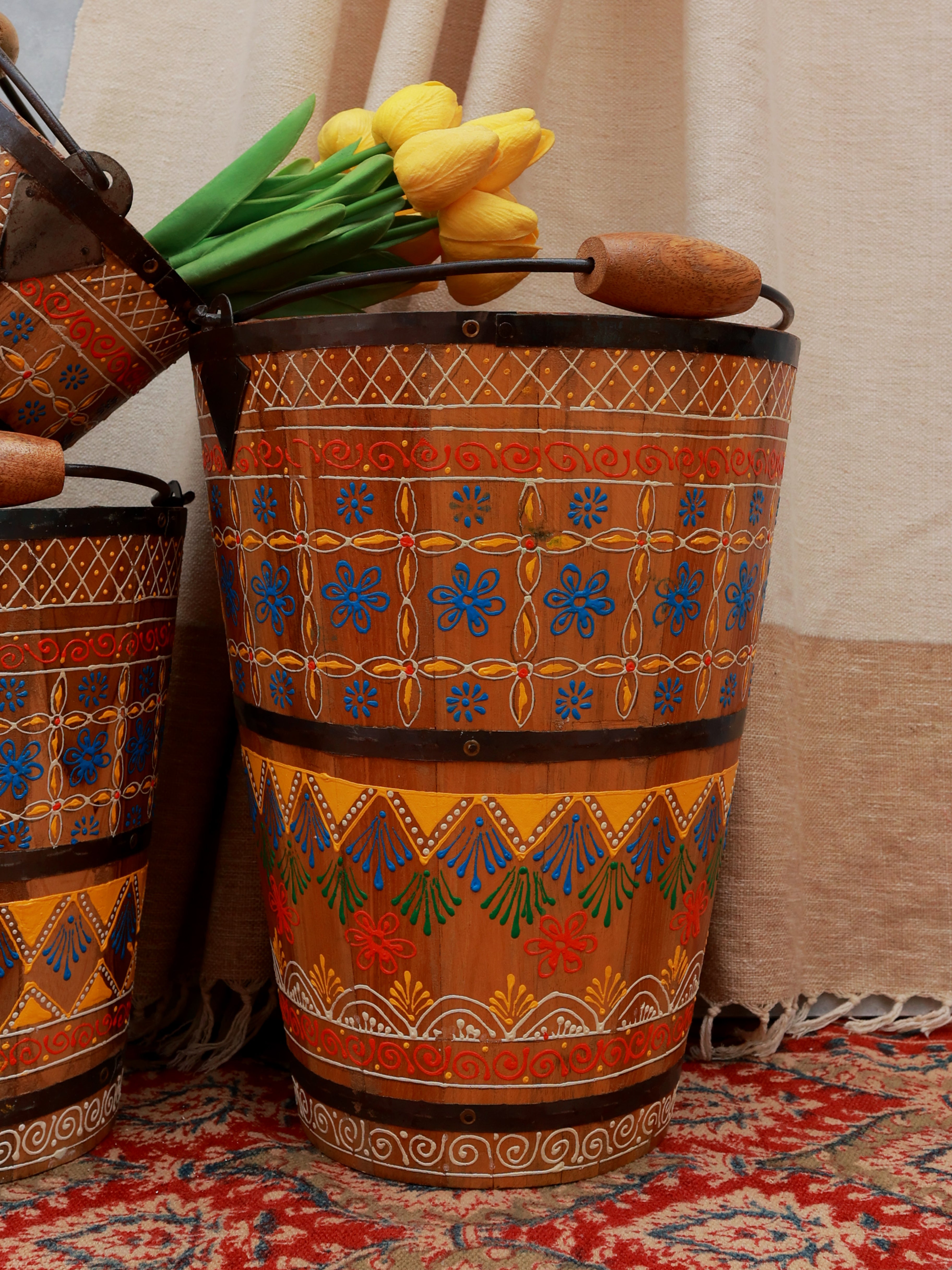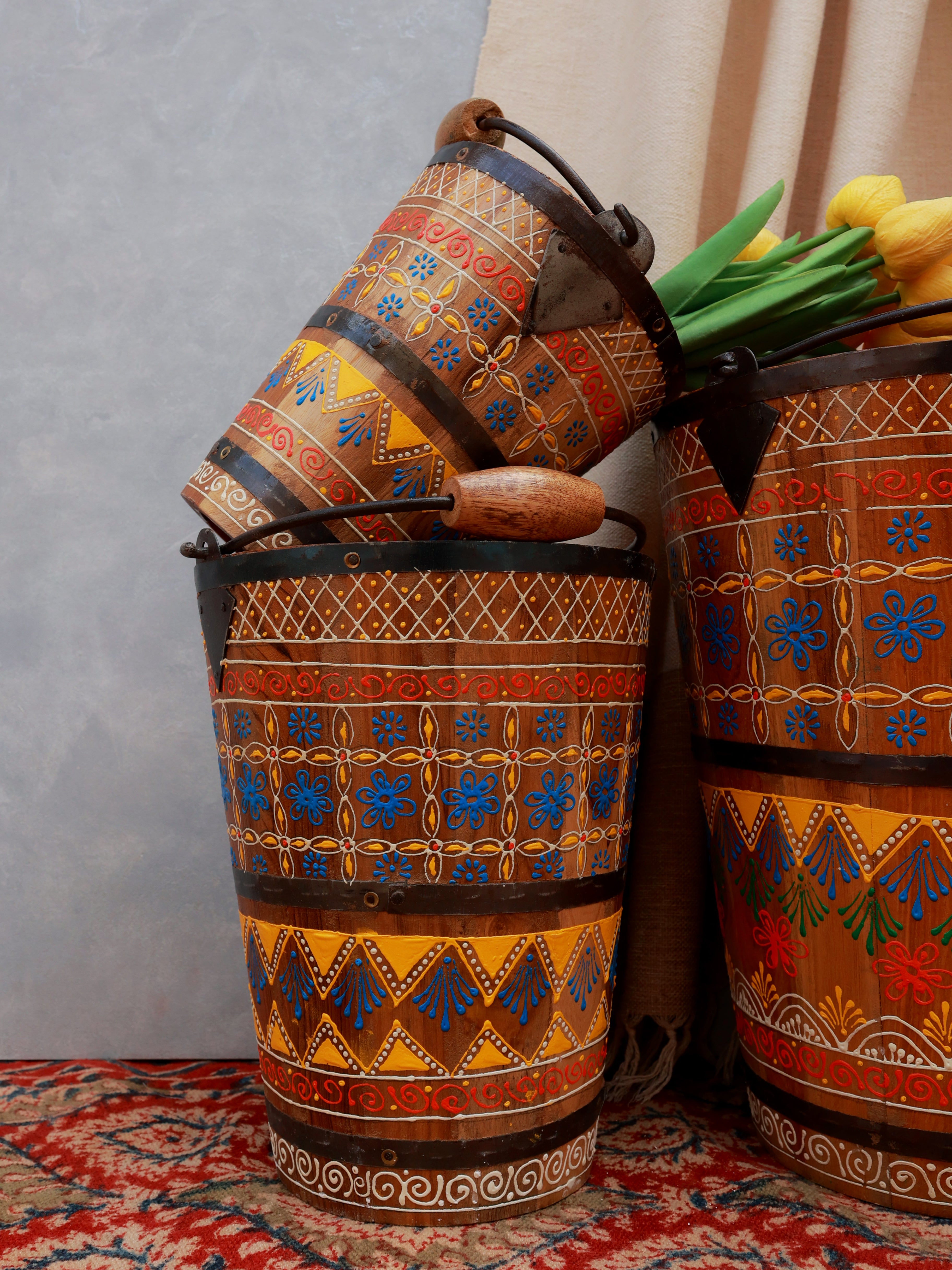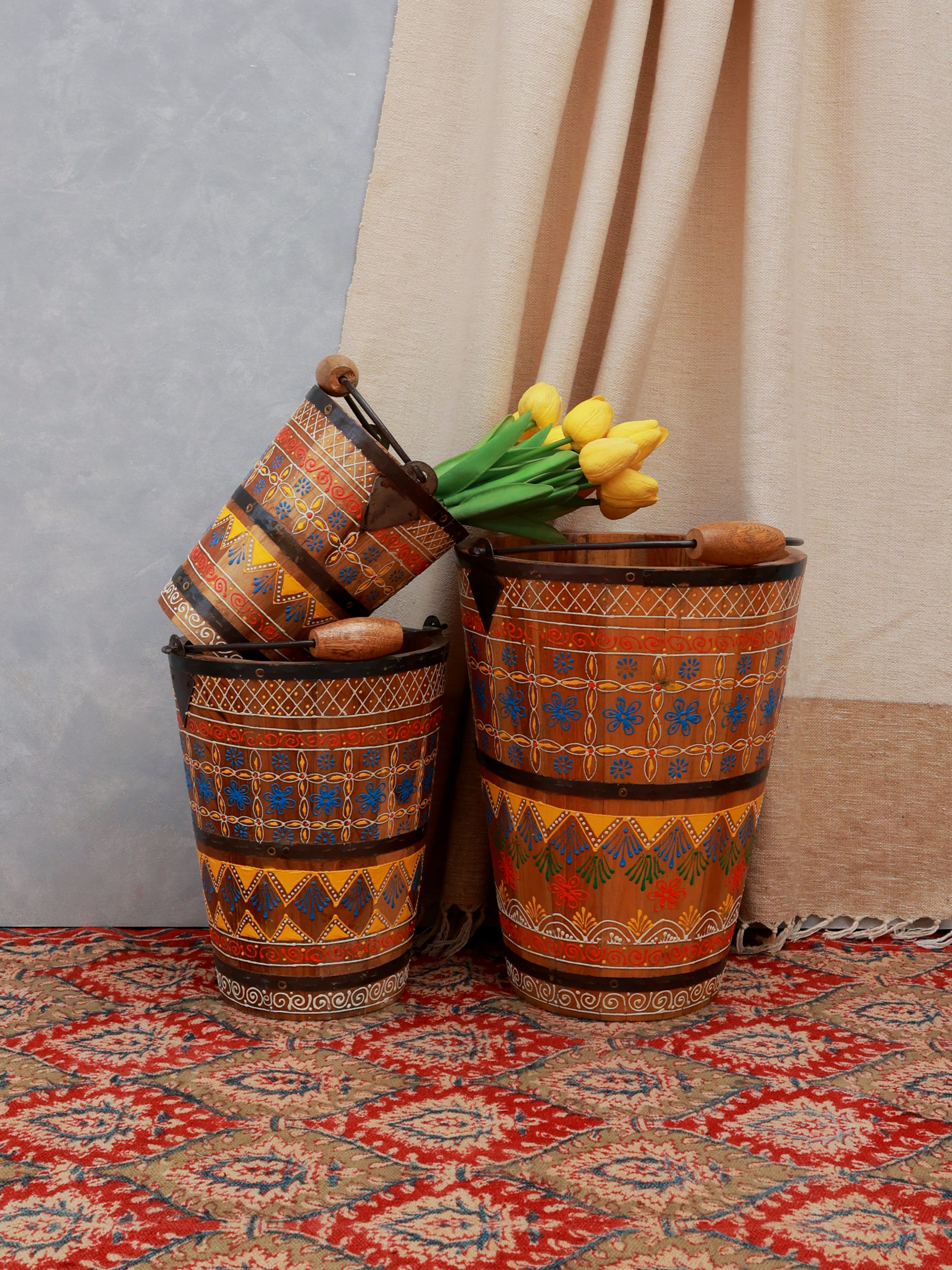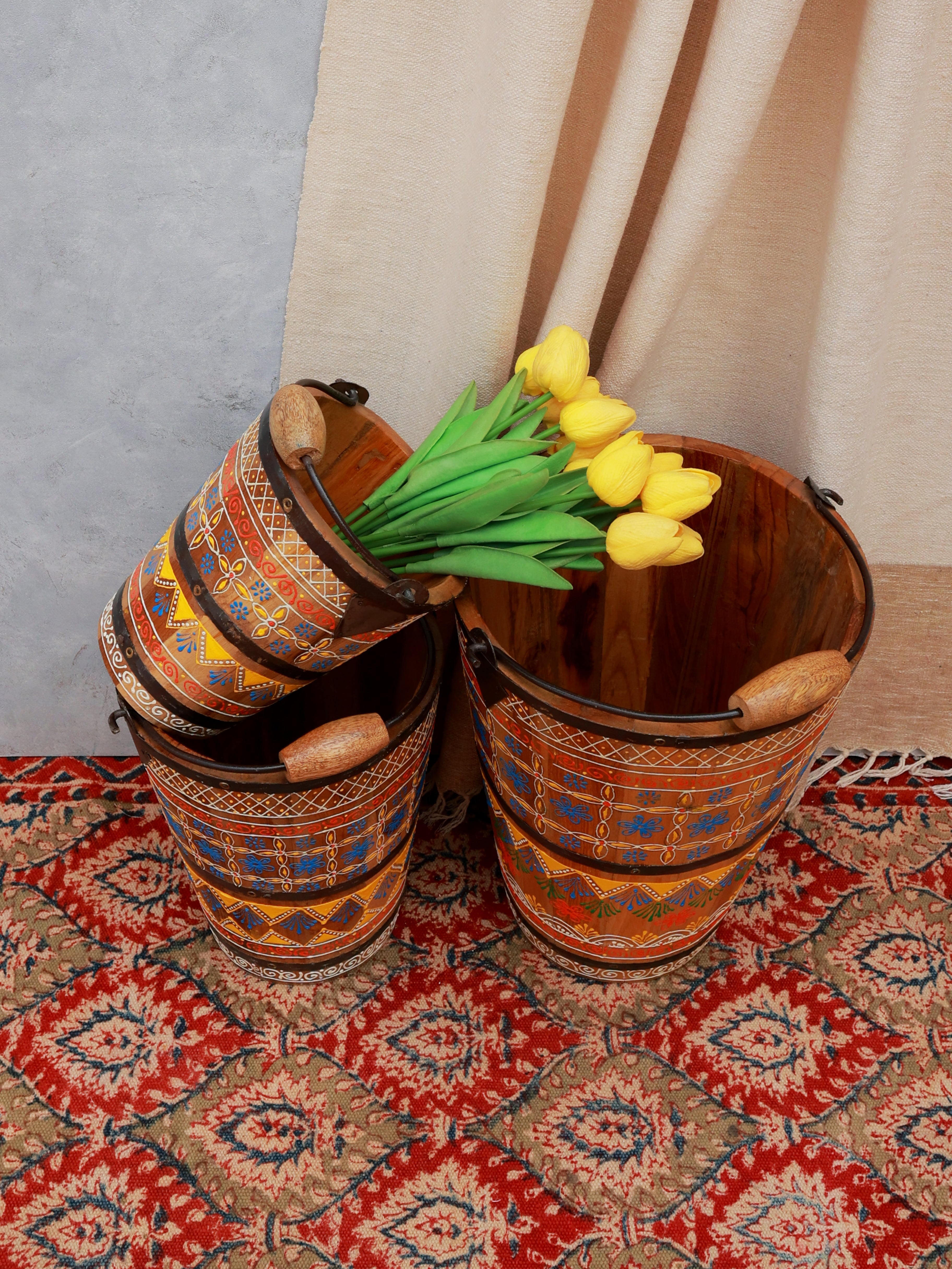 Gulbahar Handpainted Wooden Buckets - Set of 3
