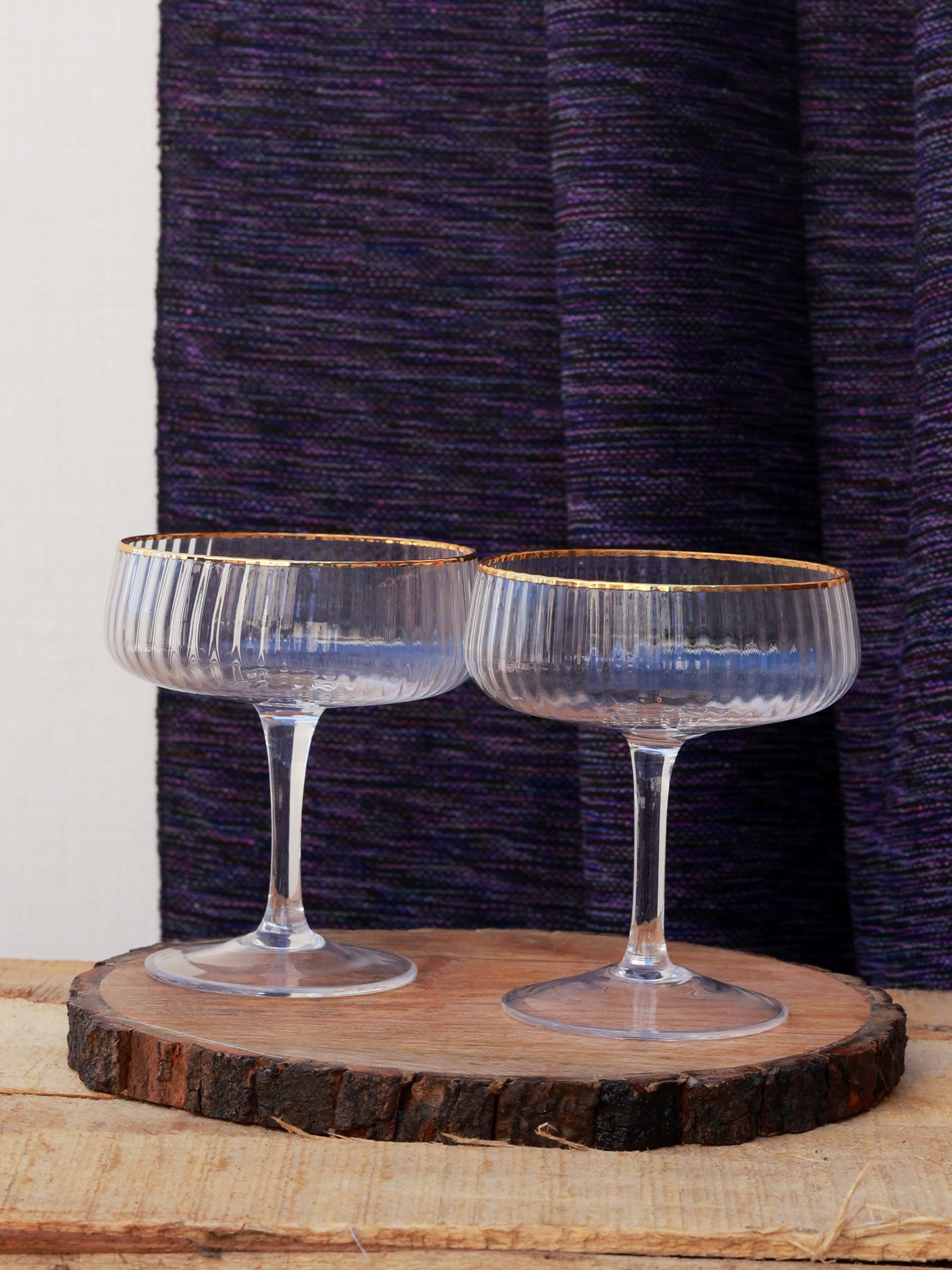 The Ribbed Golden Rim Goblets Set of 4 brings understated luxury to your table. Designed with a finely ribbed body and accented by an elegant golden rim, these goblets reflect light beautifully, creating a refined dining experience. Ideal for both everyday elegance and special occasions, they blend modern design with a classic touch, making them a sophisticated addition to any glassware collection.