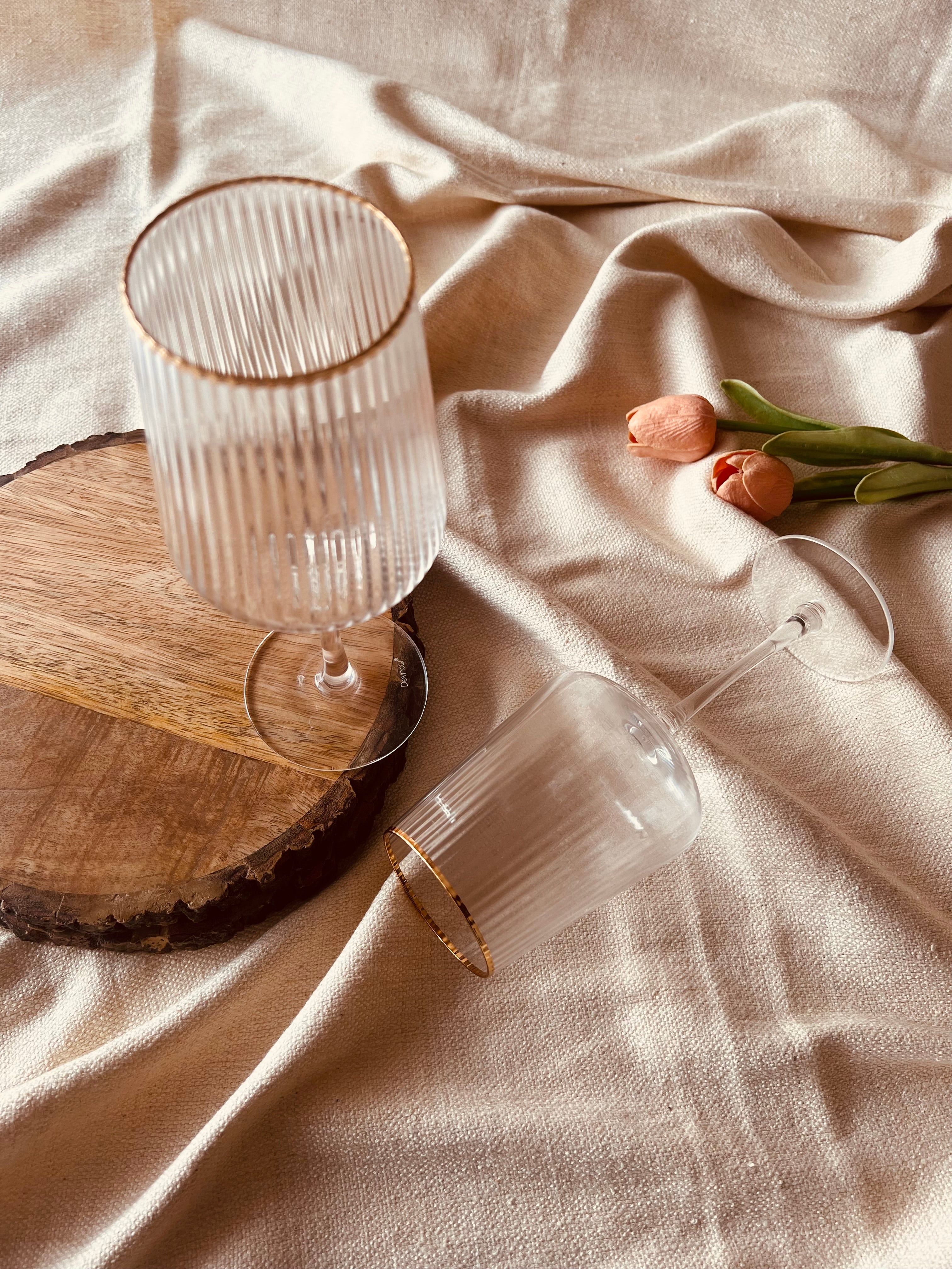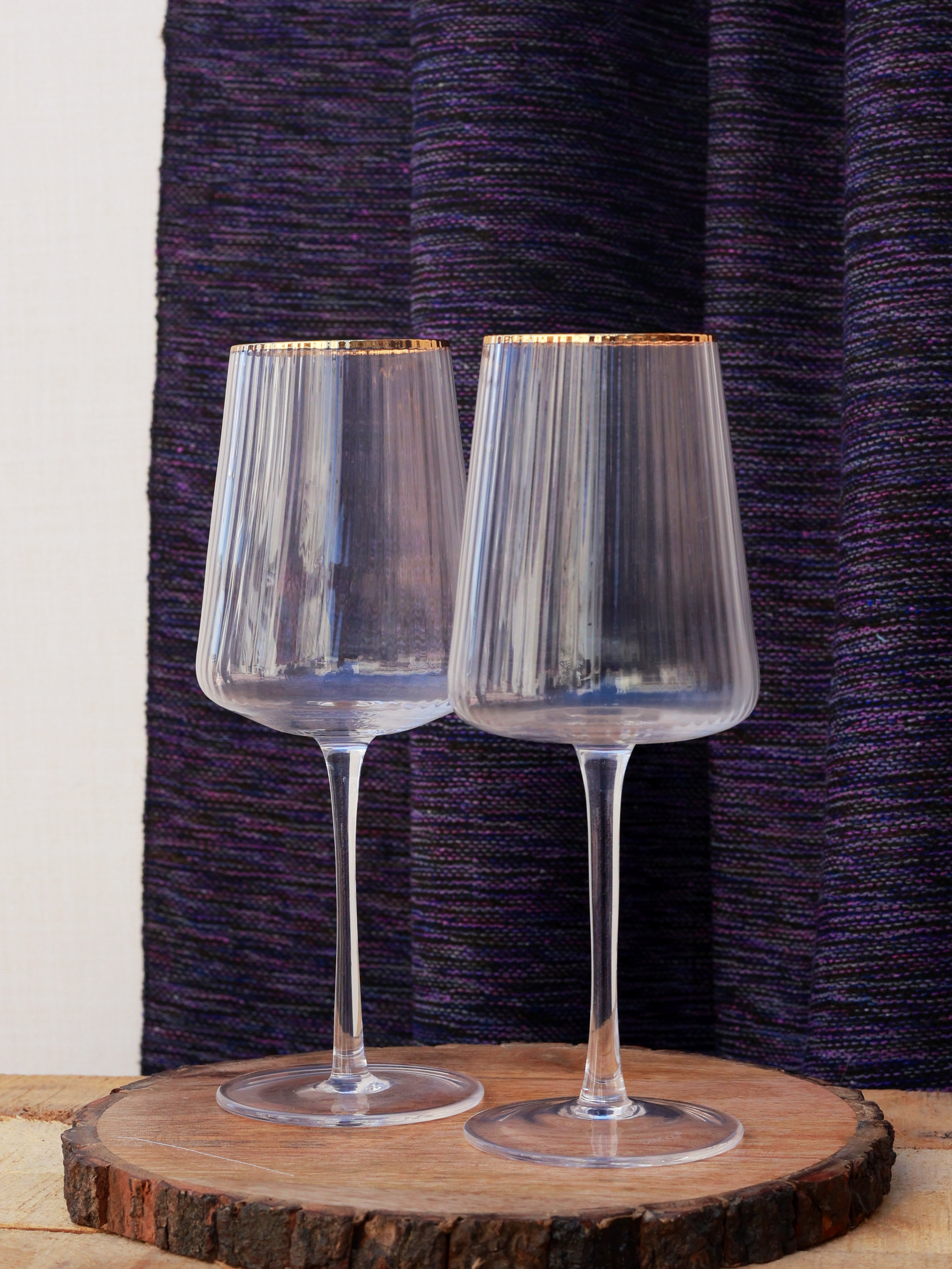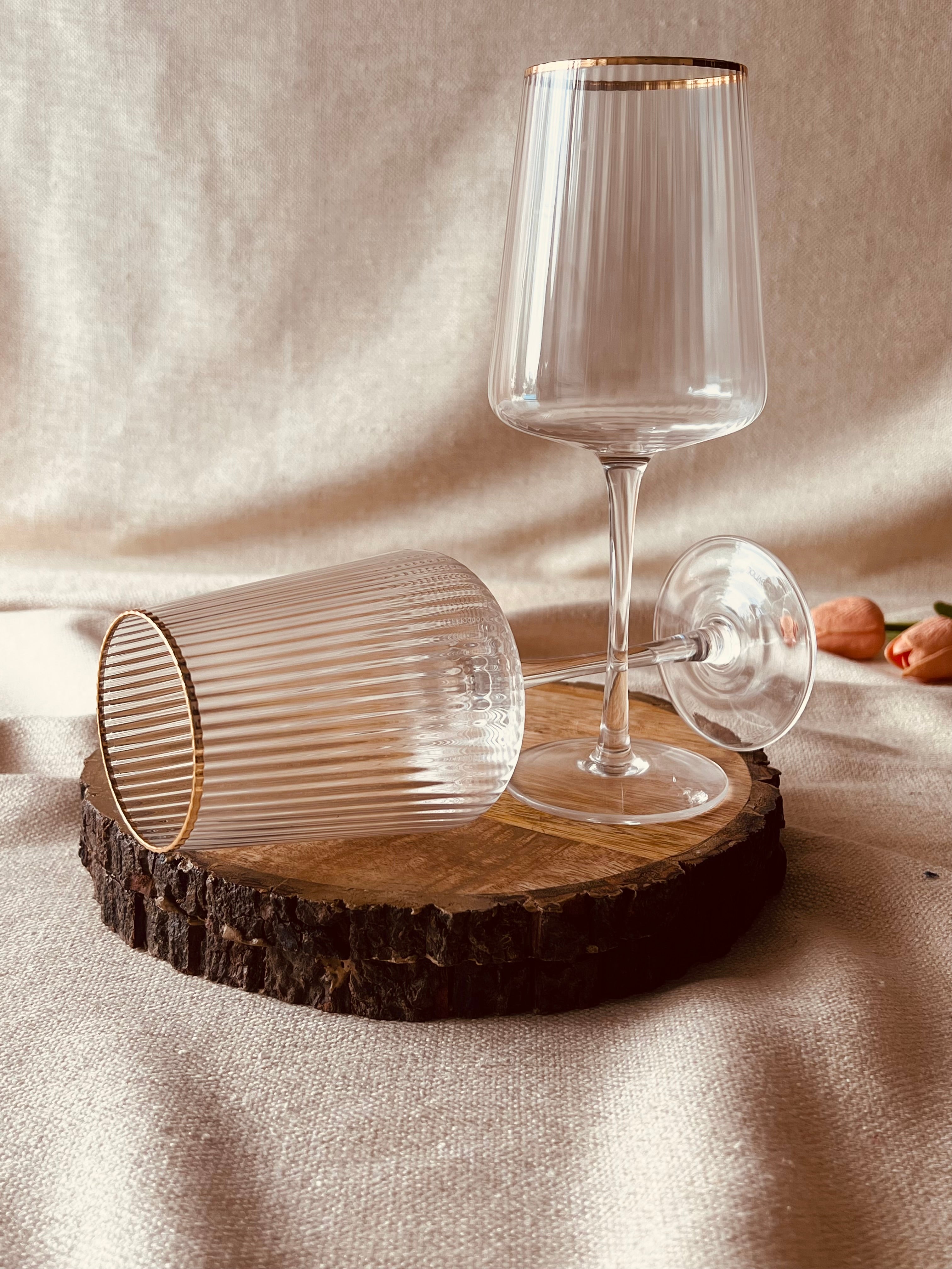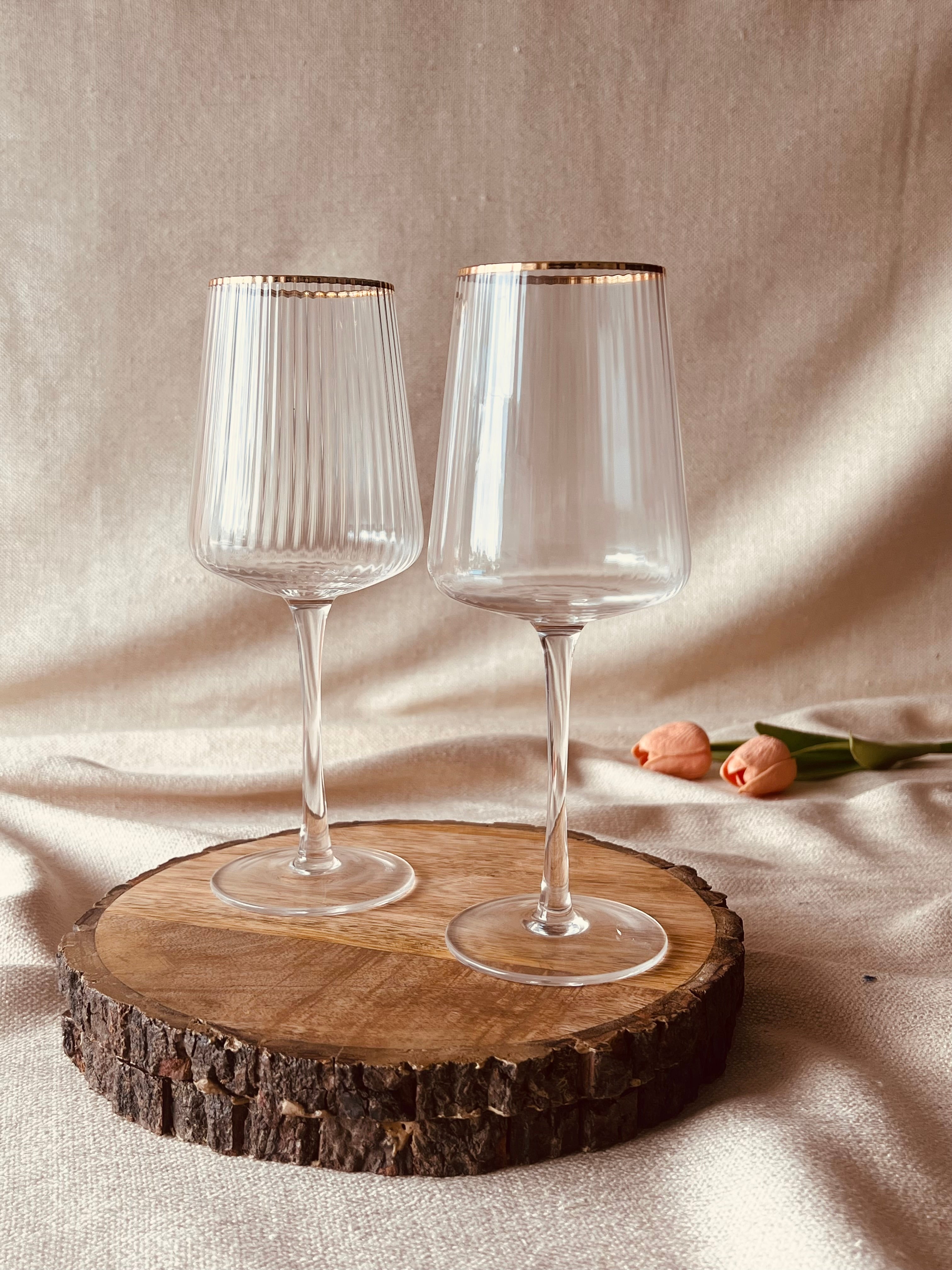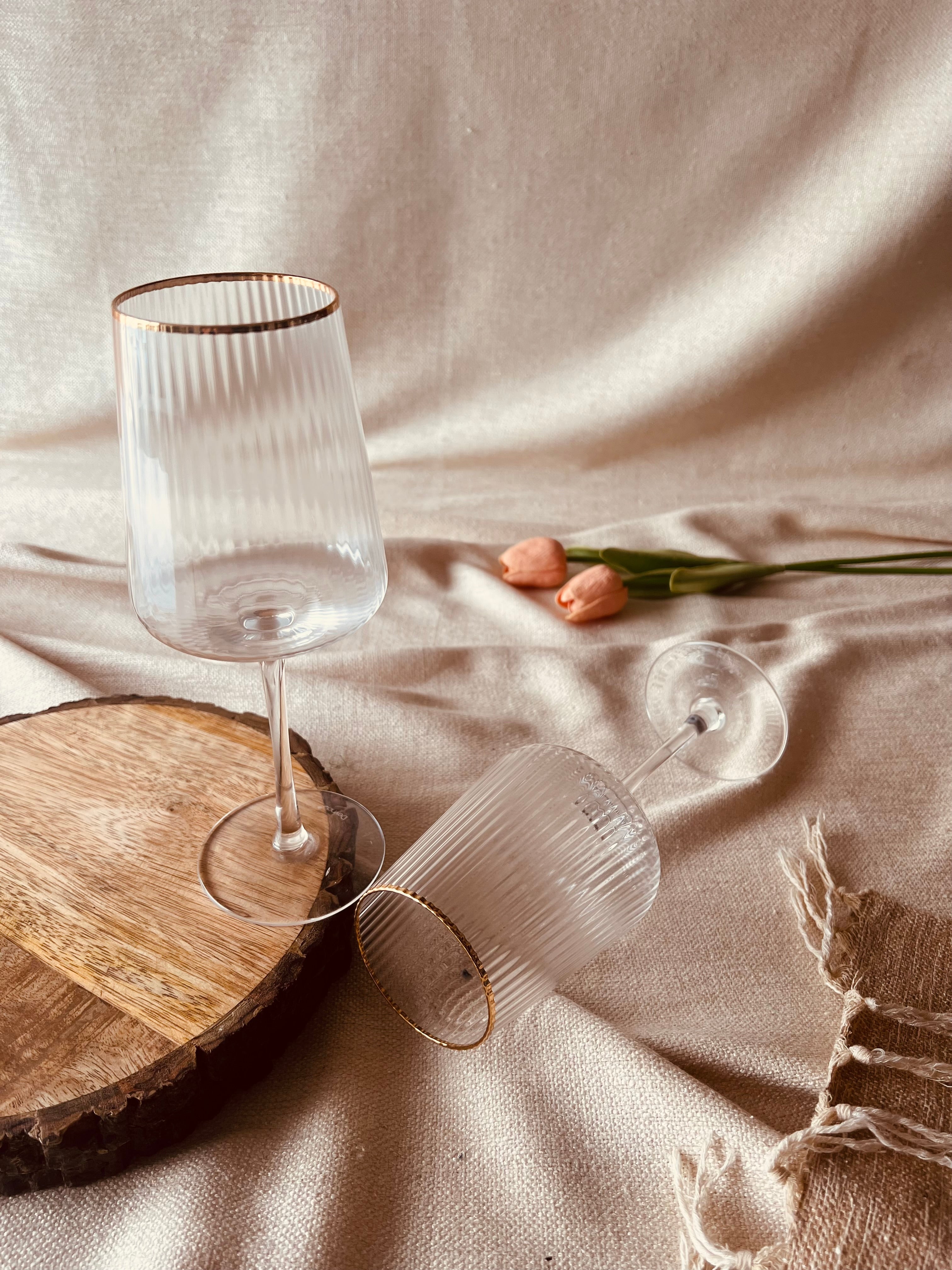 Ribbed Wine Glasses with Golden Rim - Set of 4