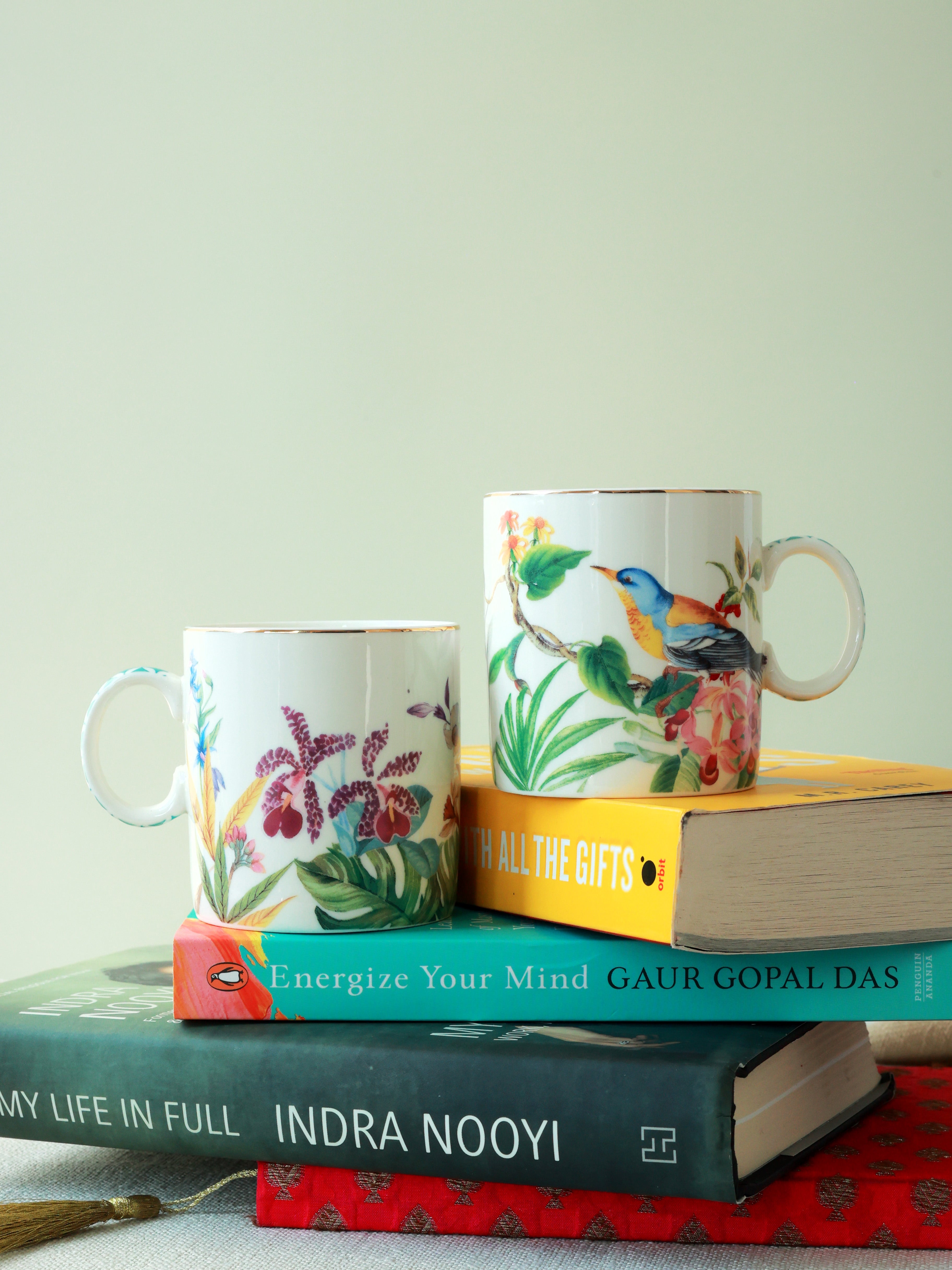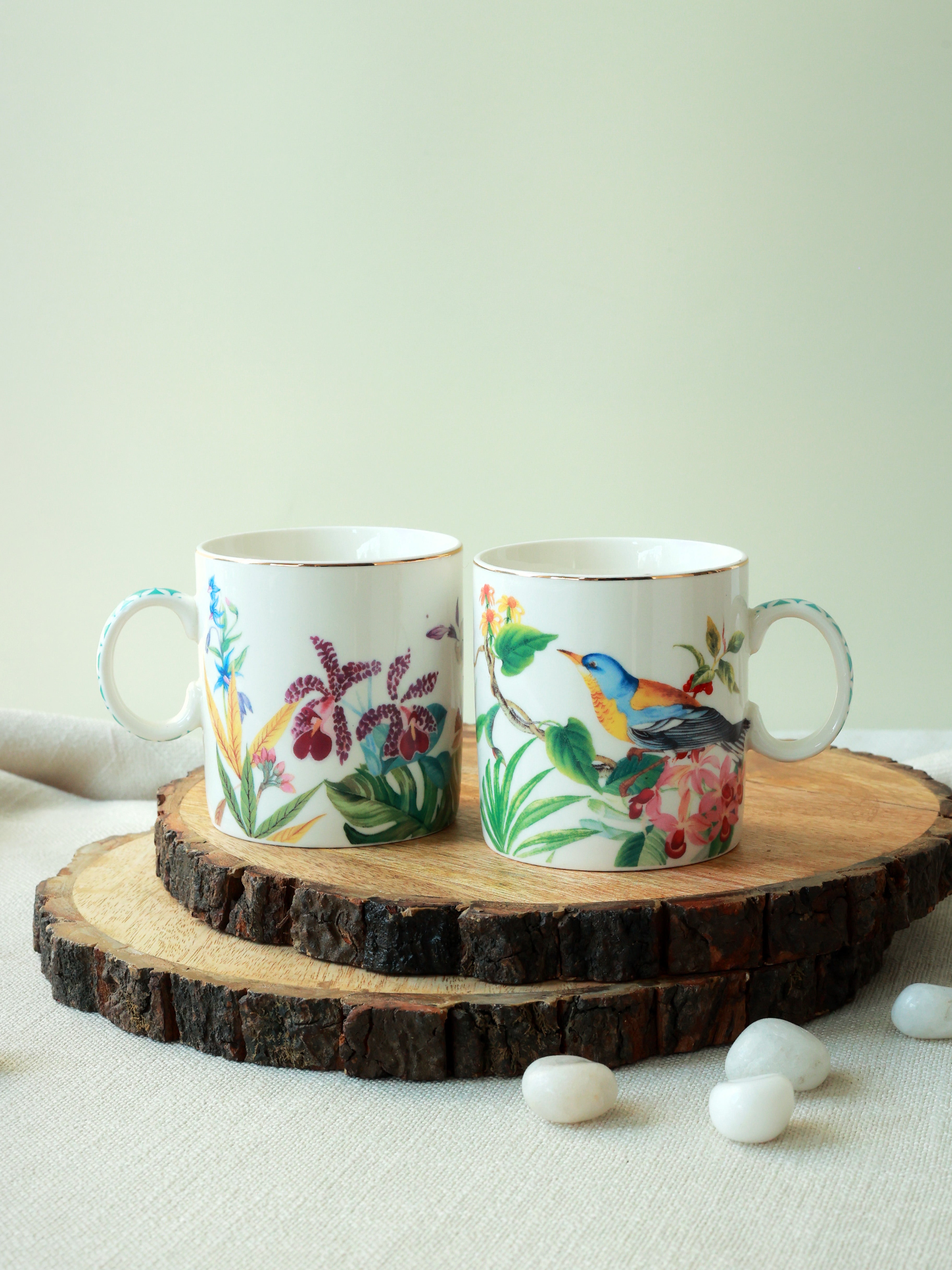 Koel Tea Cups bring nature’s elegance to your everyday moments. Crafted from fine porcelain with a delicate gold rim, each cup features vibrant floral and songbird artwork inspired by blooming gardens. Perfect for tea, coffee, or gifting, this charming duo adds warmth and sophistication to any table setting while celebrating the beauty of the outdoors.