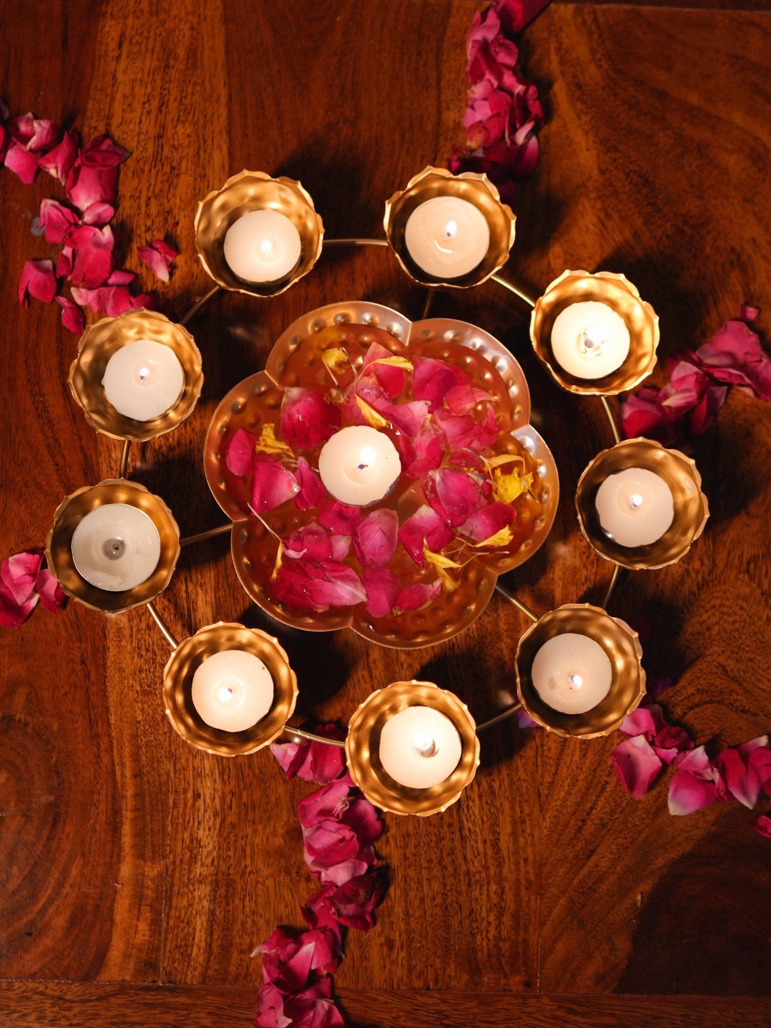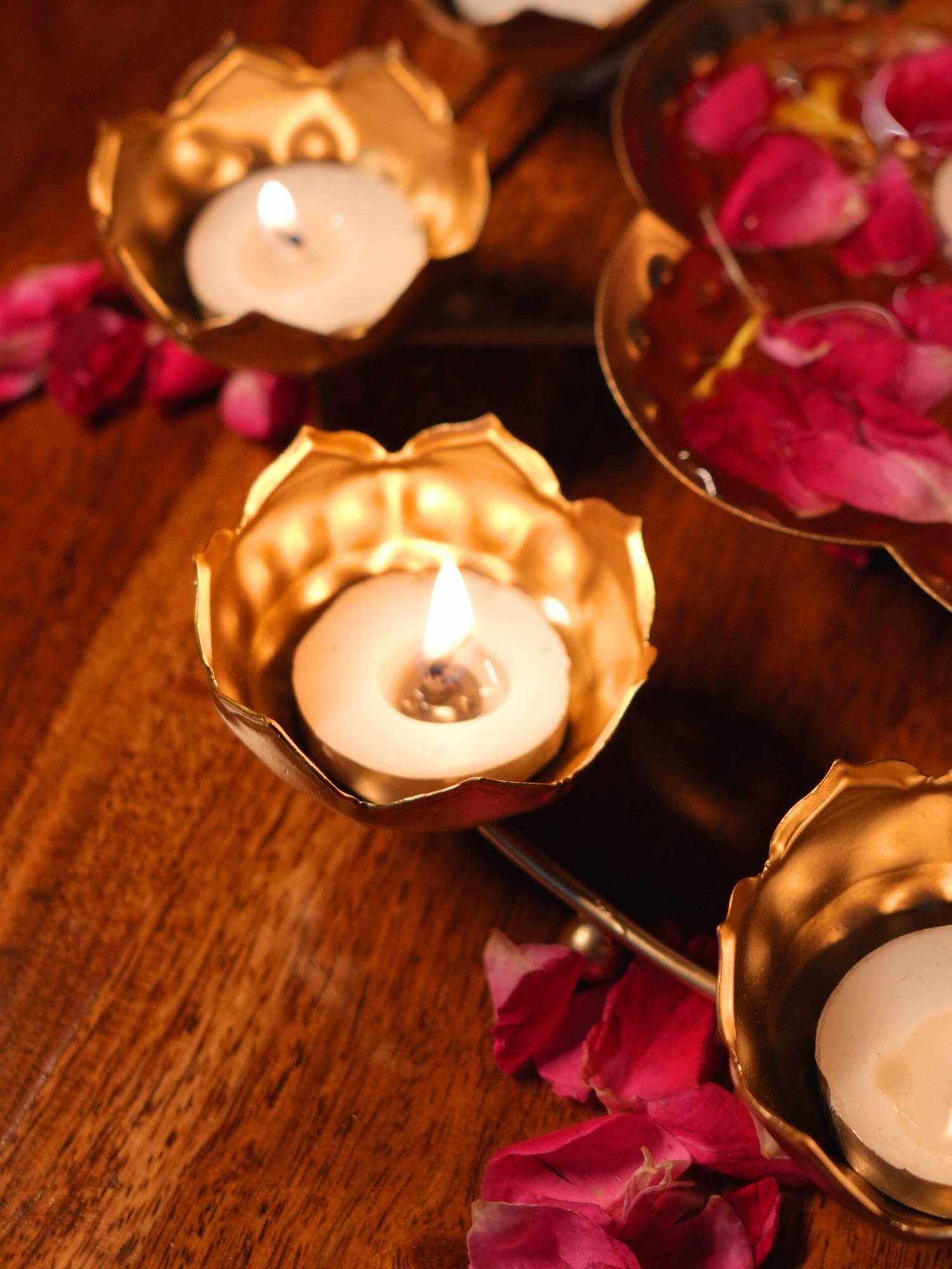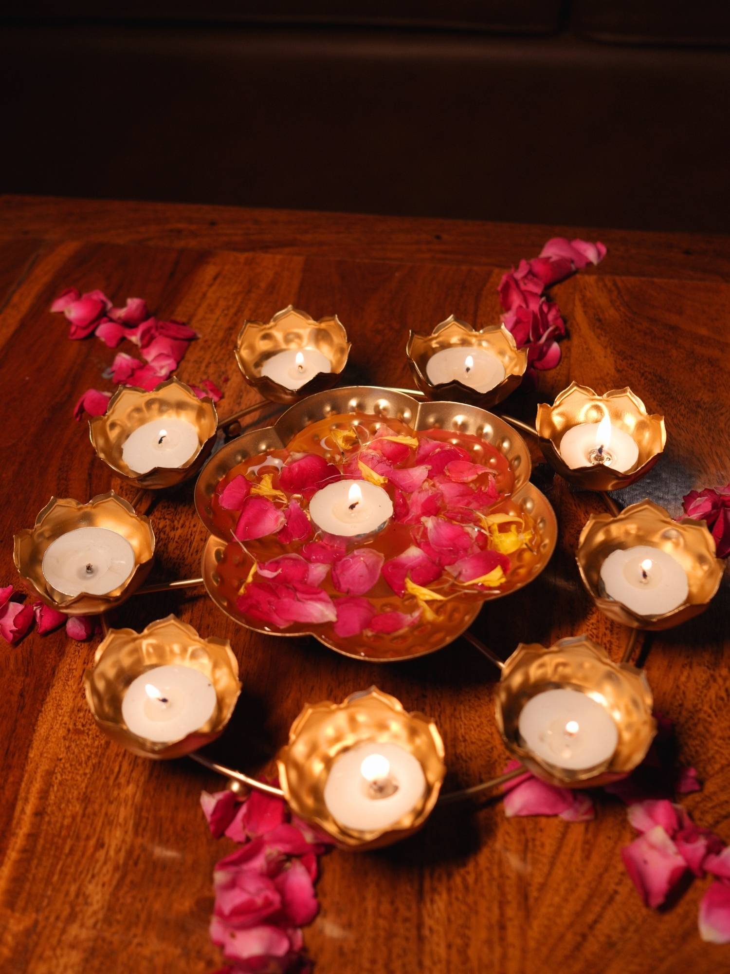 Lotus Diya Shape urli Bowl for Home and Pooja Decorations|Urli tealight Candle Holder
