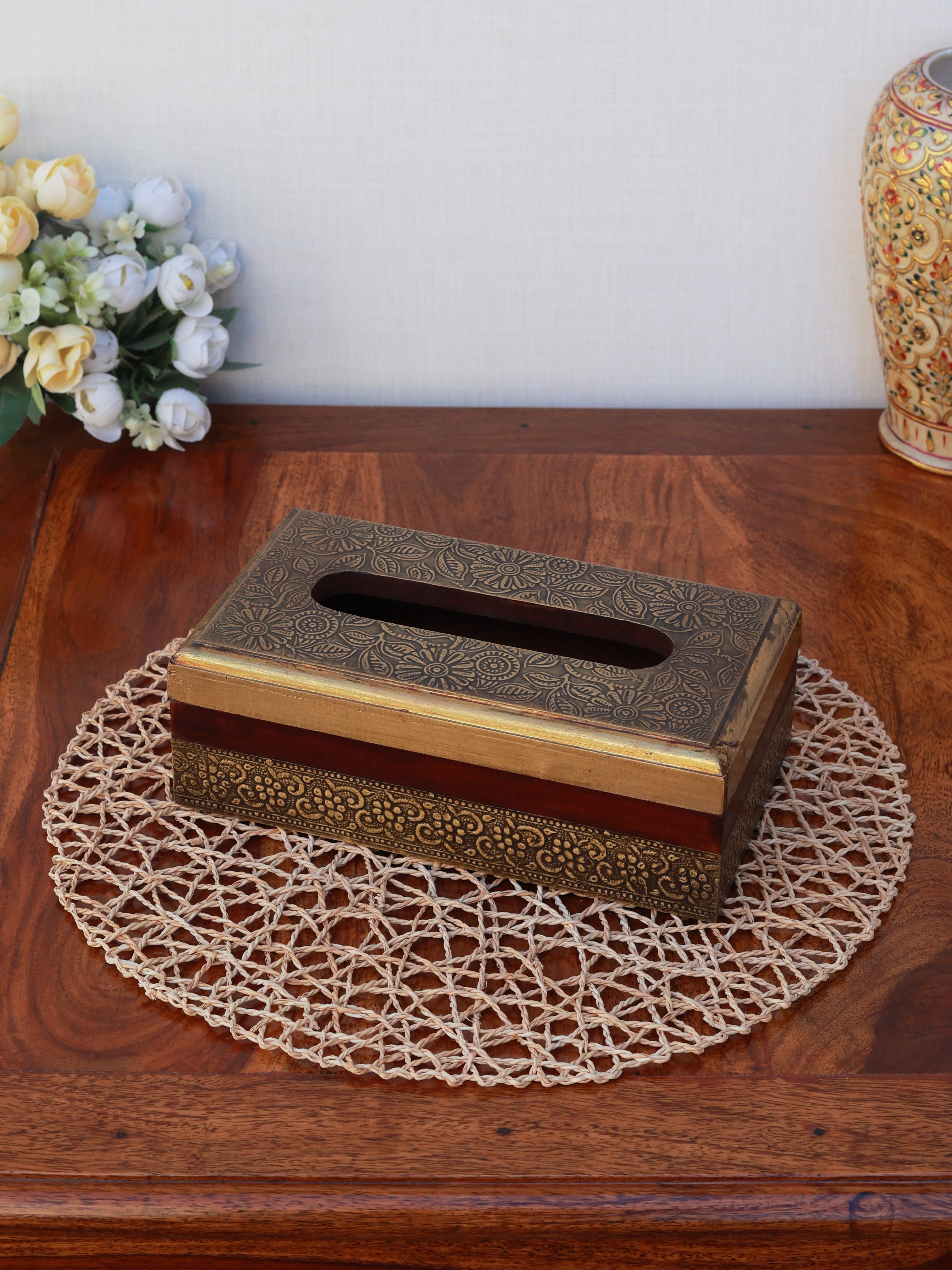 Regal Bloom Brass-Fitted Tissue Box