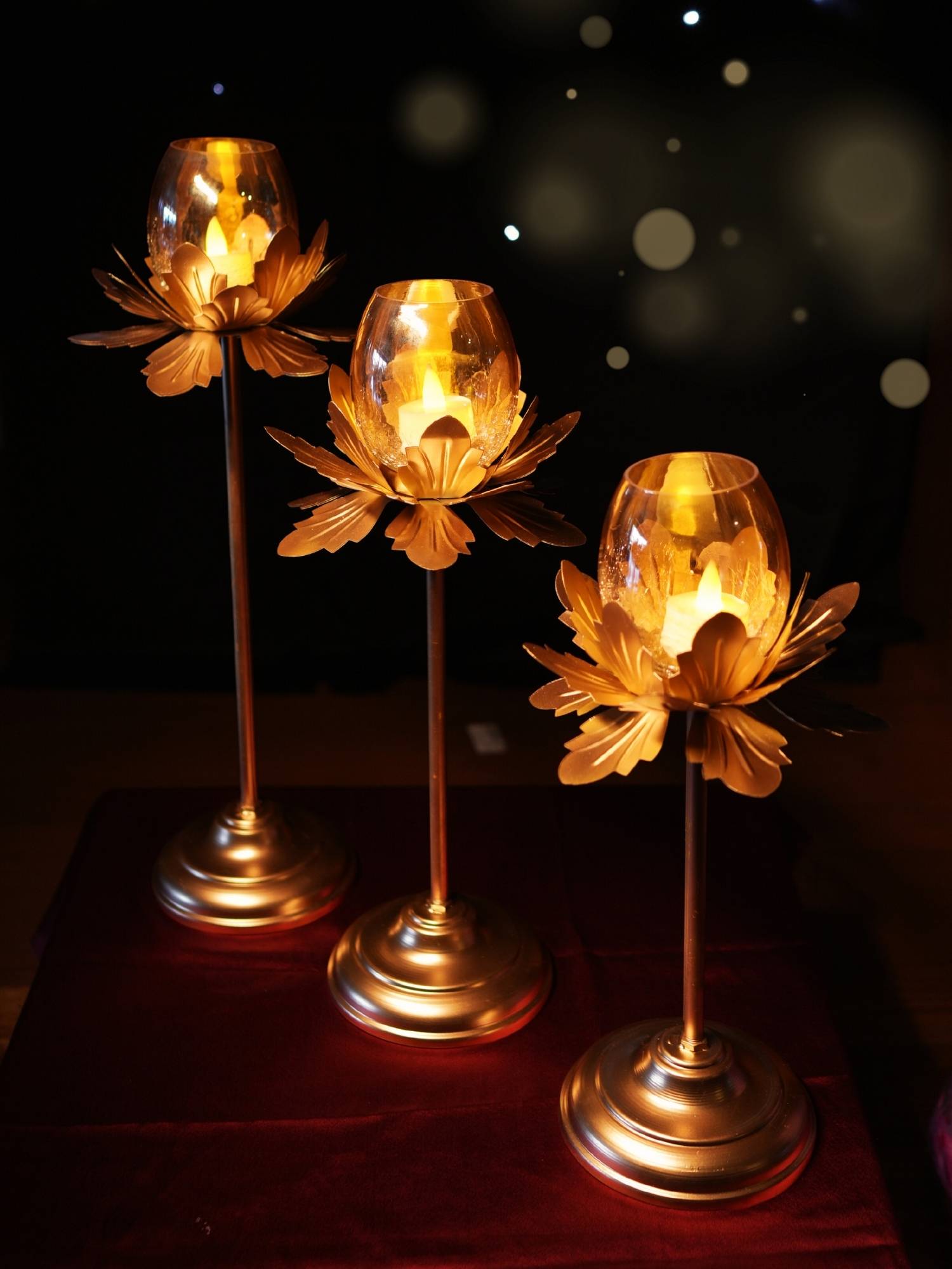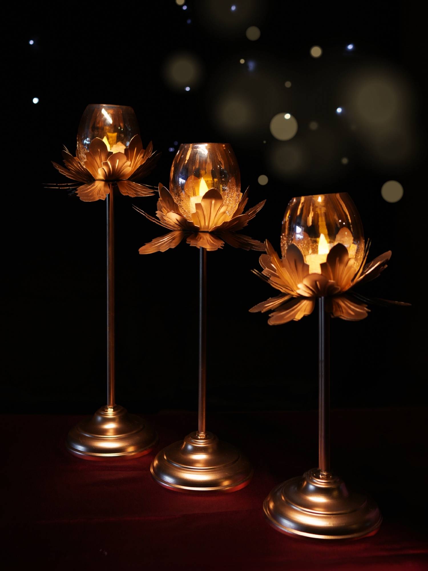 Golden Lotus Polish Brass Candle Stand (Set of 3)