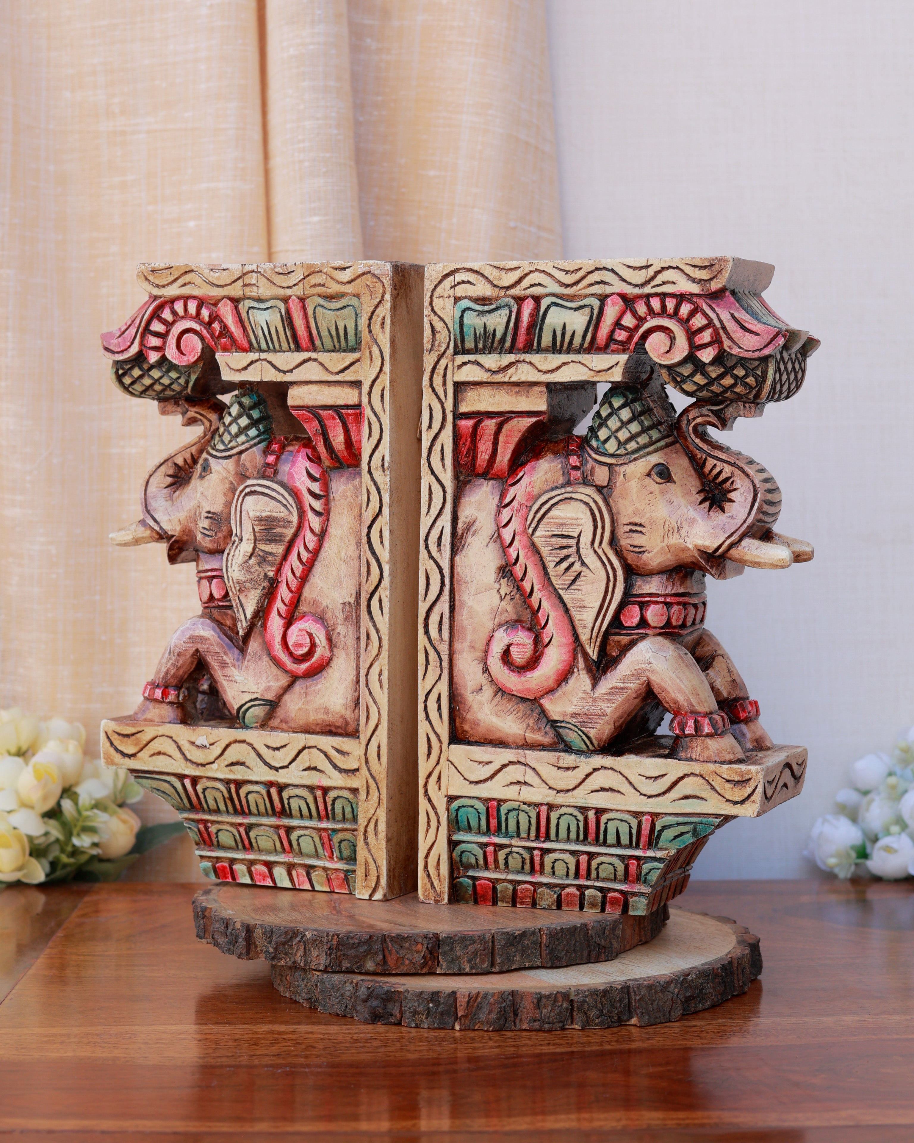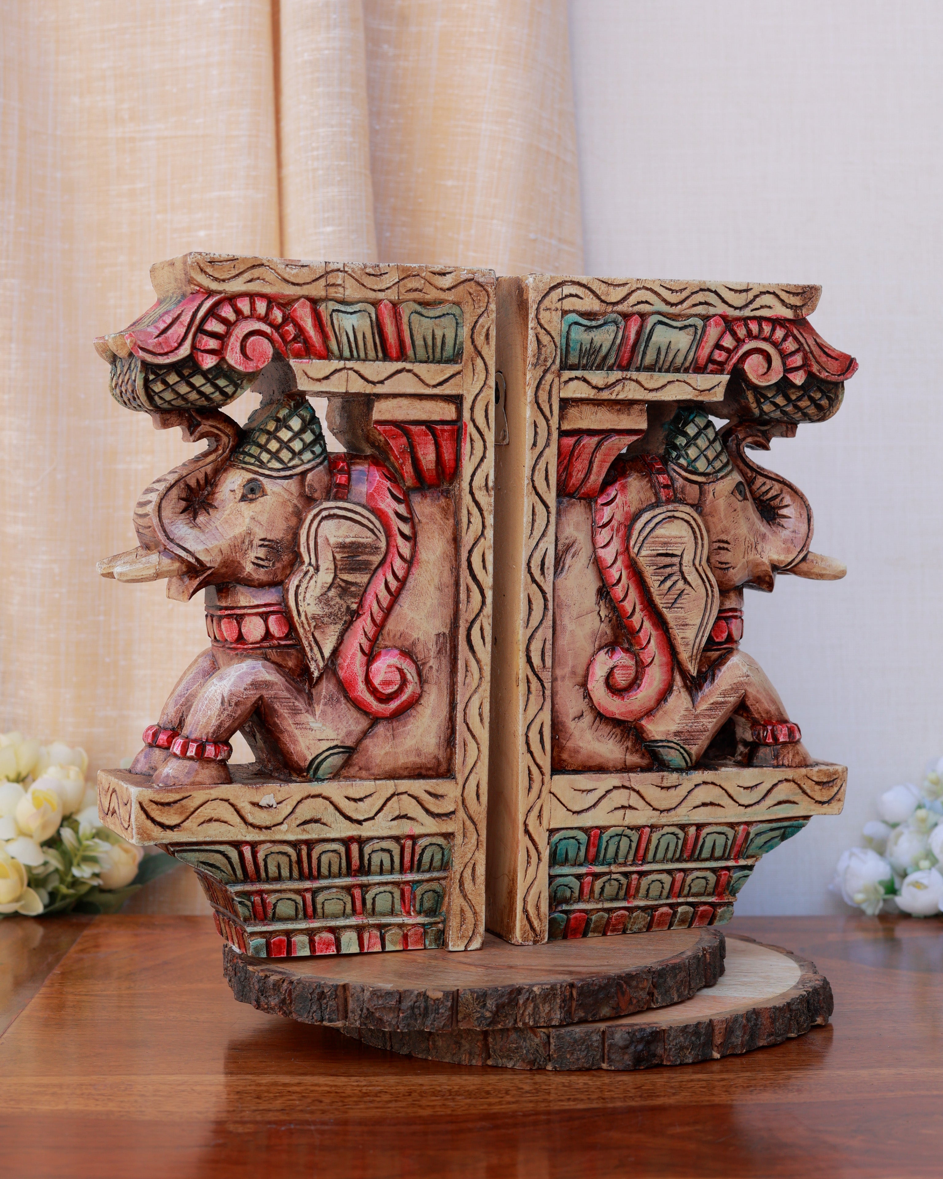Bring home the charm of royal Indian architecture with the Majestic Haveli Elephant Wall Bracket. Hand-carved by skilled artisans, this exquisite piece showcases a beautifully detailed elephant motif inspired by traditional haveli pillars. Its antique finish, intricate patterns, and vibrant yet earthy tones make it a stunning décor accent for entryways, living rooms, mandirs, or hallways. Whether used as a standalone art piece or paired in a set, it adds timeless elegance and cultural richness to any space. A perfect blend of craftsmanship and heritage, designed to elevate your interiors with a regal touch.