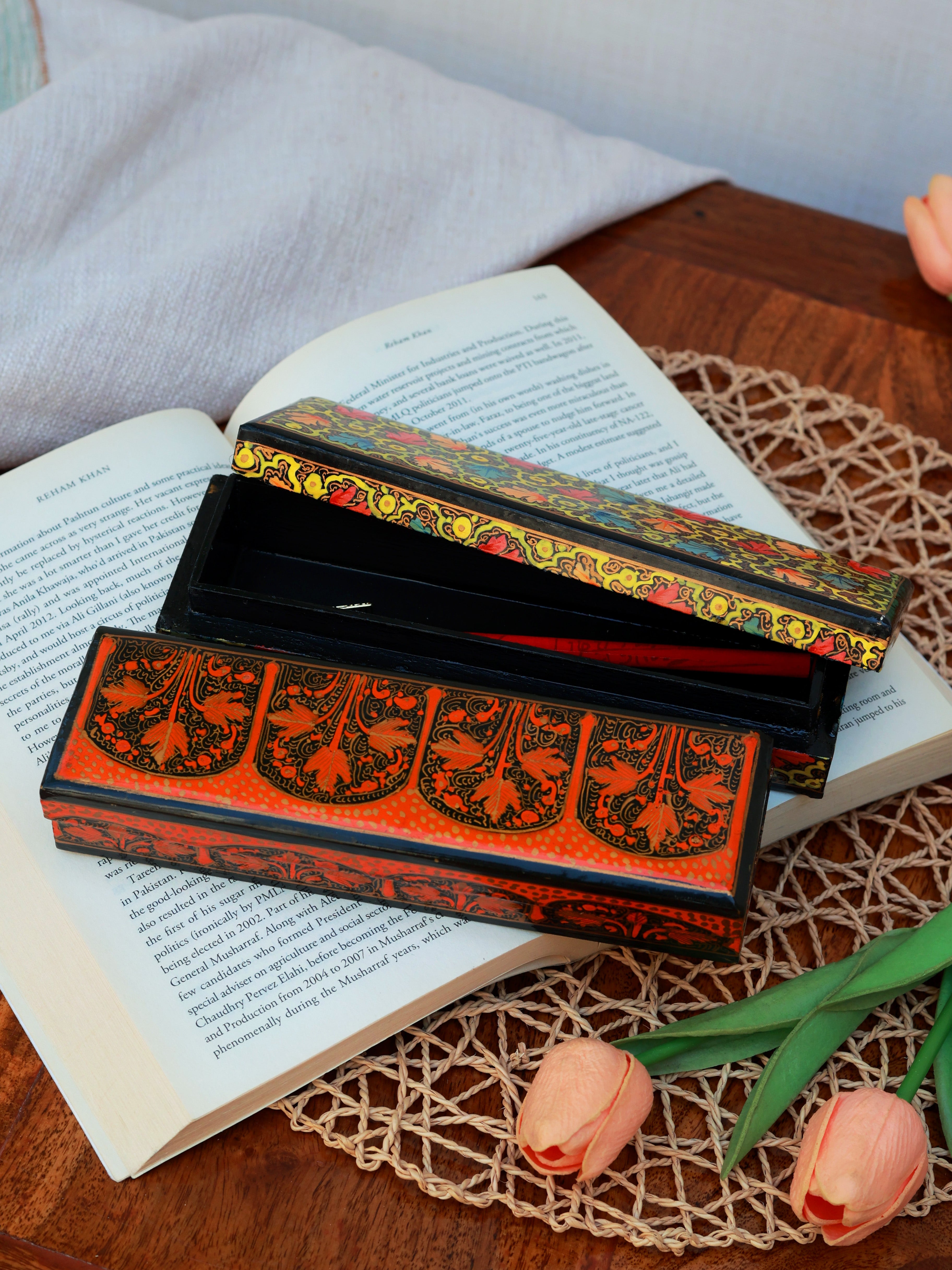 This vintage wooden pen box combines timeless craftsmanship with elegant design. Made from high-quality wood and featuring intricate detailing, it provides a secure . Perfect for collectors or as a thoughtful gift, this box adds a touch of classic sophistication to any desk or display. A functional yet beautiful way to showcase your favorite writing instruments.