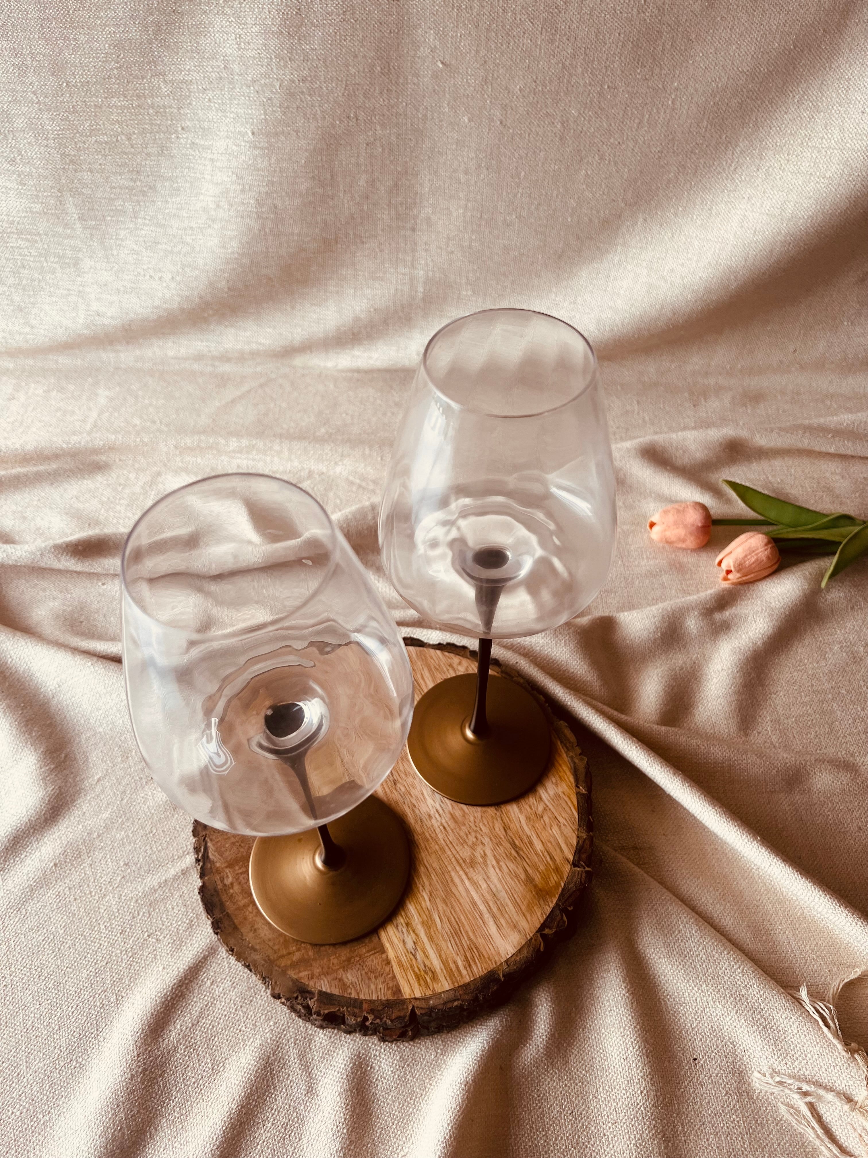 Tall wine glass with Royal black stem and golden base (Set of 4)