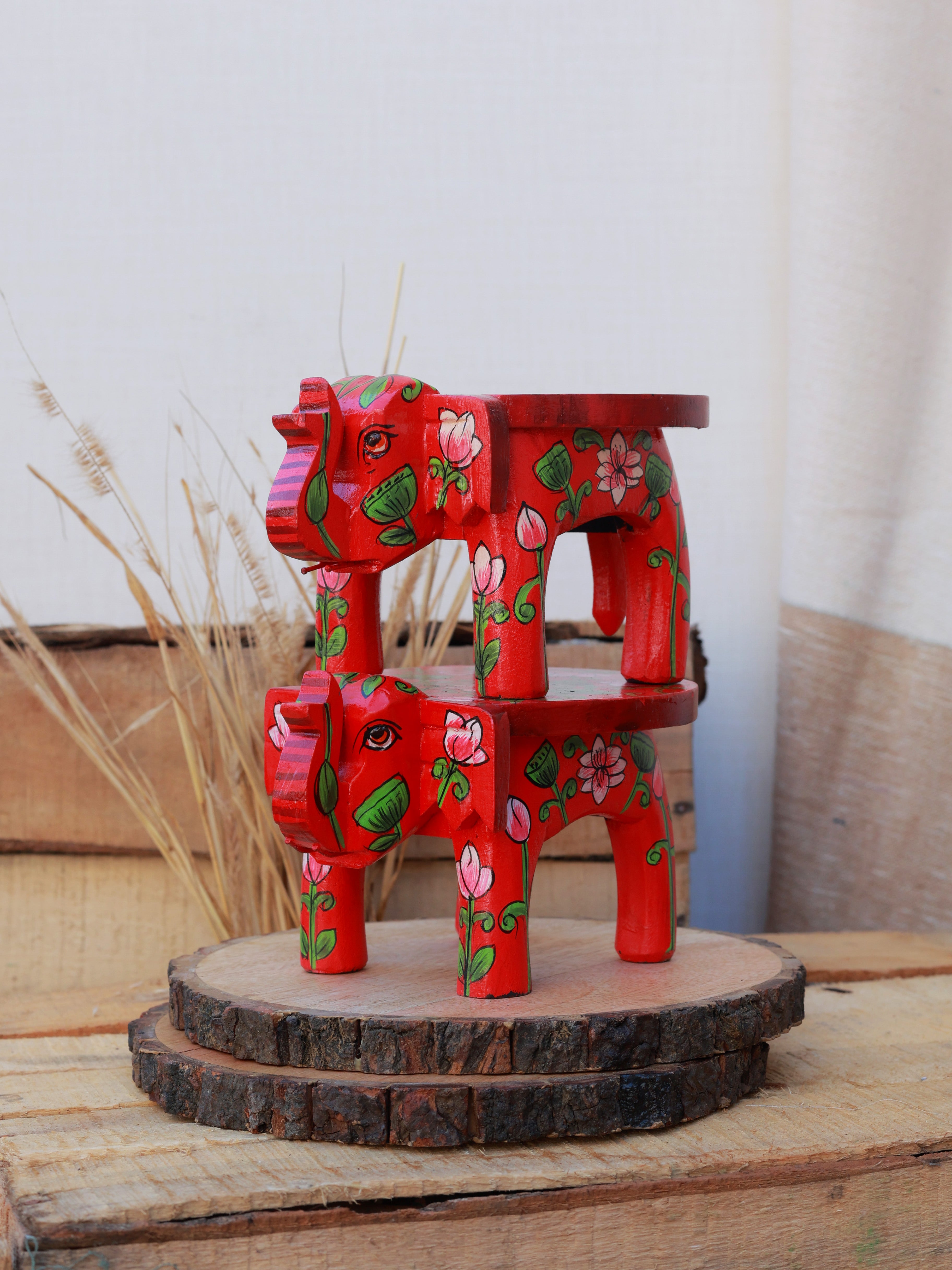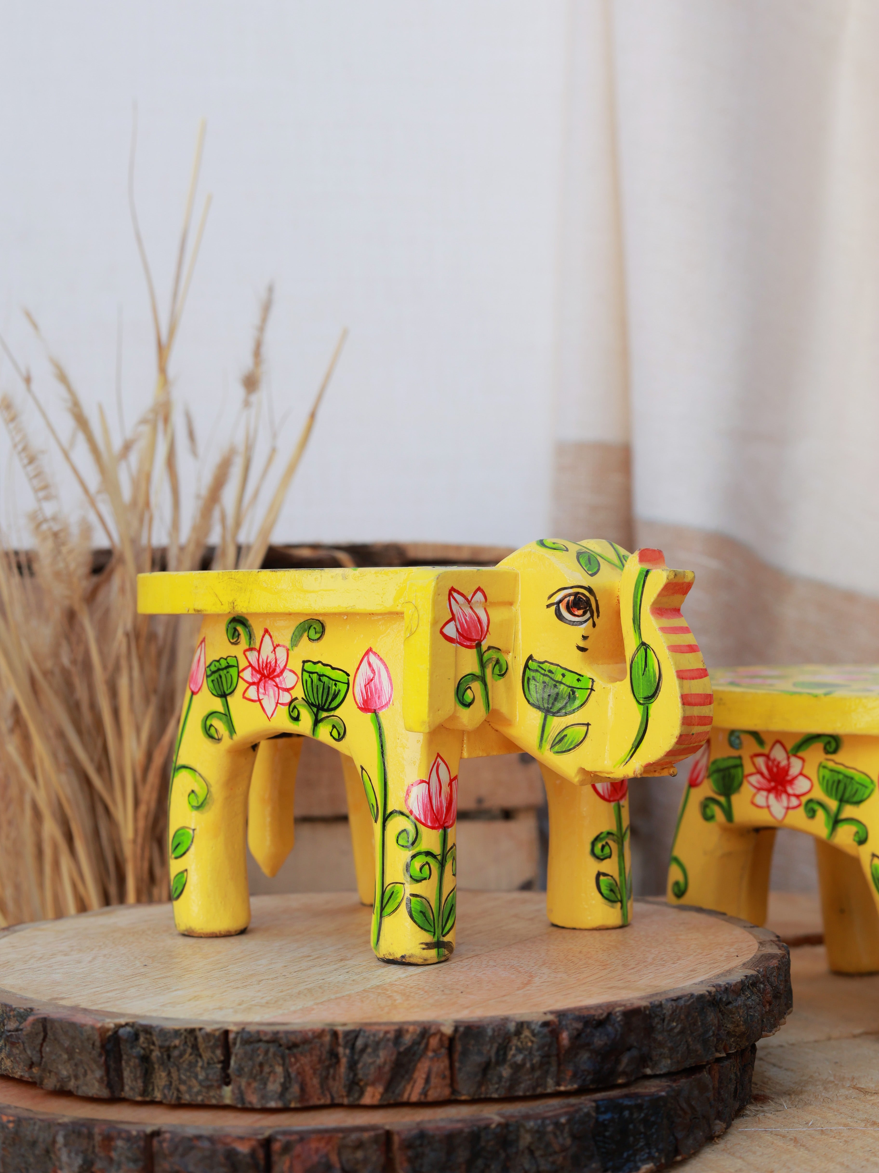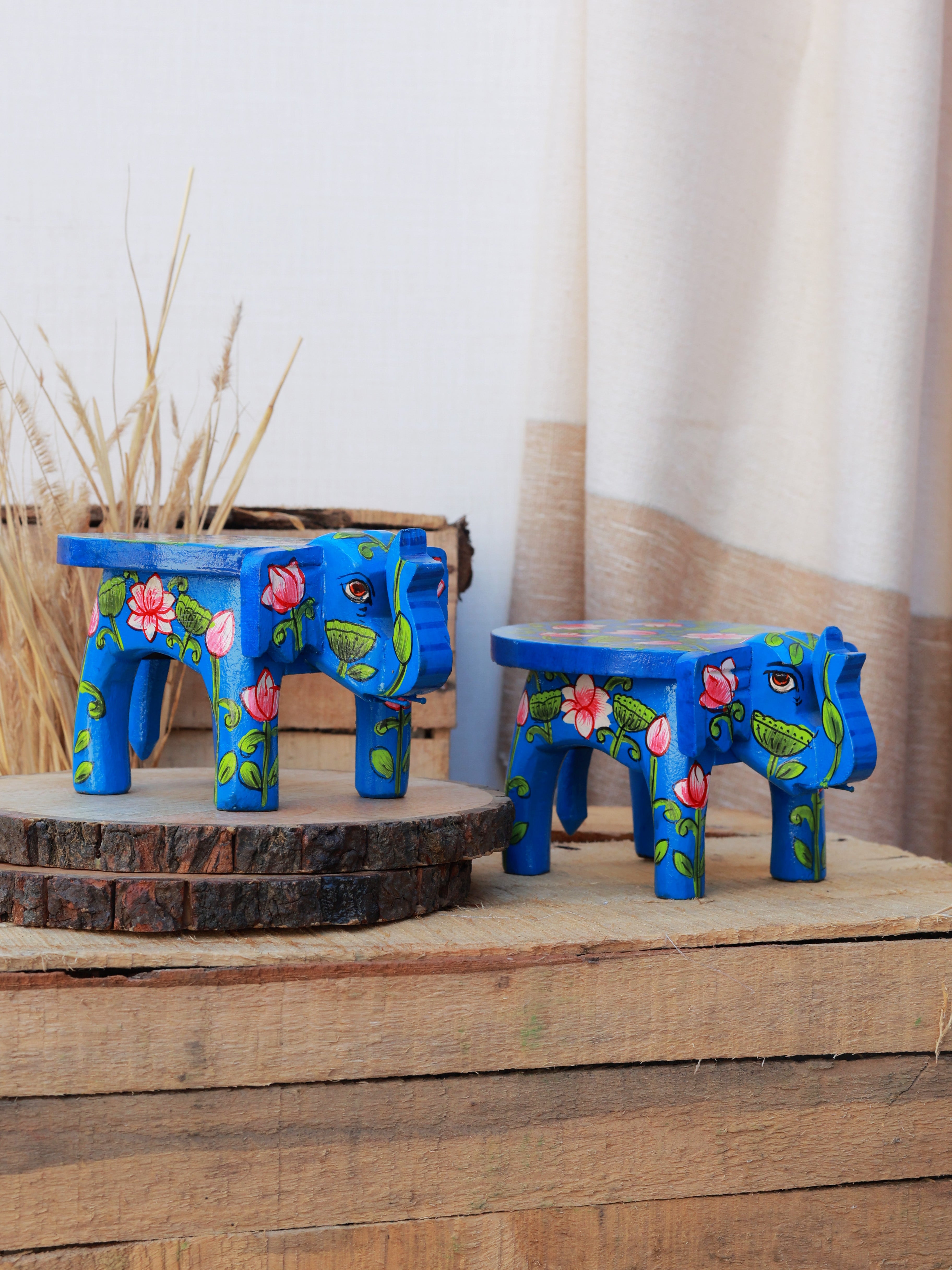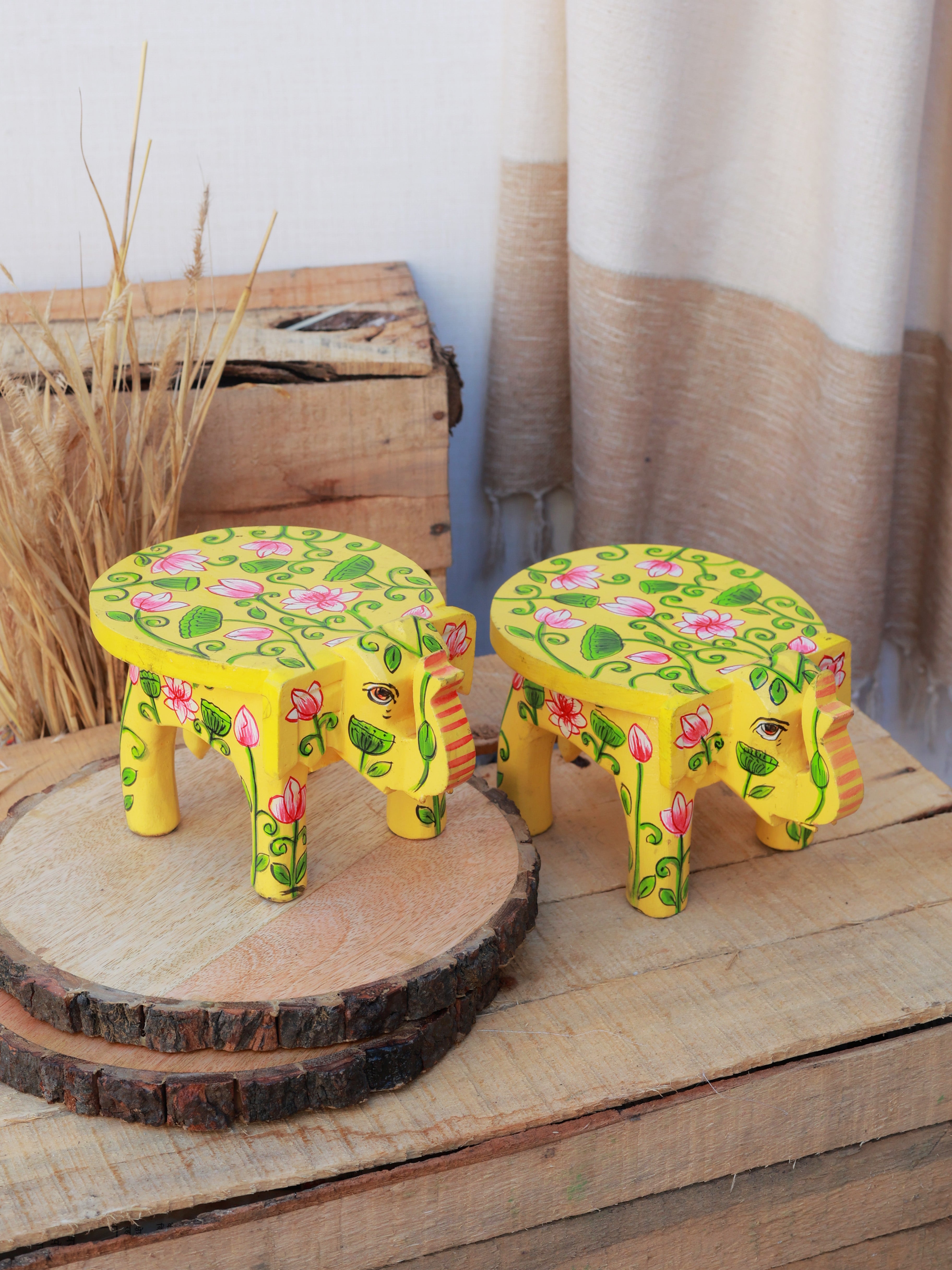 Rangrez Lotus Haathi Accent Mini Stools -Set of 2