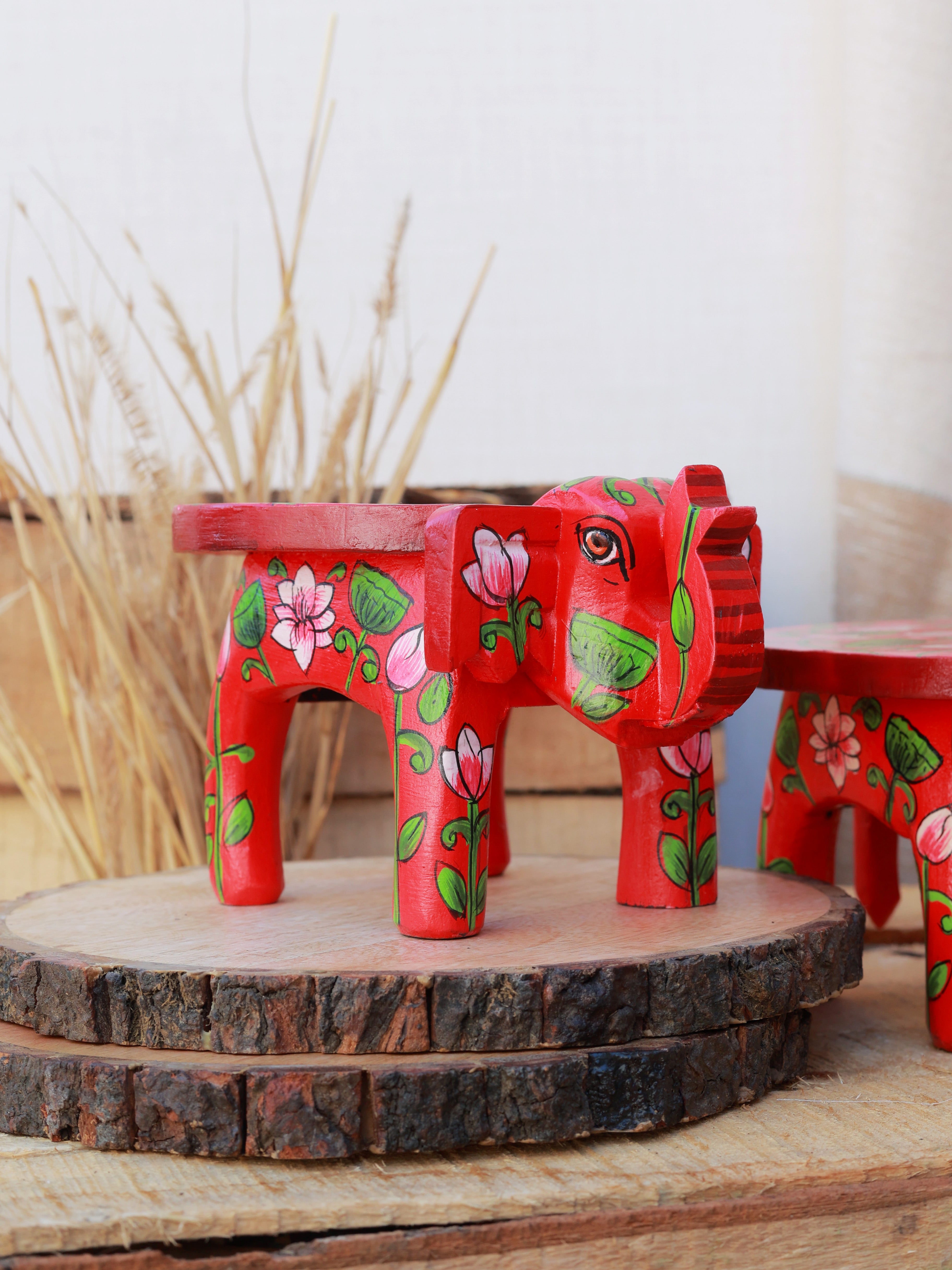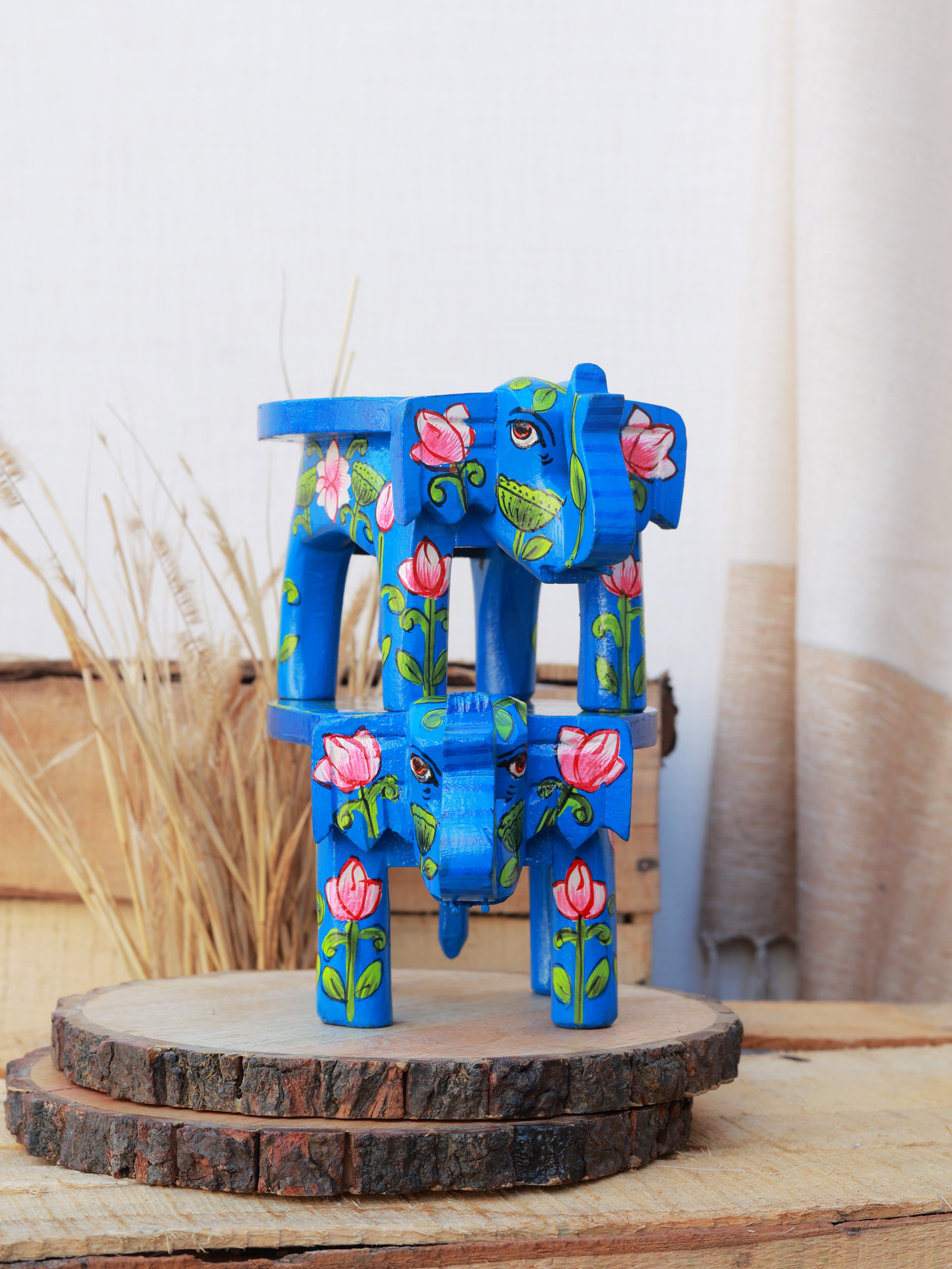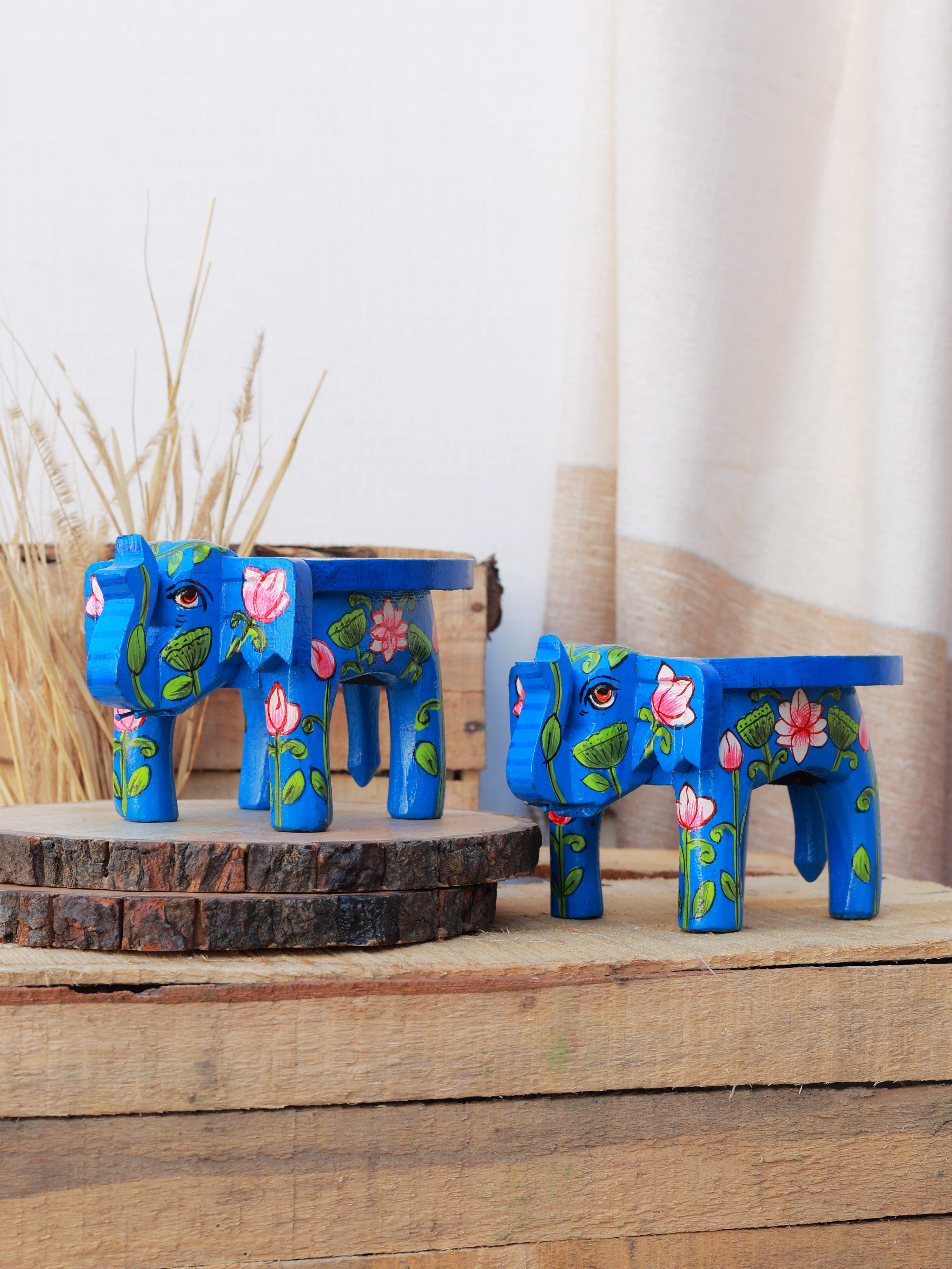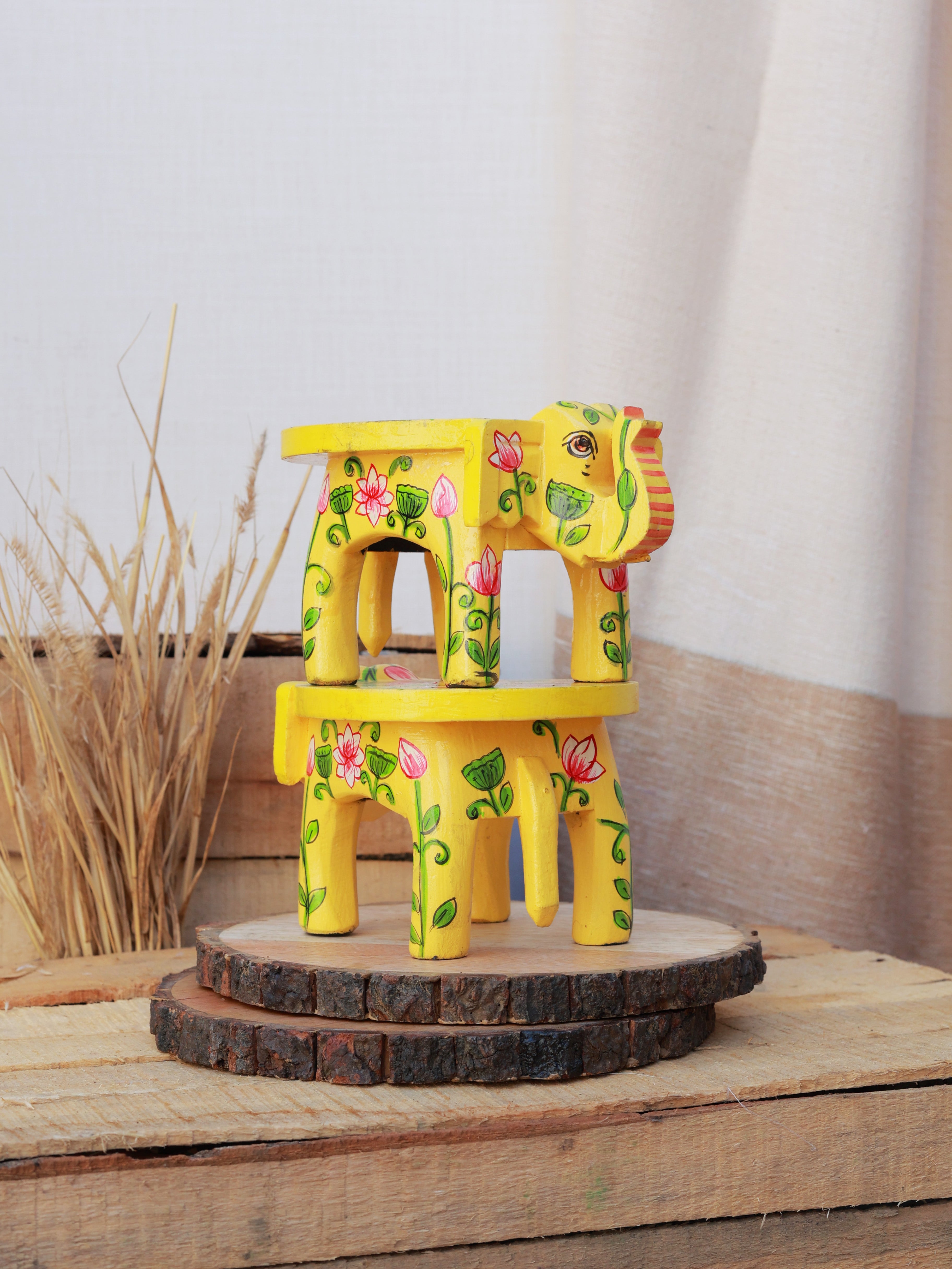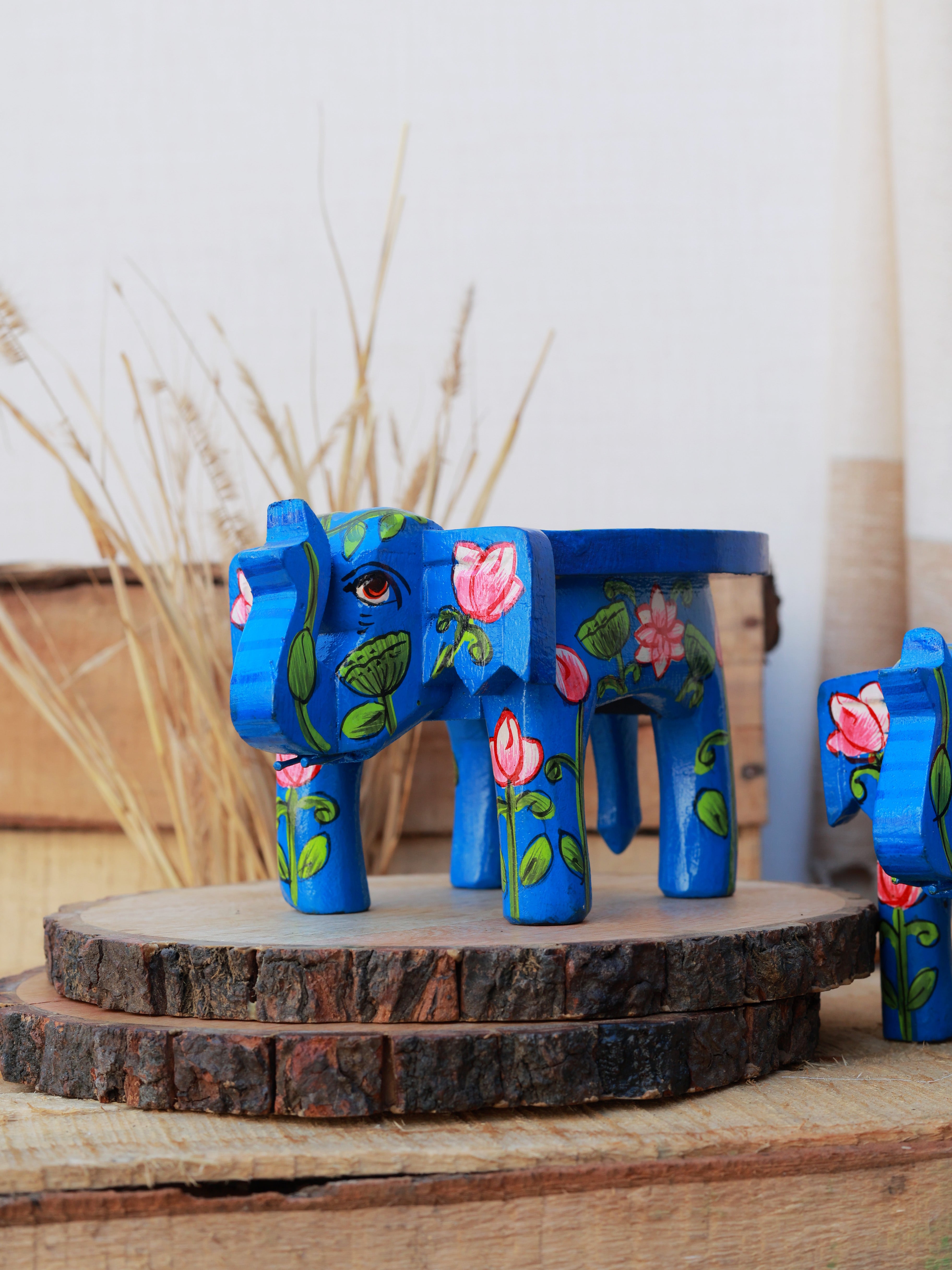 Rangrez Lotus Haathi Accent Mini Stools -Set of 2
