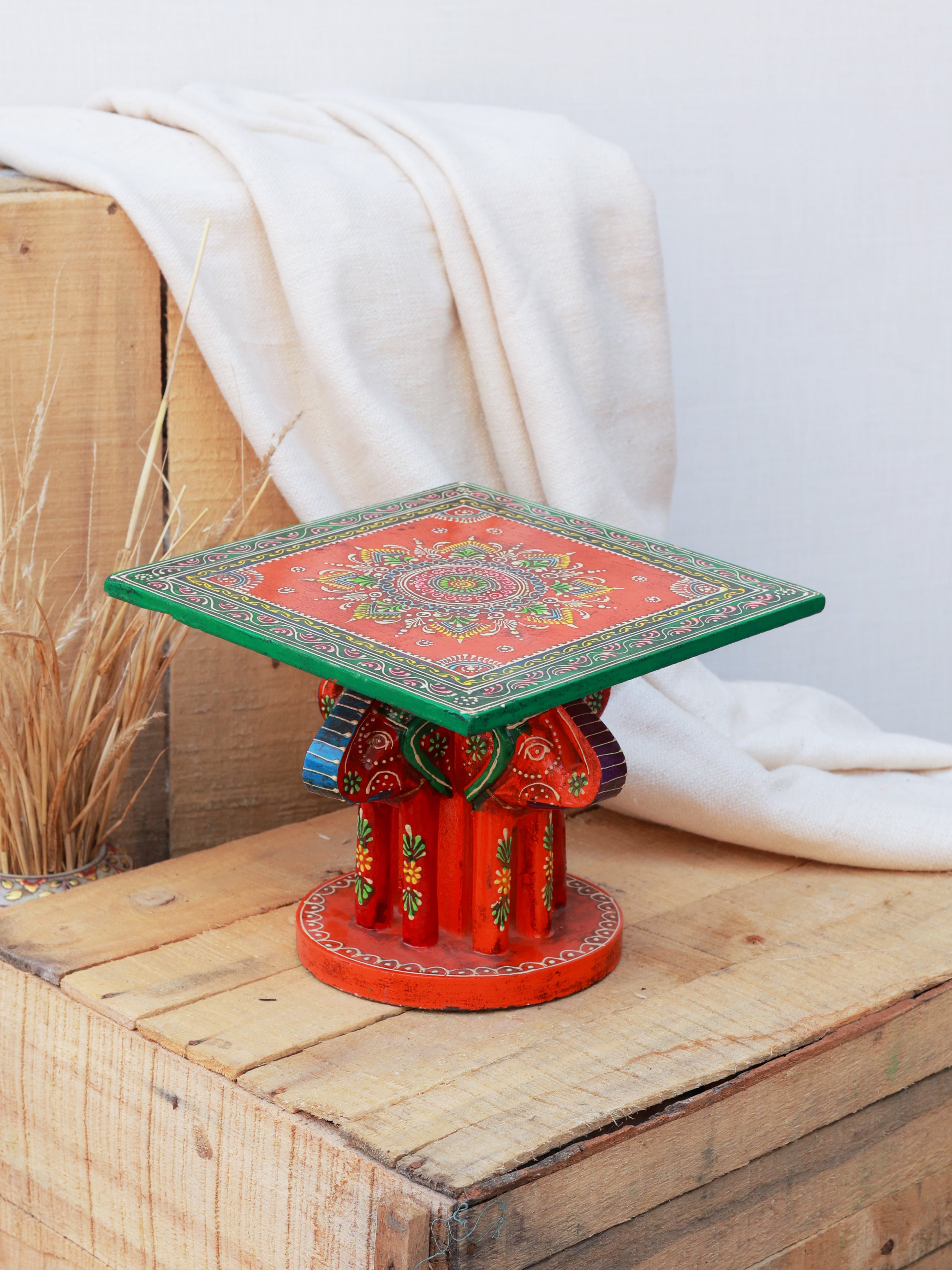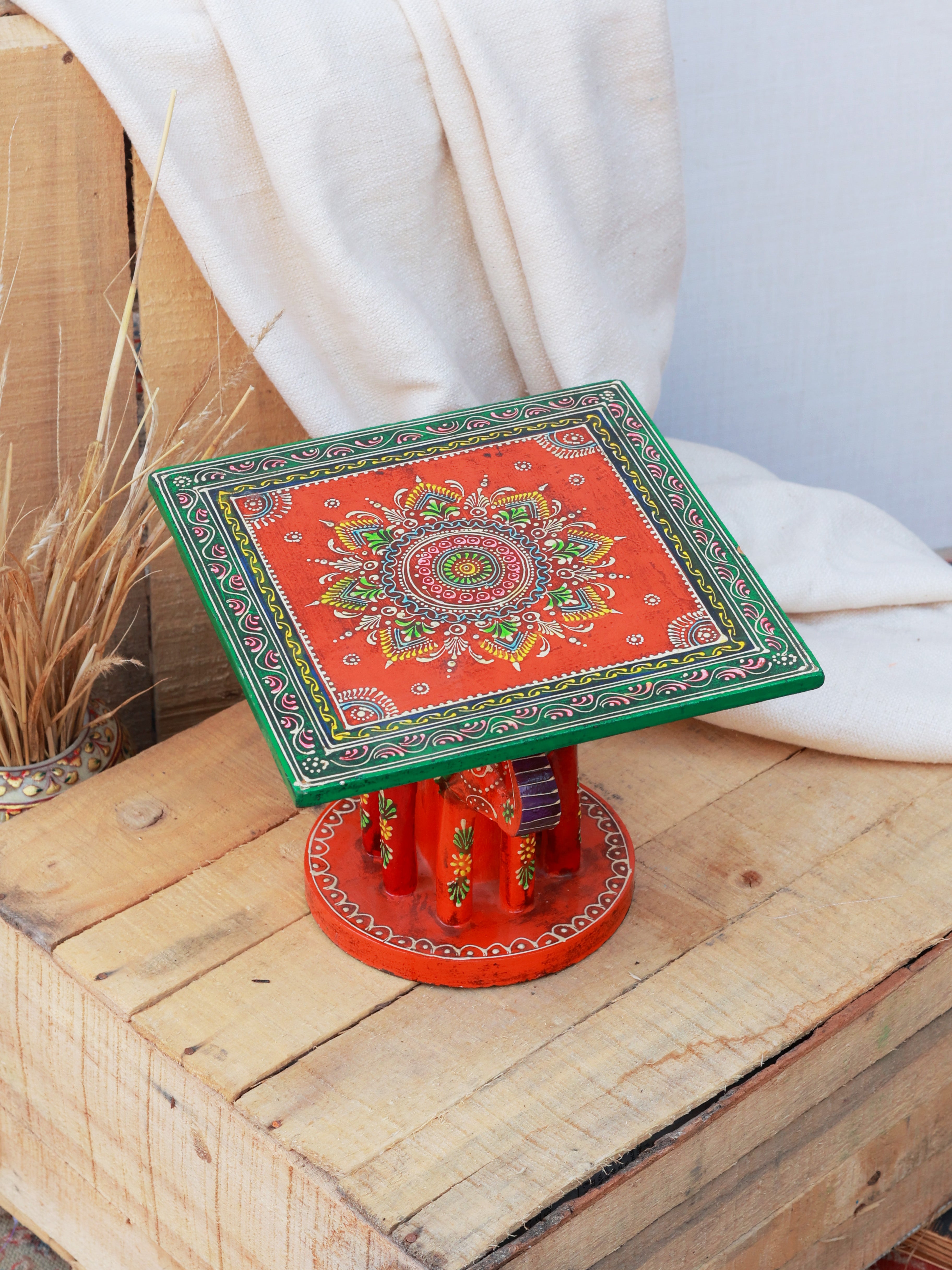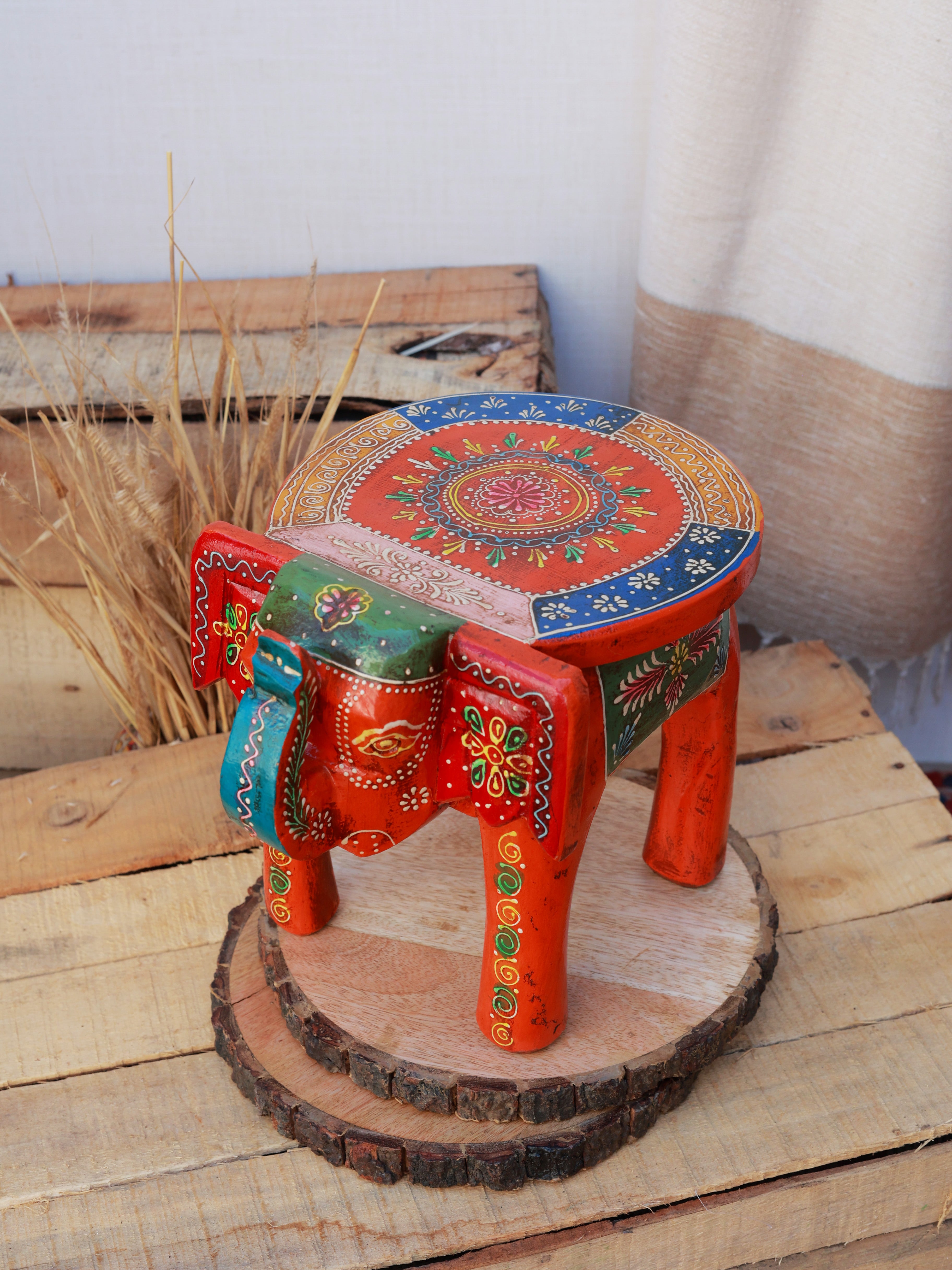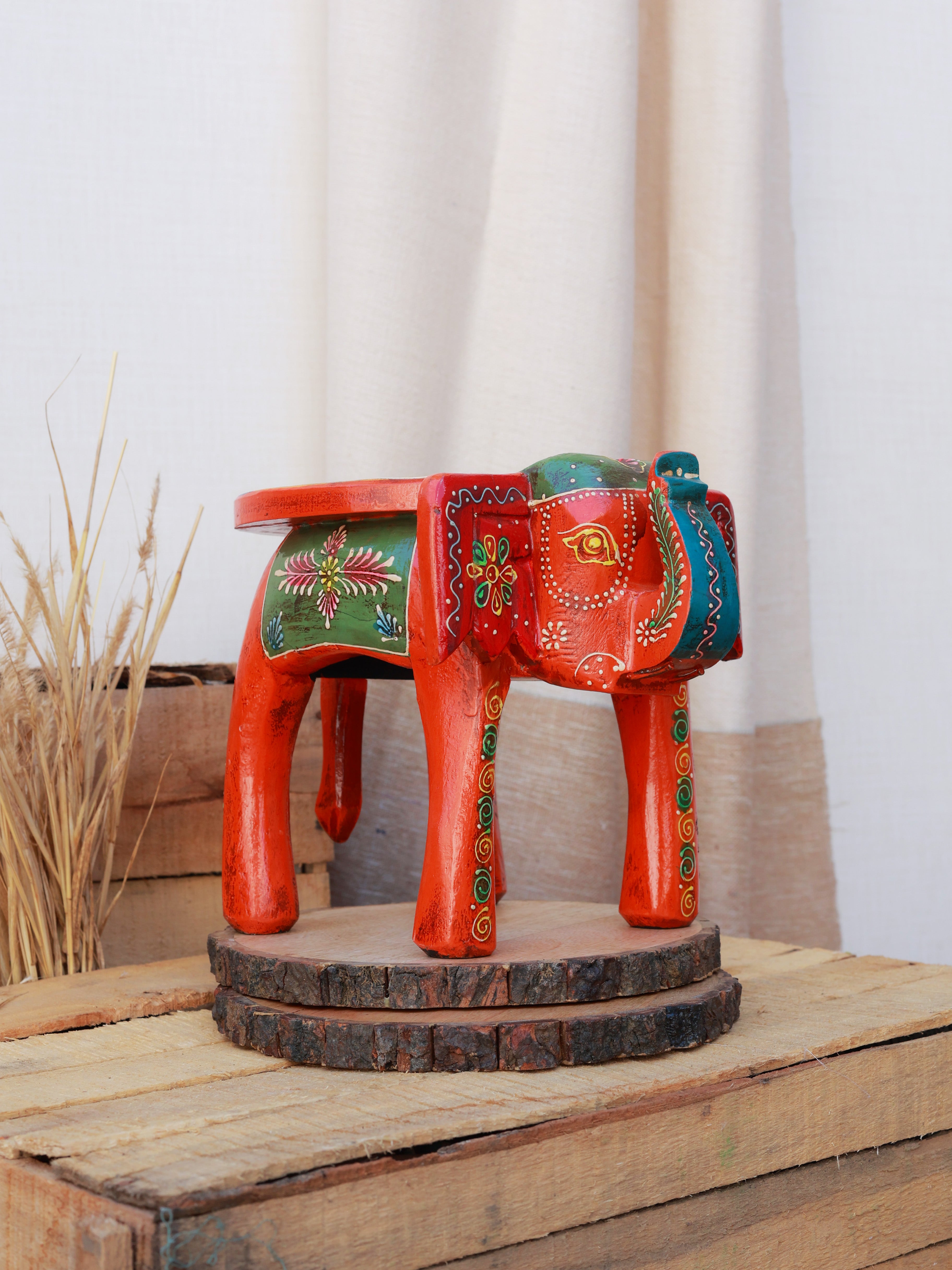 Rustic Rangrez Elephant Stool