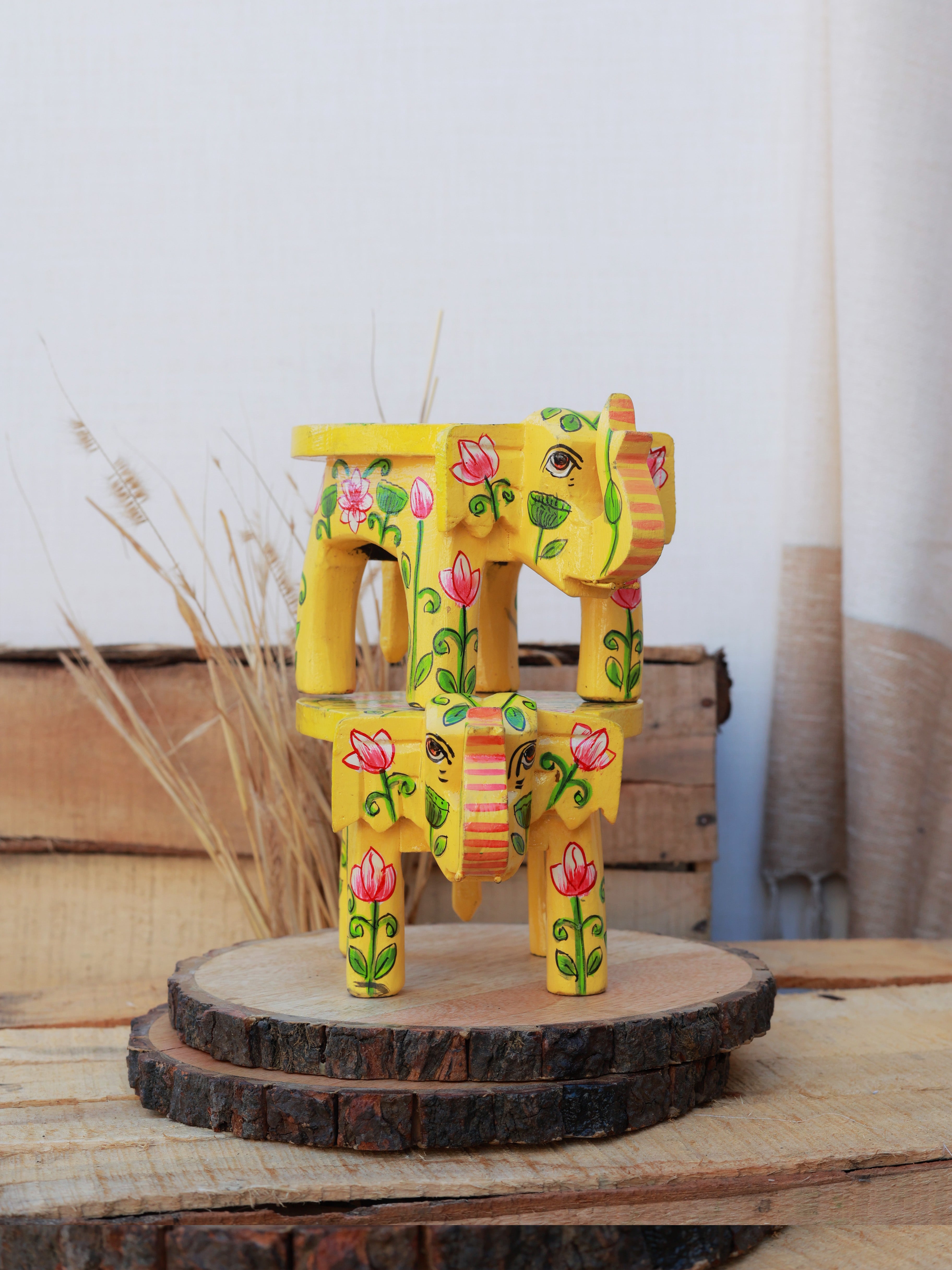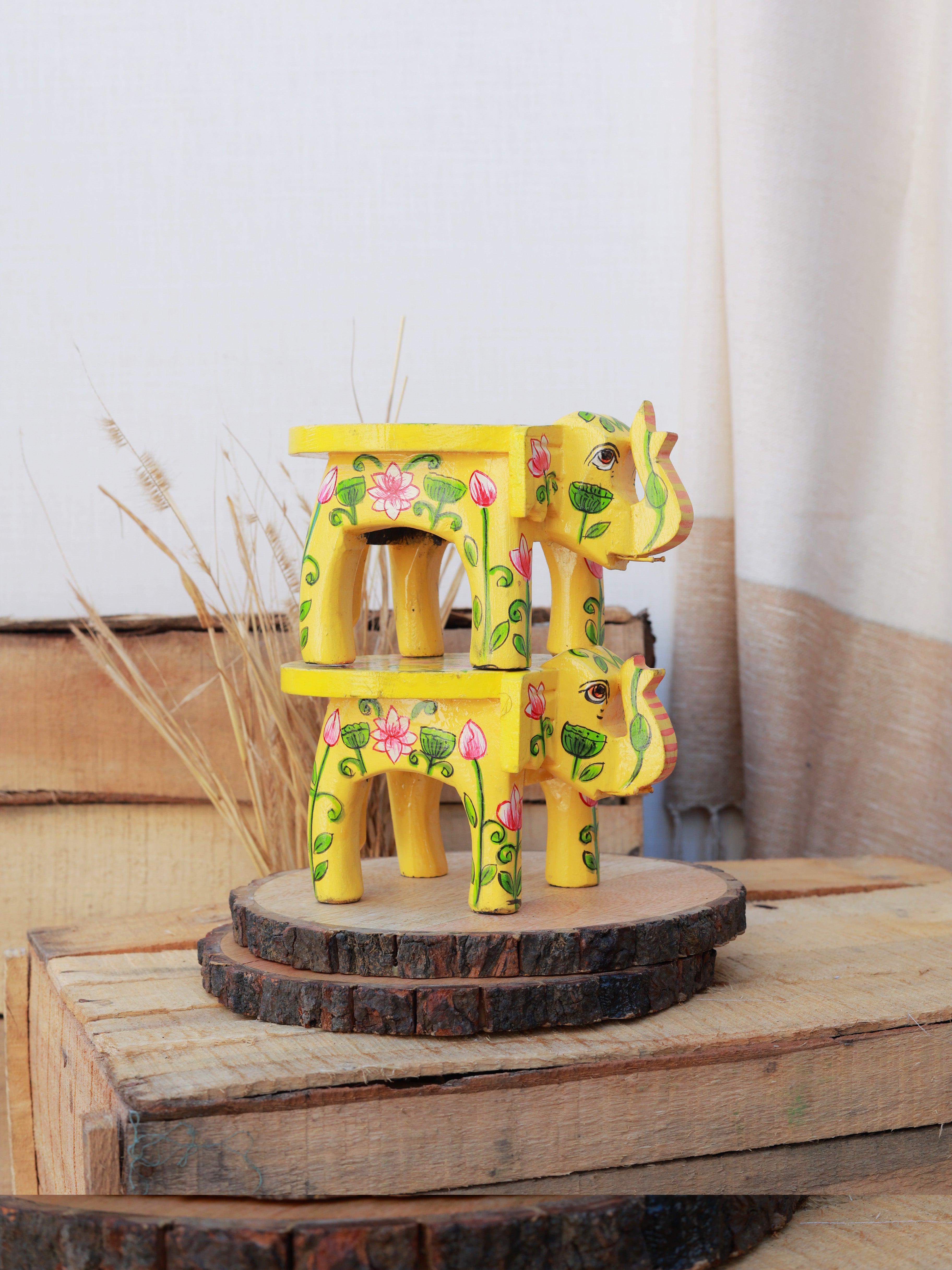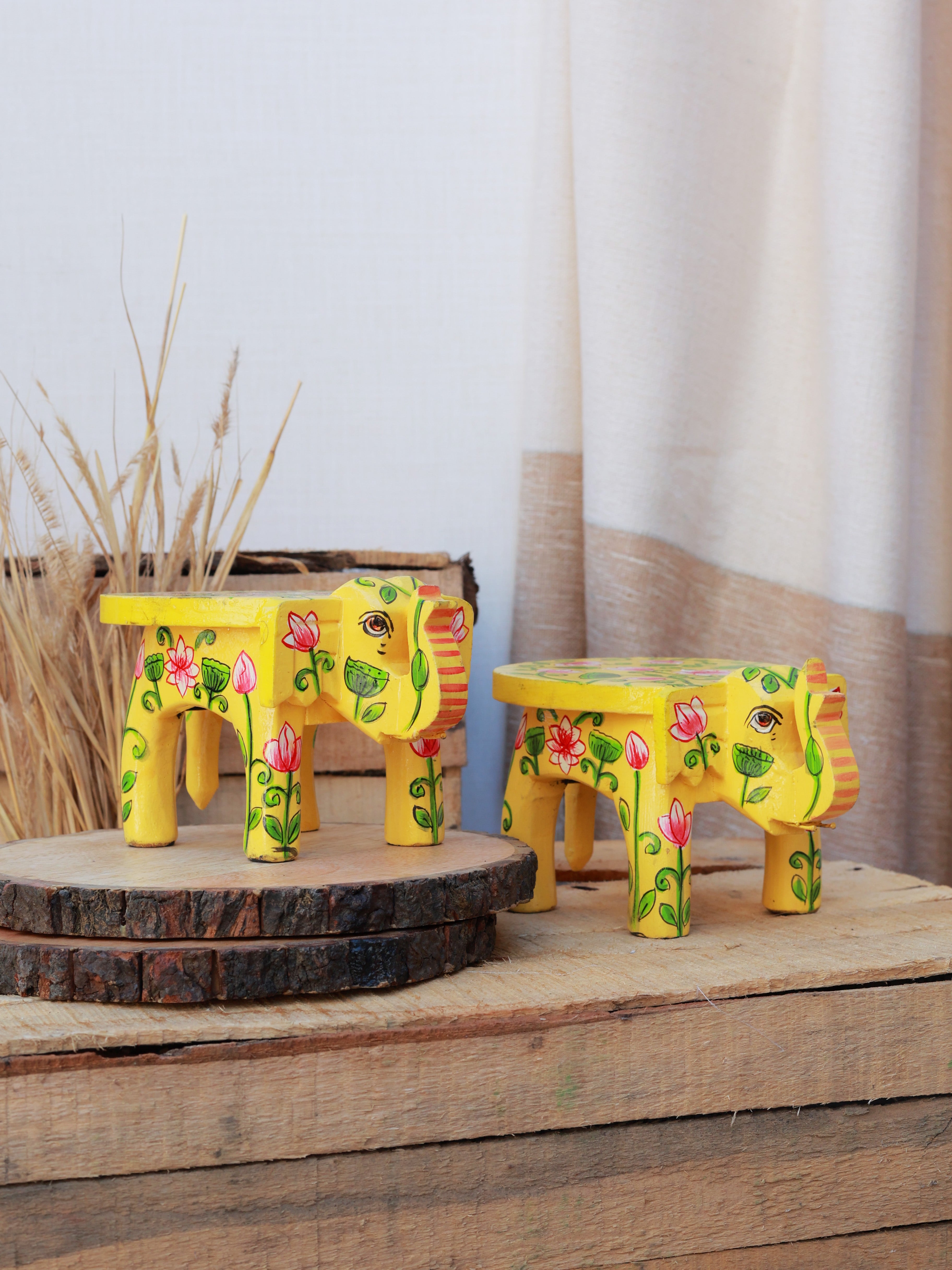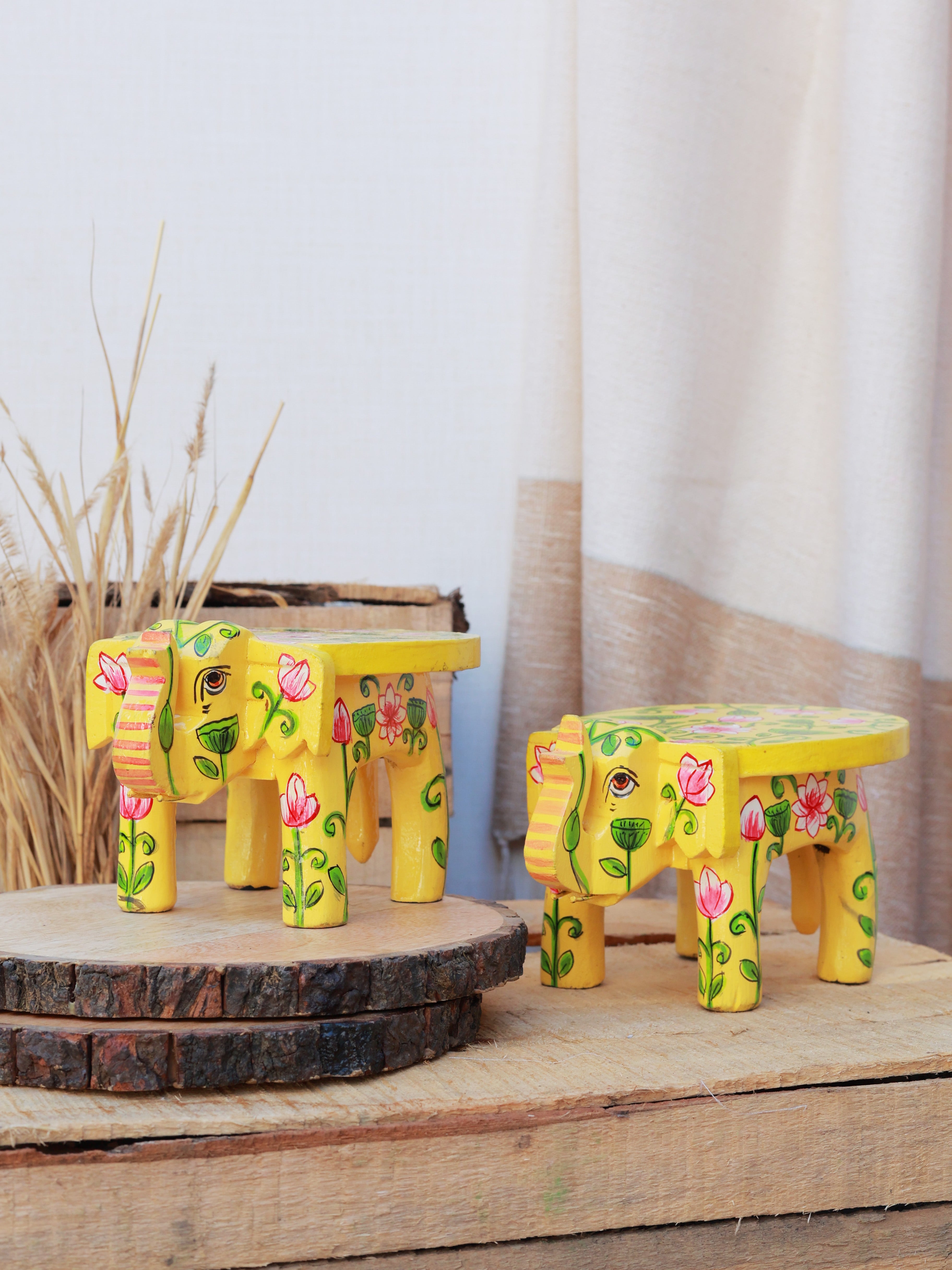 Rangrez Lotus Haathi Accent Mini Stools -Set of 2