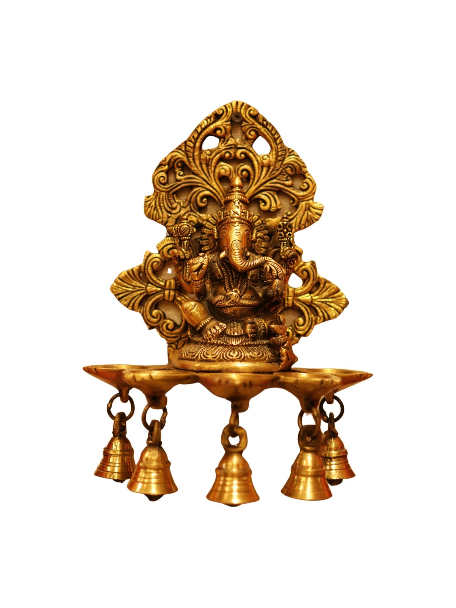 - Handcrafted Brass: The diya and bells are meticulously crafted from durable brass, ensuring long-lasting beauty, functionality, and resistance to corrosion. The brass is finished in a warm, golden tone that adds a touch of elegance.