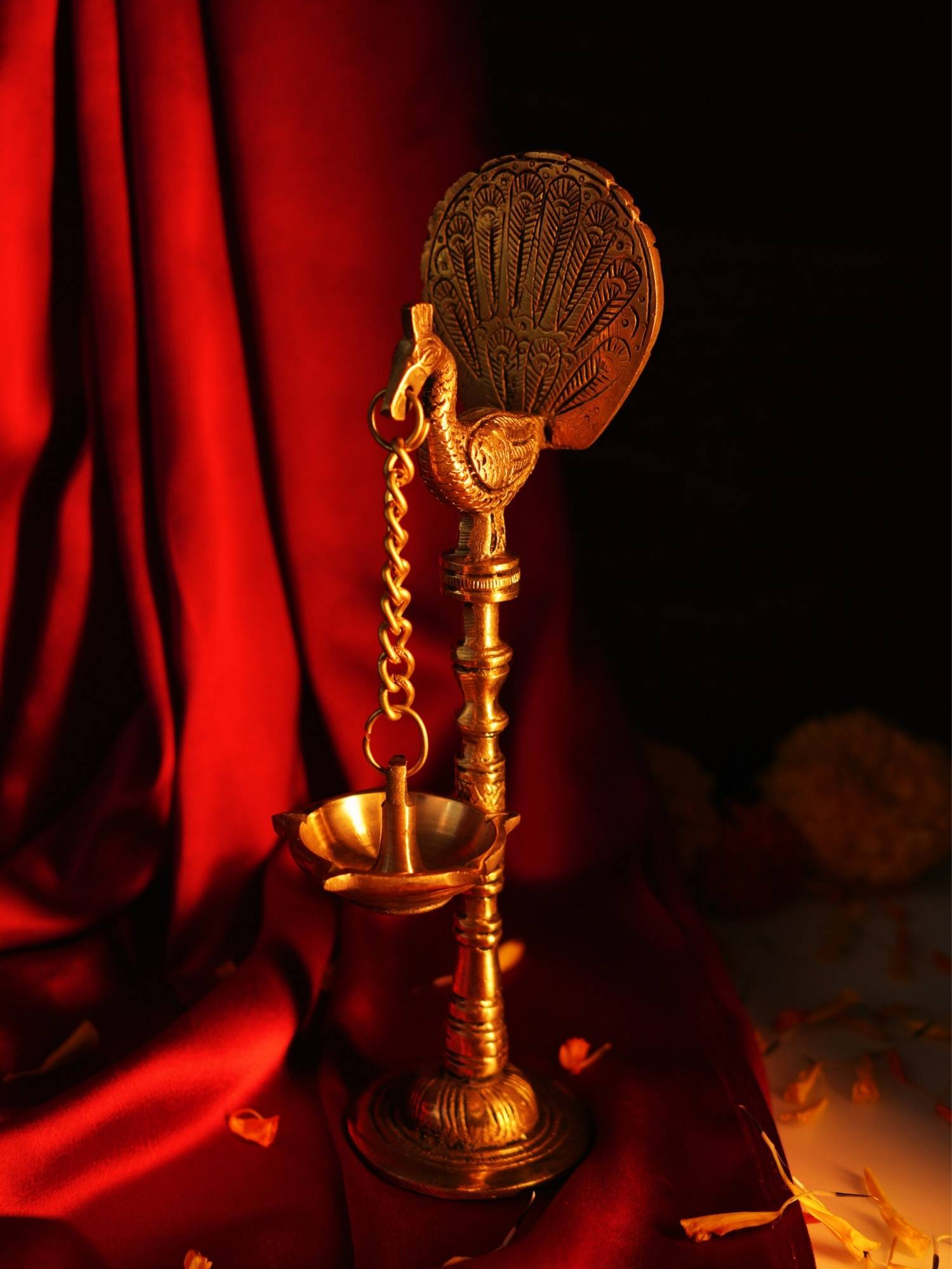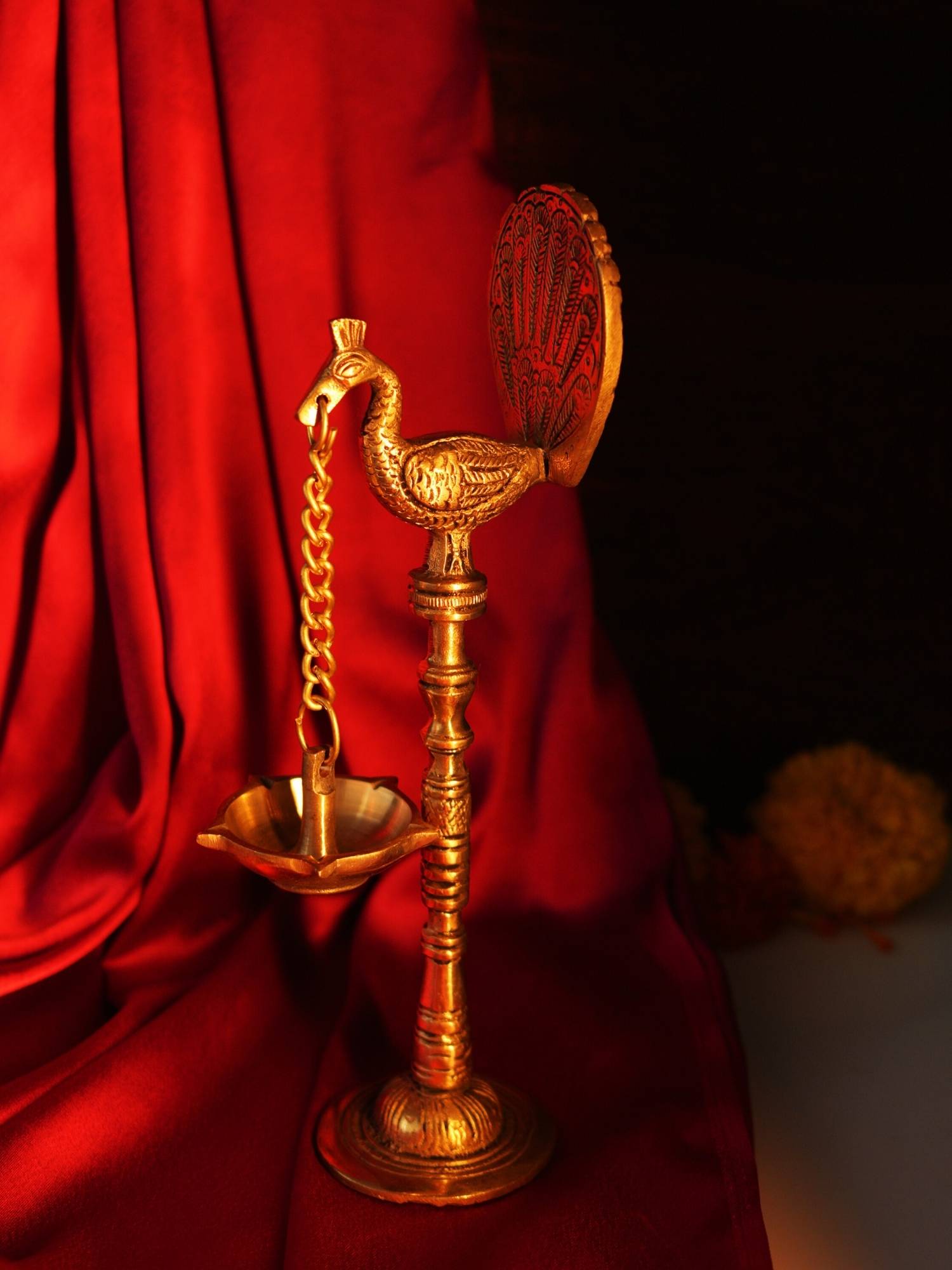 - Intricate Peacock Design: The diya features a detailed peacock design, complete with intricate feathers and a lifelike pose.