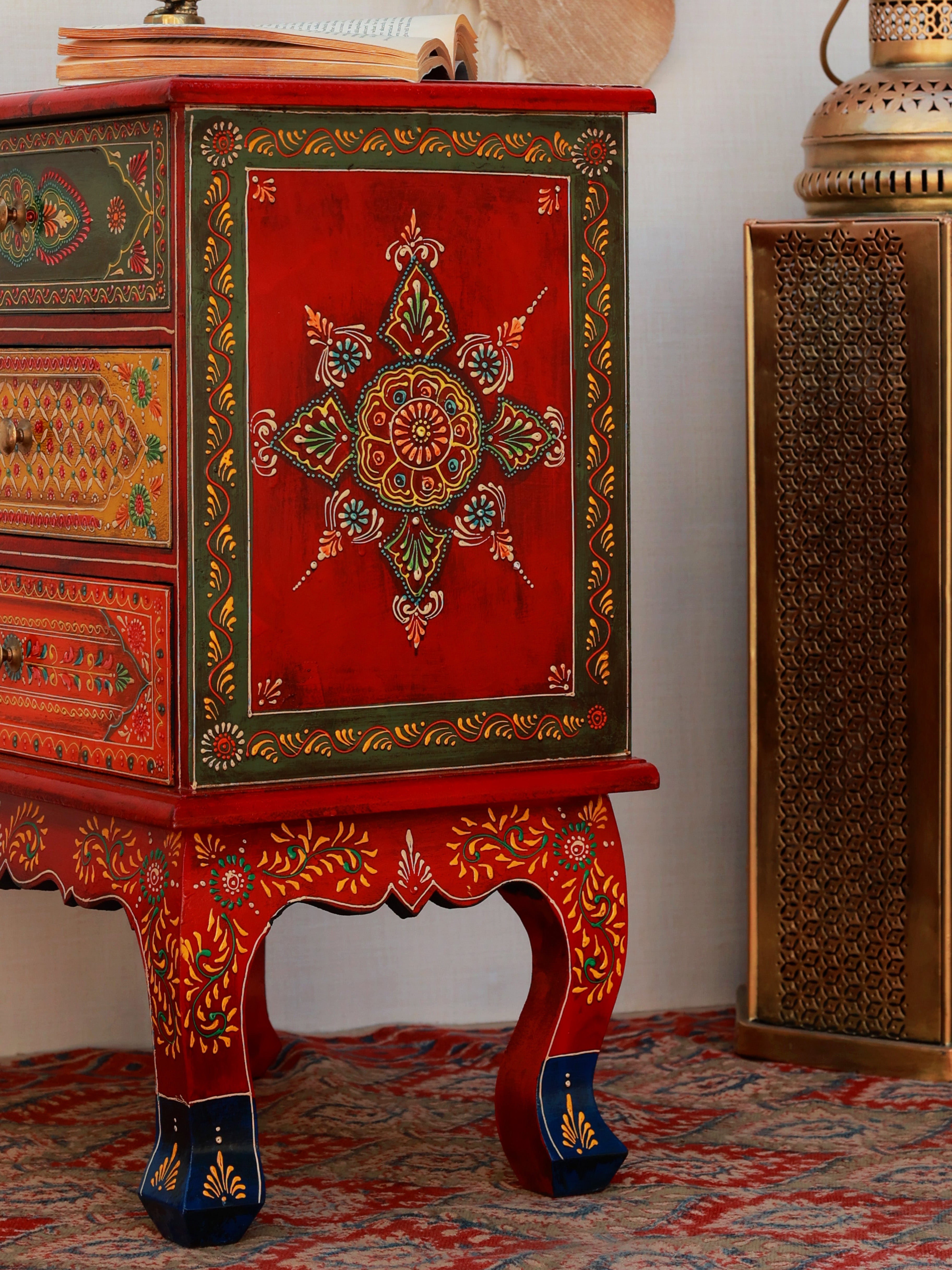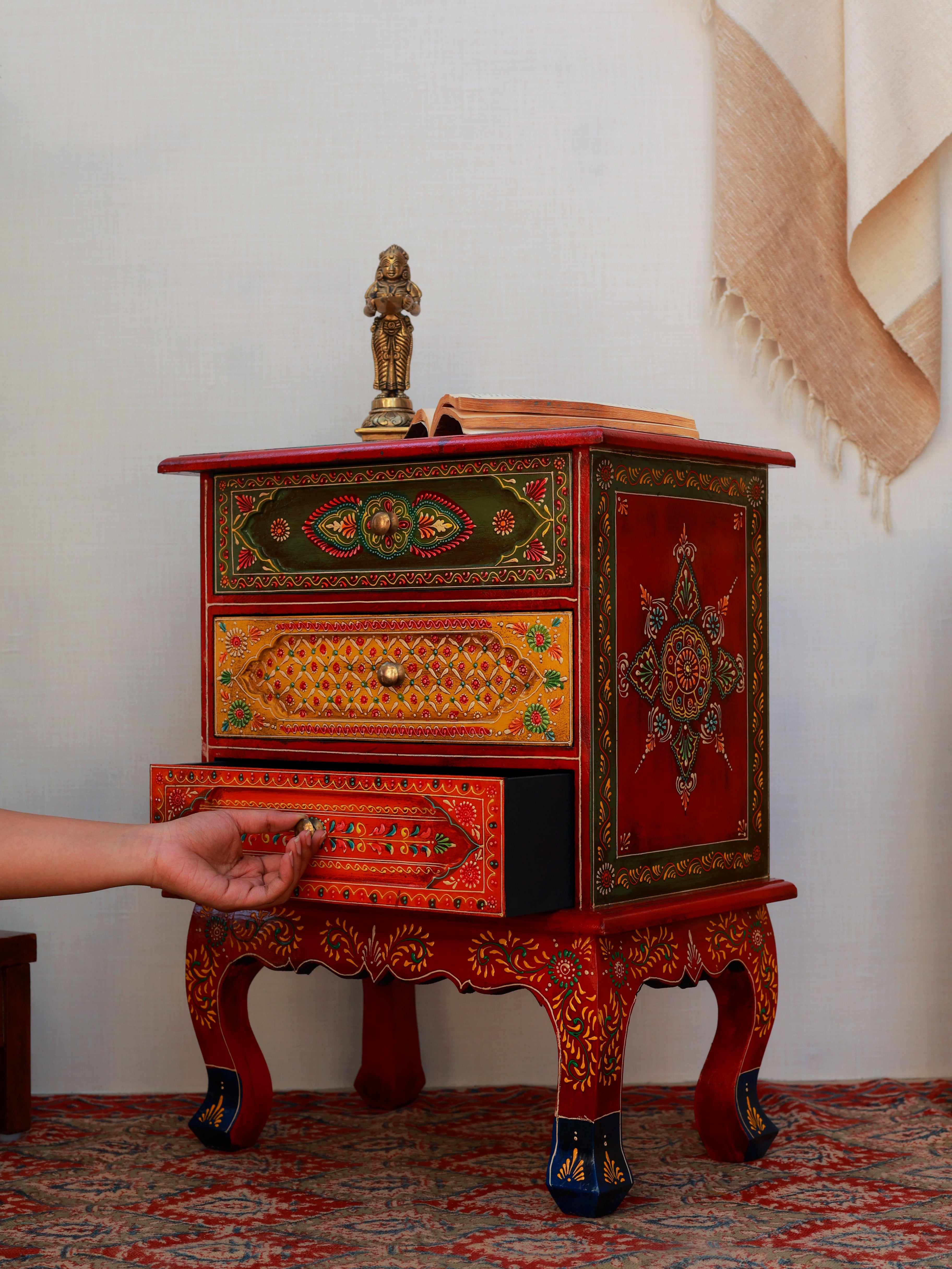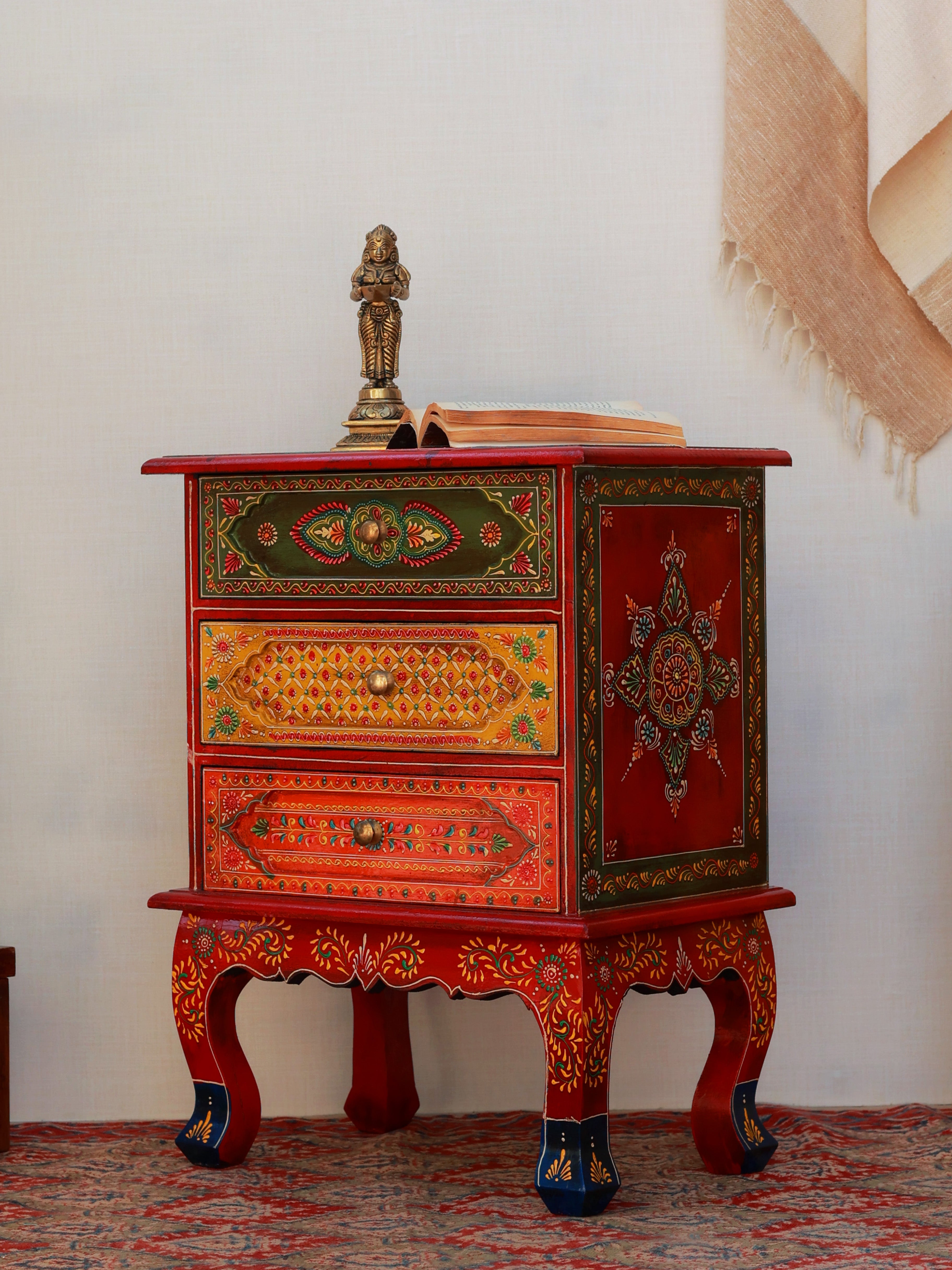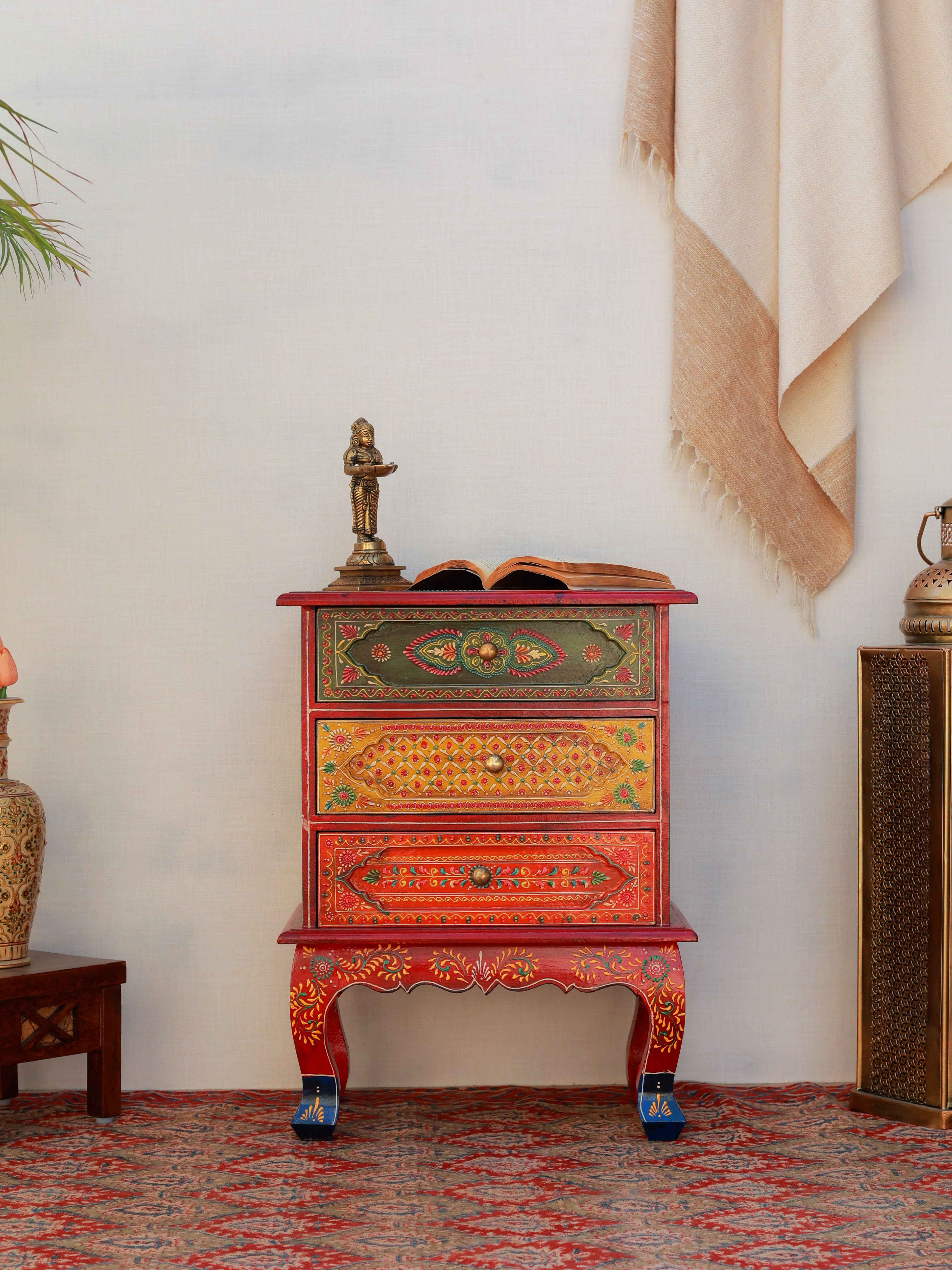 The Aangan-e-Rang Drawer Chest feels like a slice of an old Indian courtyard where colours told stories and every motif carried a blessing. Hand-painted by artisans who have inherited this craft through generations, its vibrant layers of red, green, and gold echo the warmth of festive evenings and the charm of a lived-in haveli. Each drawer opens like a little treasure box—inviting you to store memories, not just things. This piece doesn’t just decorate a space; it fills your home with heritage, artistry, and a sense of timeless Indian beauty.