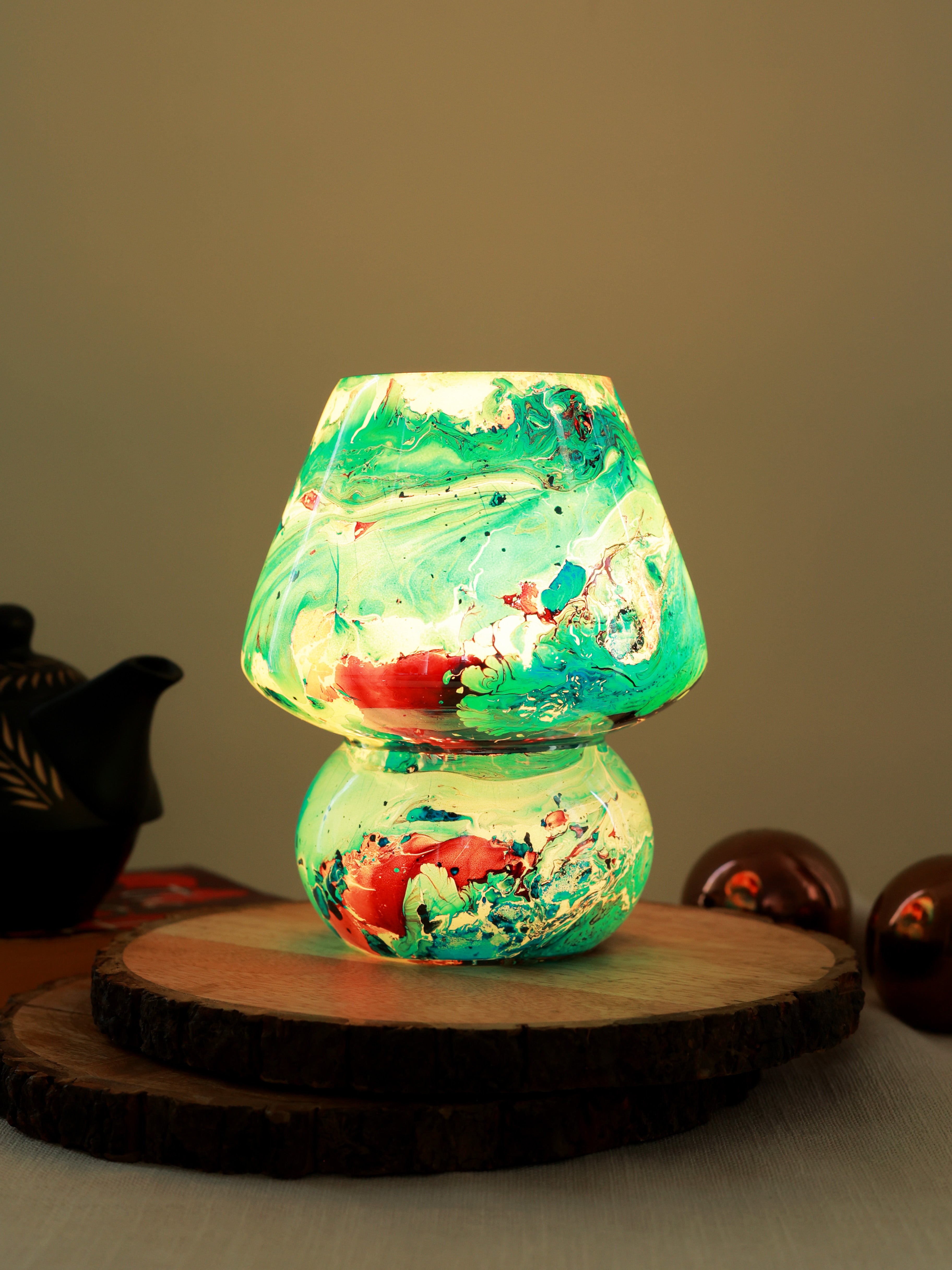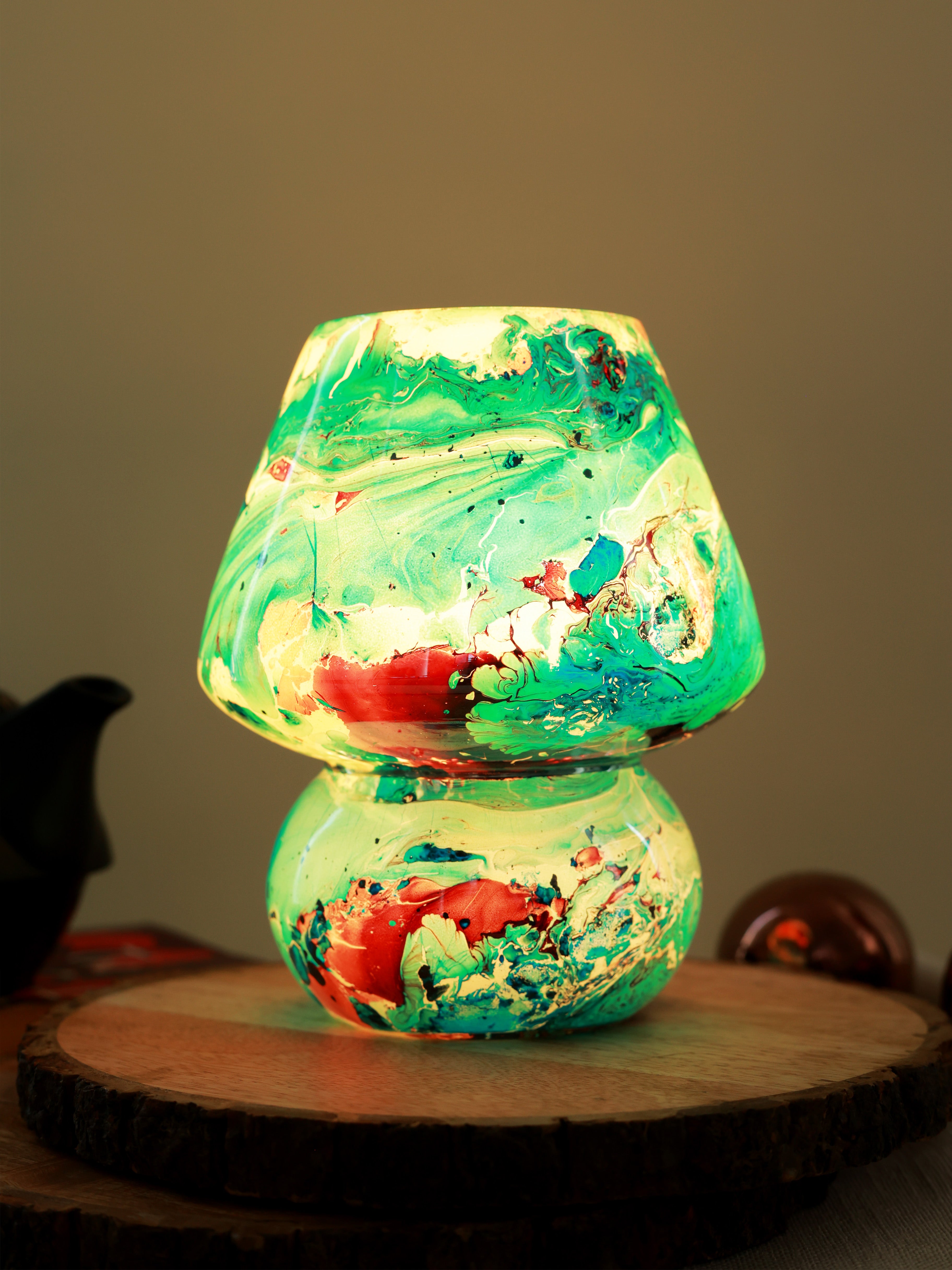 The Color Swirl Glass Lamp combines timeless glass elegance with refined modern design. Crafted from premium natural glass, each piece showcases unique veining that makes every lamp one of a kind. Its warm, balanced illumination enhances bedrooms, living rooms, and workspaces with effortless sophistication. A perfect blend of luxury and functionality, the Color Swirl Glass Lamp elevates any décor with its sculptural presence and serene ambiance.