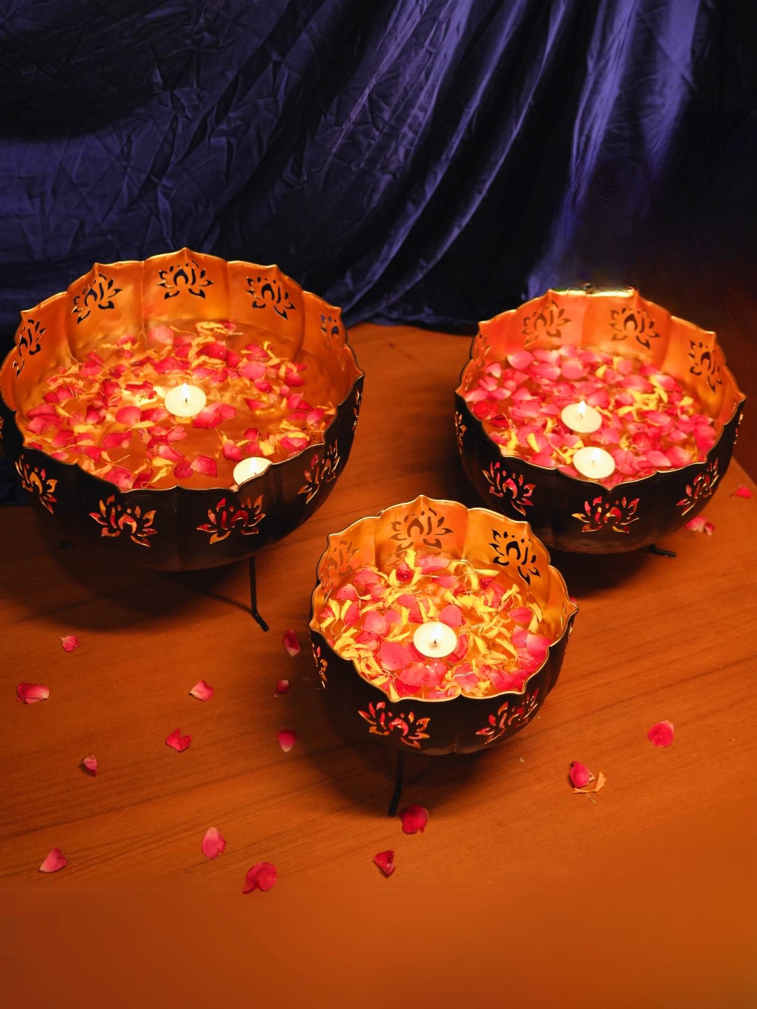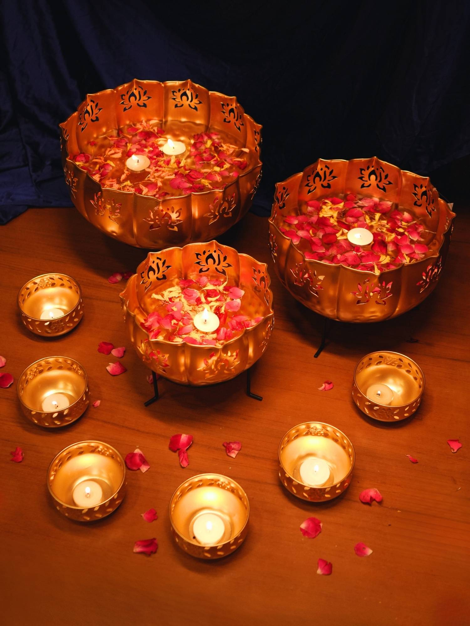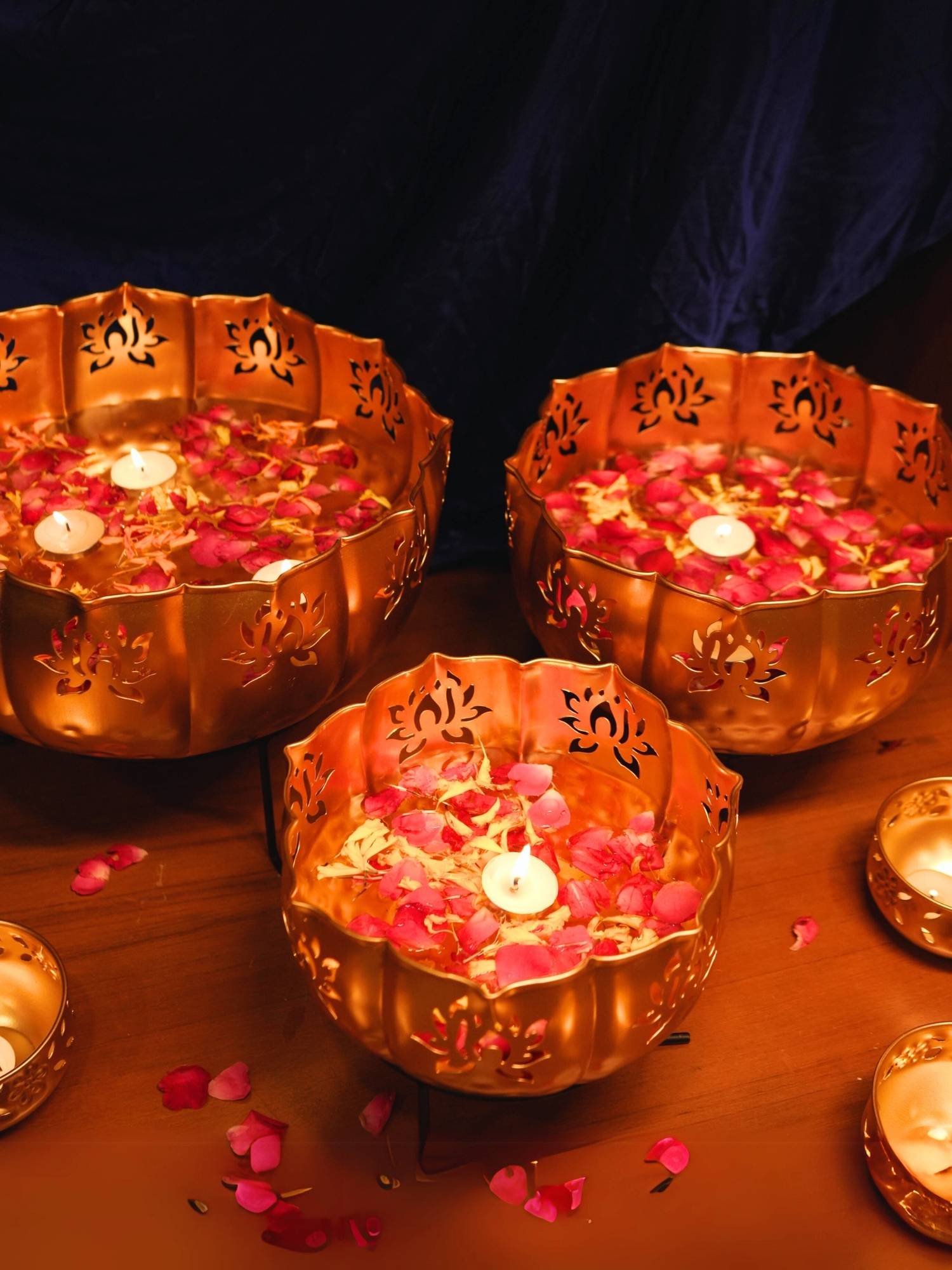 Warm and Inviting Atmosphere: When filled with diyas and rose petals, these urli bowls create a cozy and festive atmosphere that will fill your home with the spirit of Diwali.