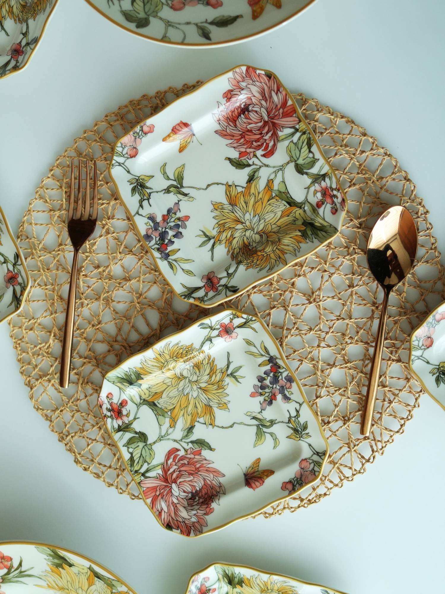 - Vibrant floral design: These square platters feature a stunning floral pattern, bringing a touch of nature to your table.