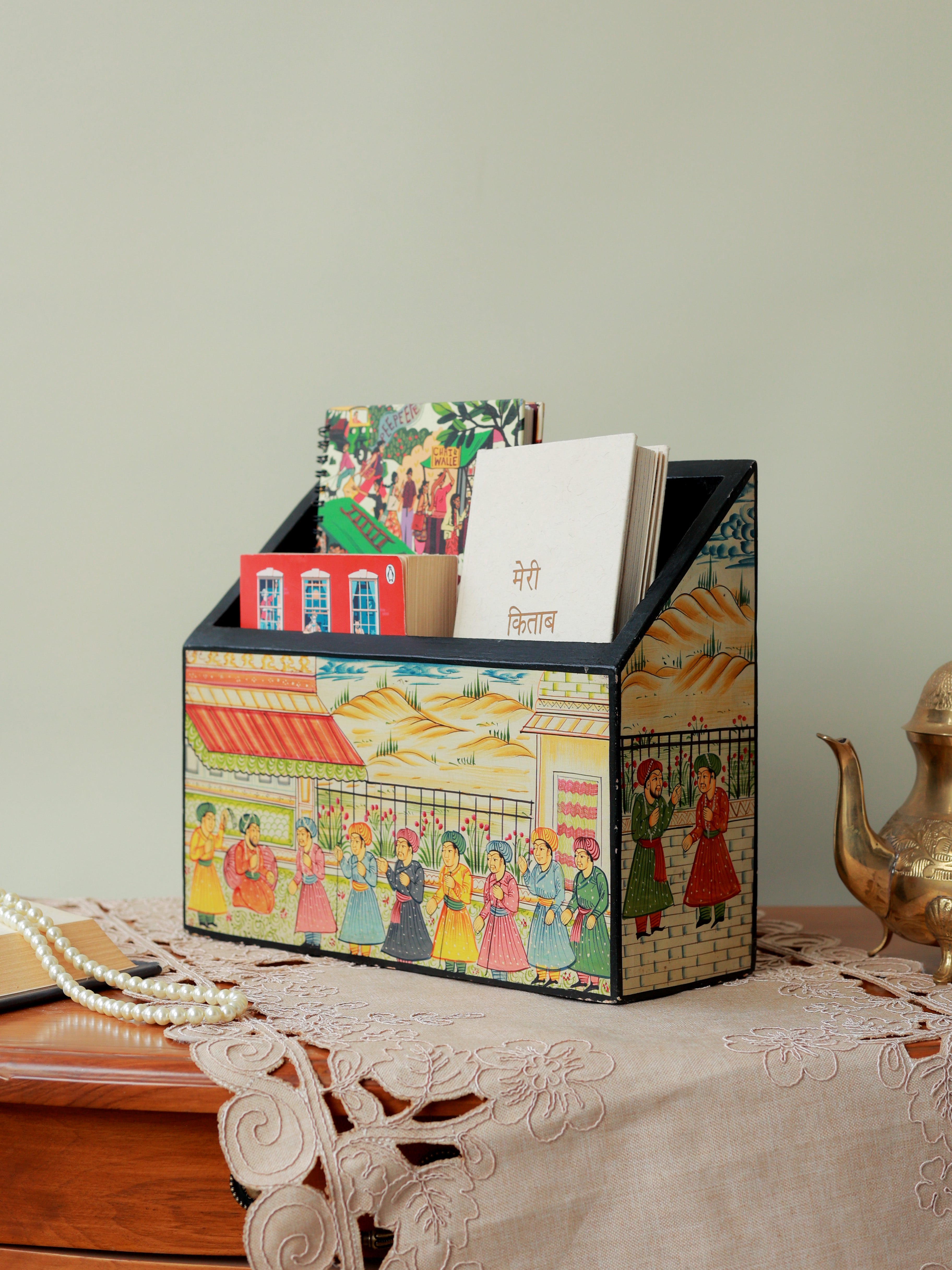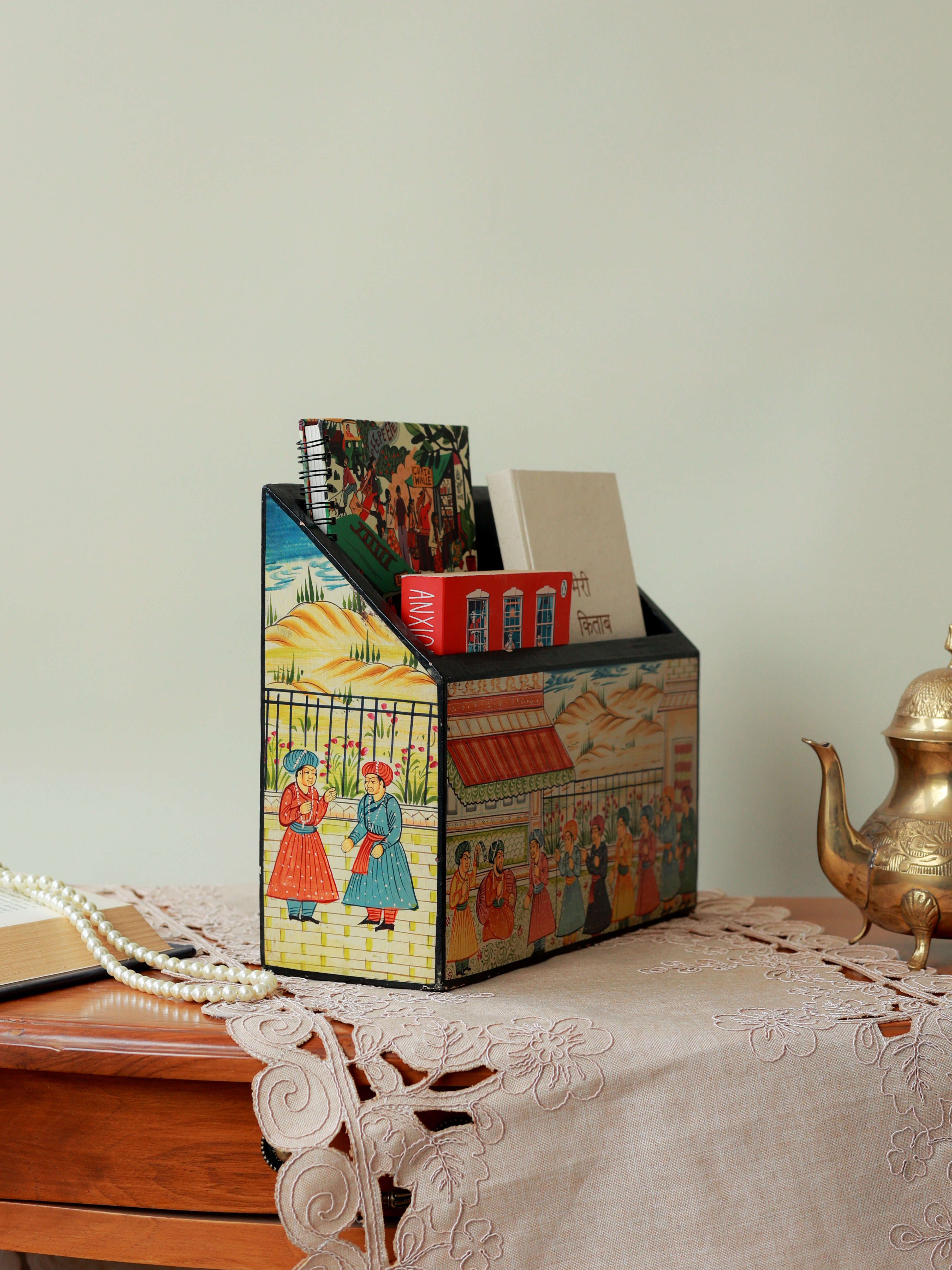 Majestic Manor Newspaper Stand brings heritage charm to your living space with its exquisite hand-painted detailing and timeless craftsmanship. Designed to keep your newspapers, magazines, and journals neatly organized, this elegant stand adds a regal touch to any corner. Its sturdy build and artistic finish make it both functional and decorative, perfect for homes that appreciate classic Indian artistry and refined décor accents.