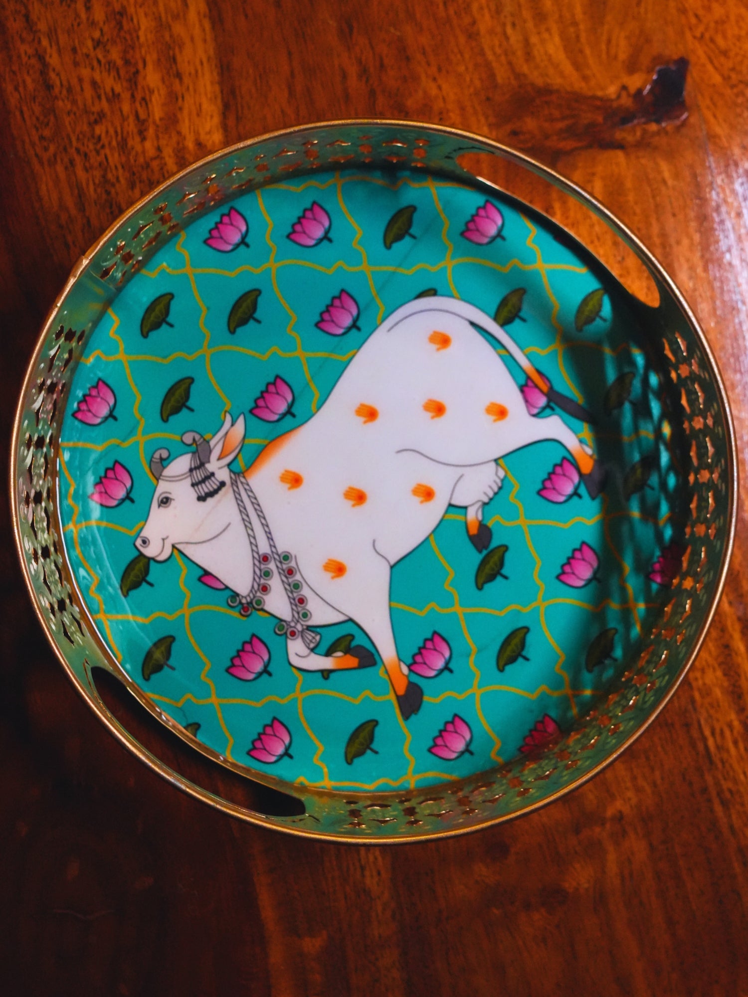 Metal Pichwai Tray with Decorative Pichwai Jar