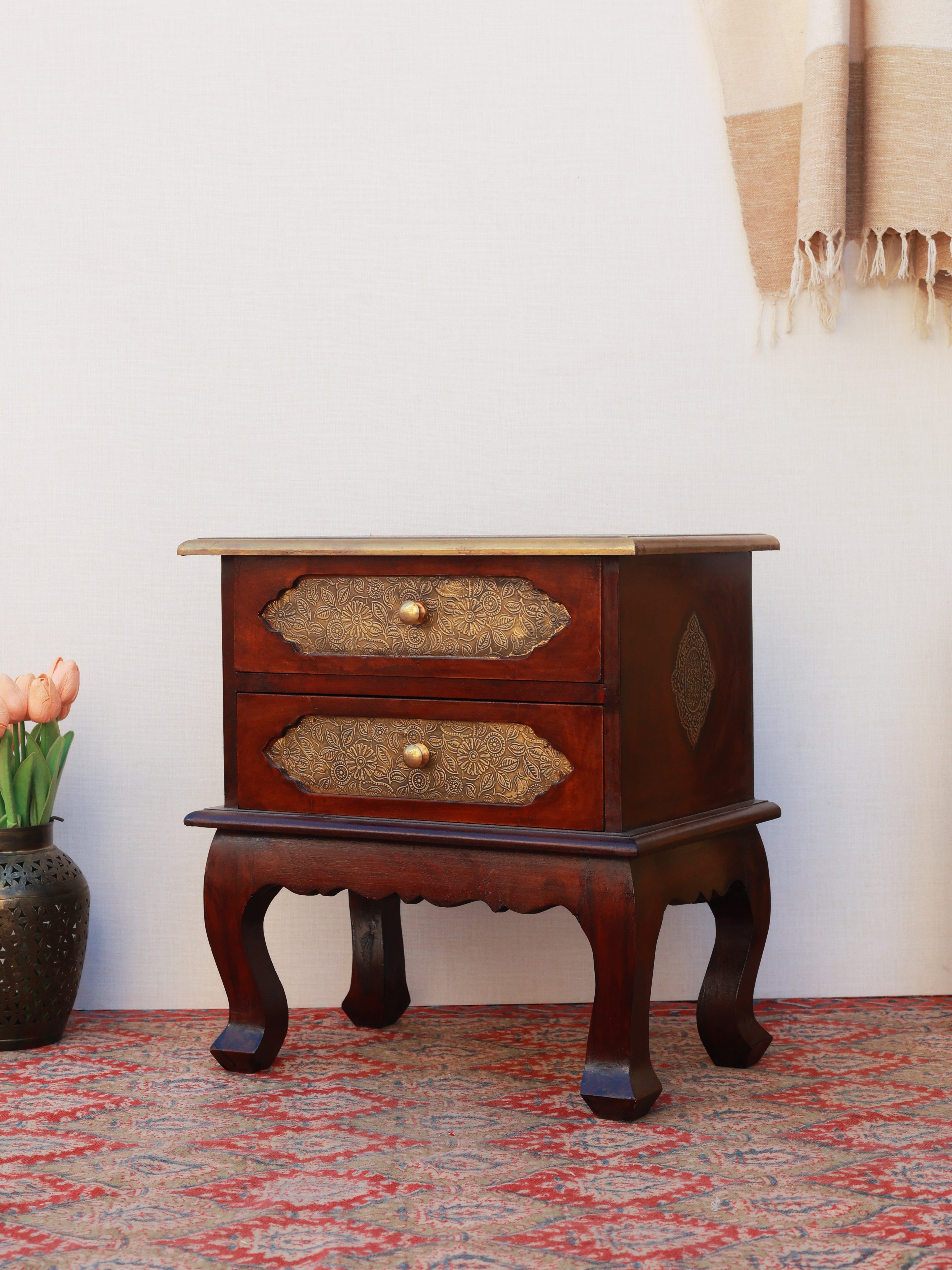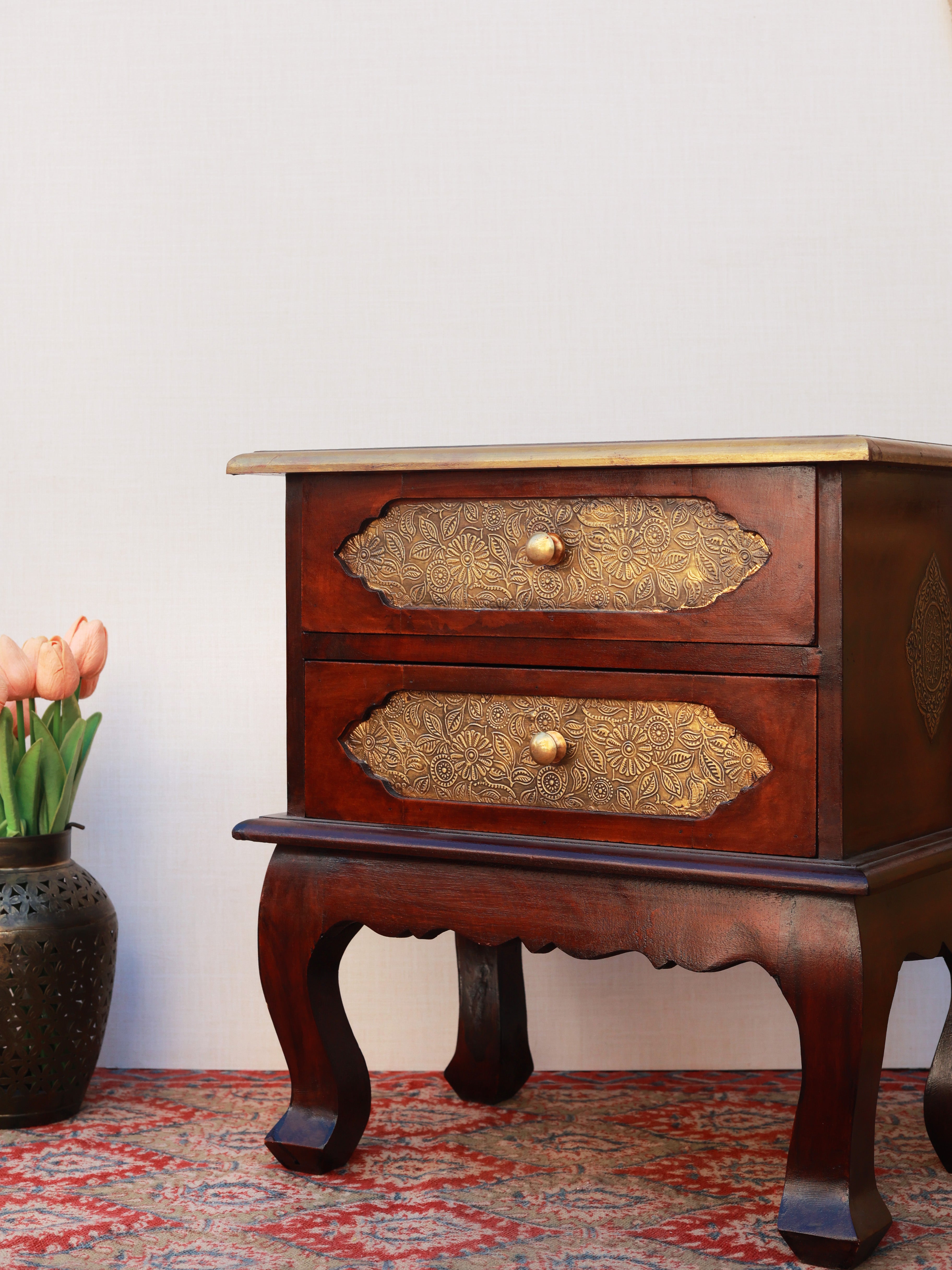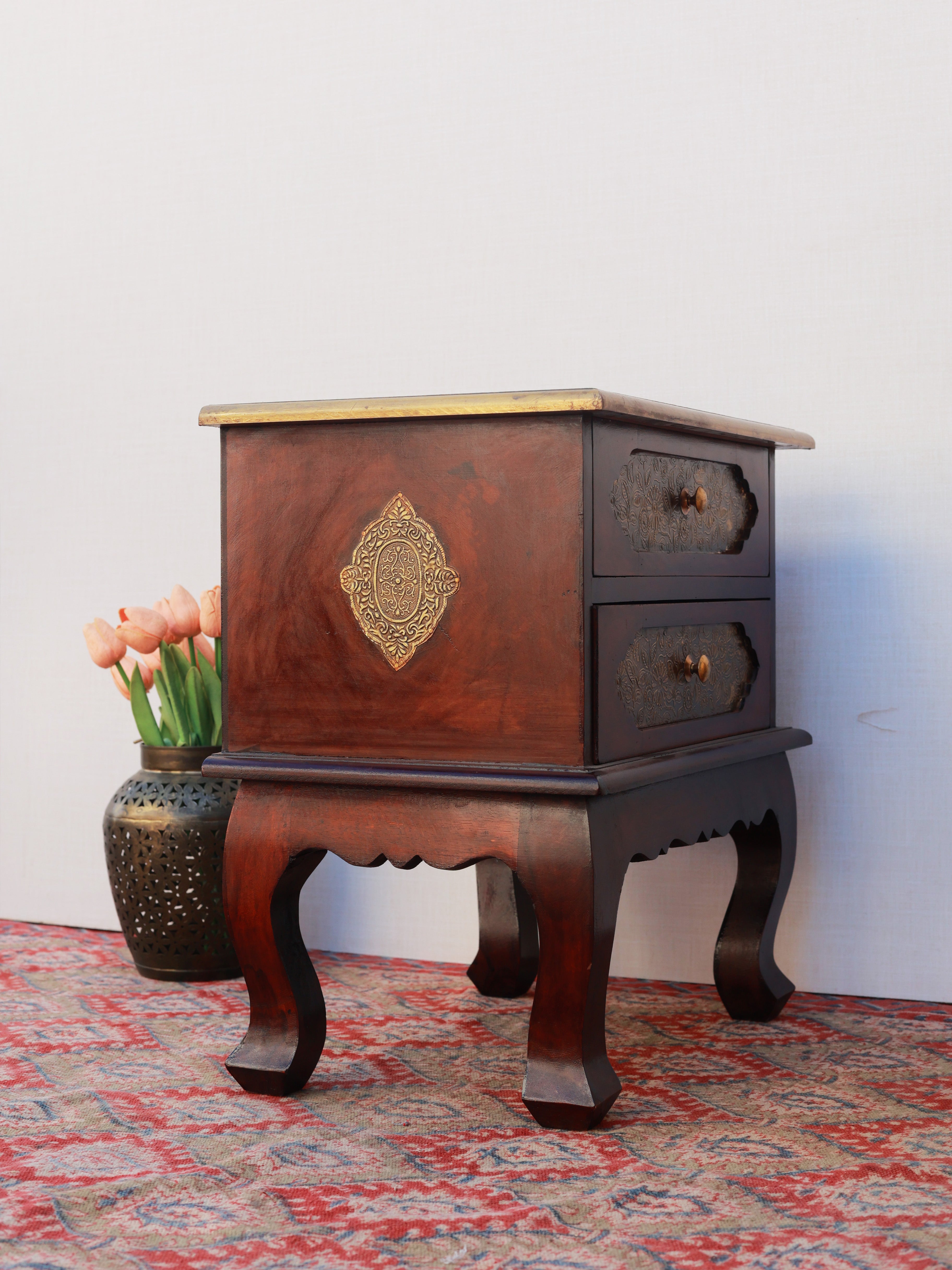 Elevate your space with the Royal Maharaja Brass Drawer Table, a masterpiece inspired by royal Indian craftsmanship. Handcrafted in rich hardwood and adorned with intricately embossed brass panels, this table blends heritage elegance with everyday utility. Its dual spacious drawers offer refined storage, while the classic curved legs add a touch of regal charm. A timeless statement piece that enhances bedrooms, living rooms, or entryways with effortless luxury.