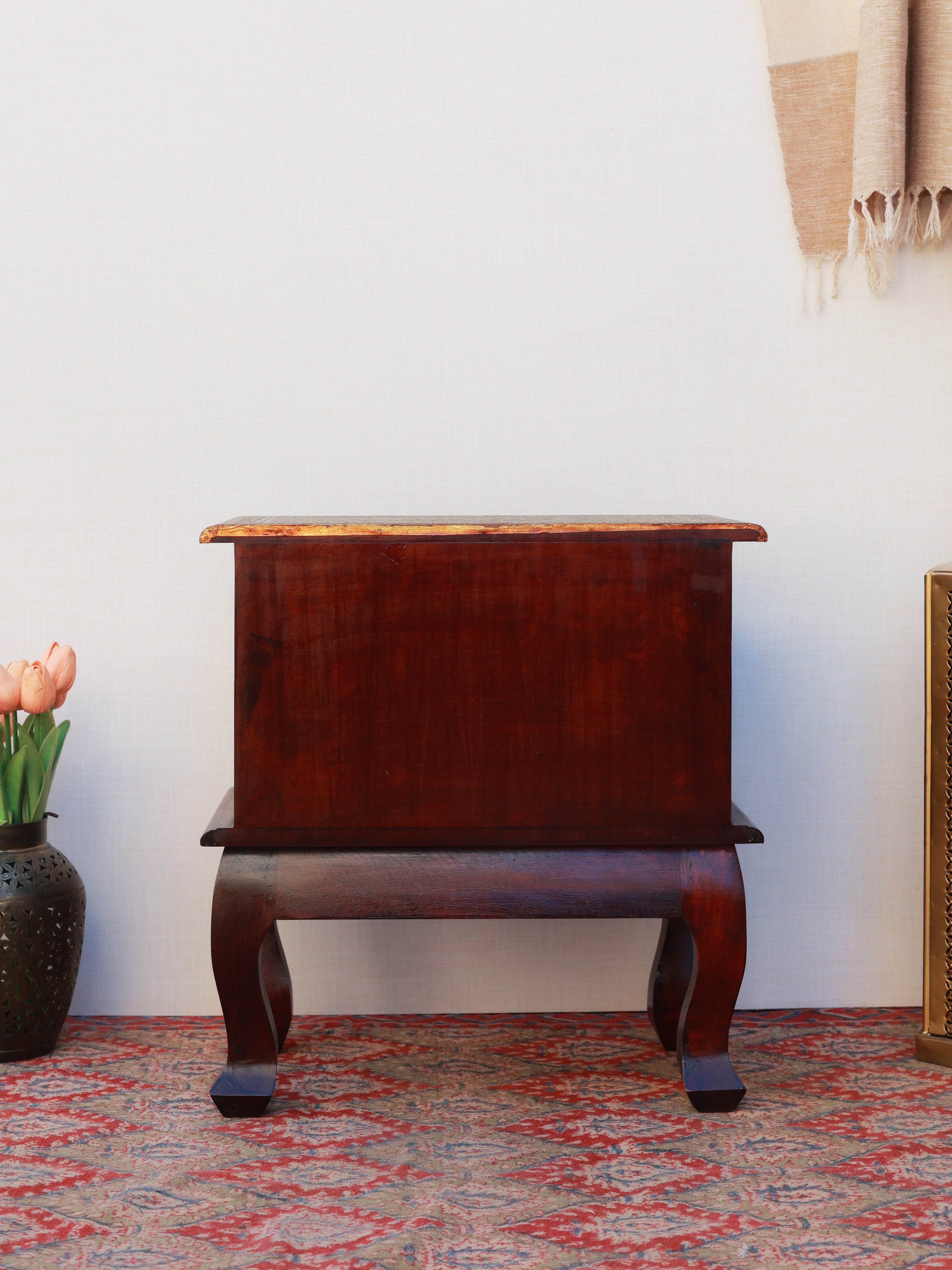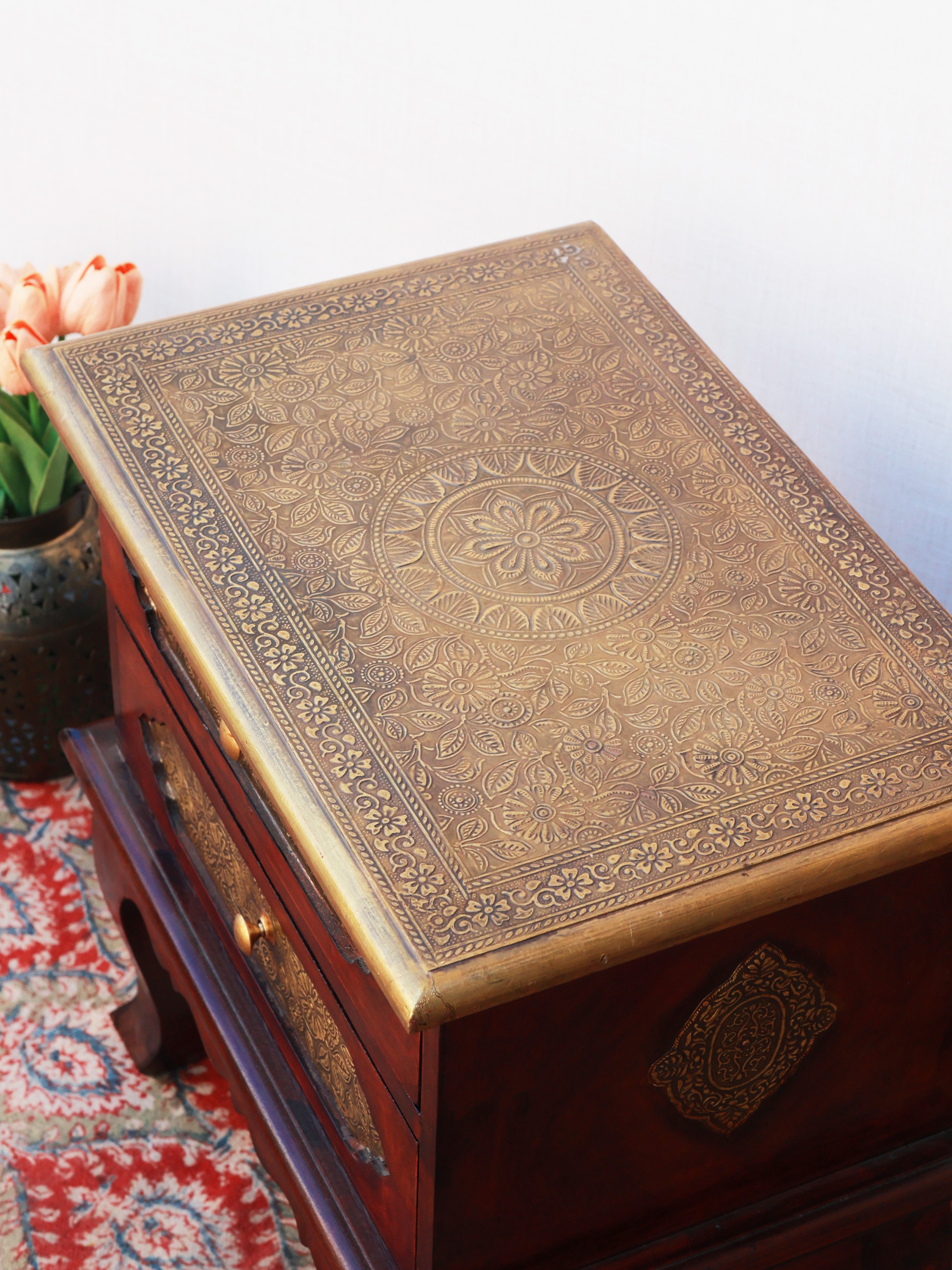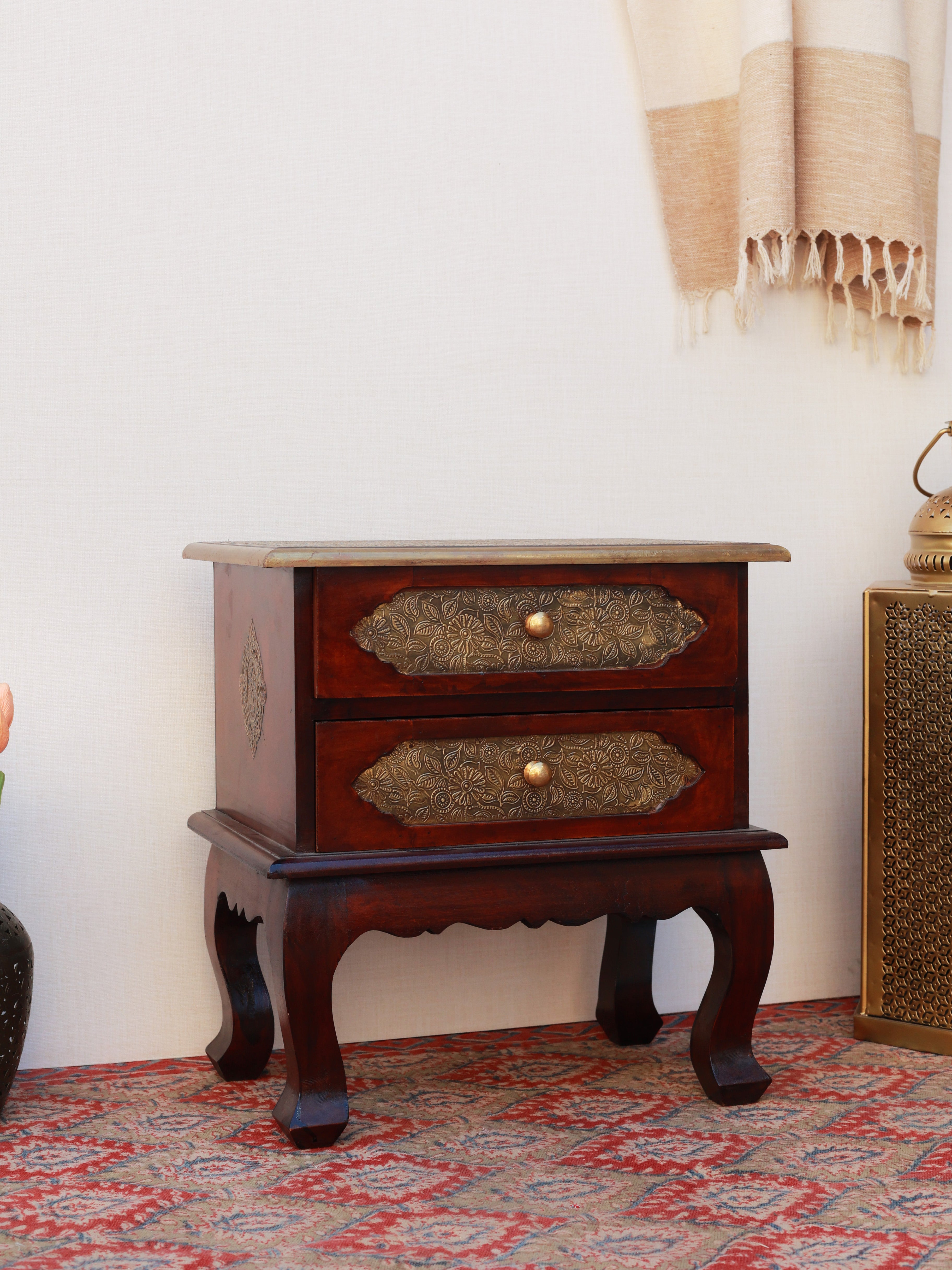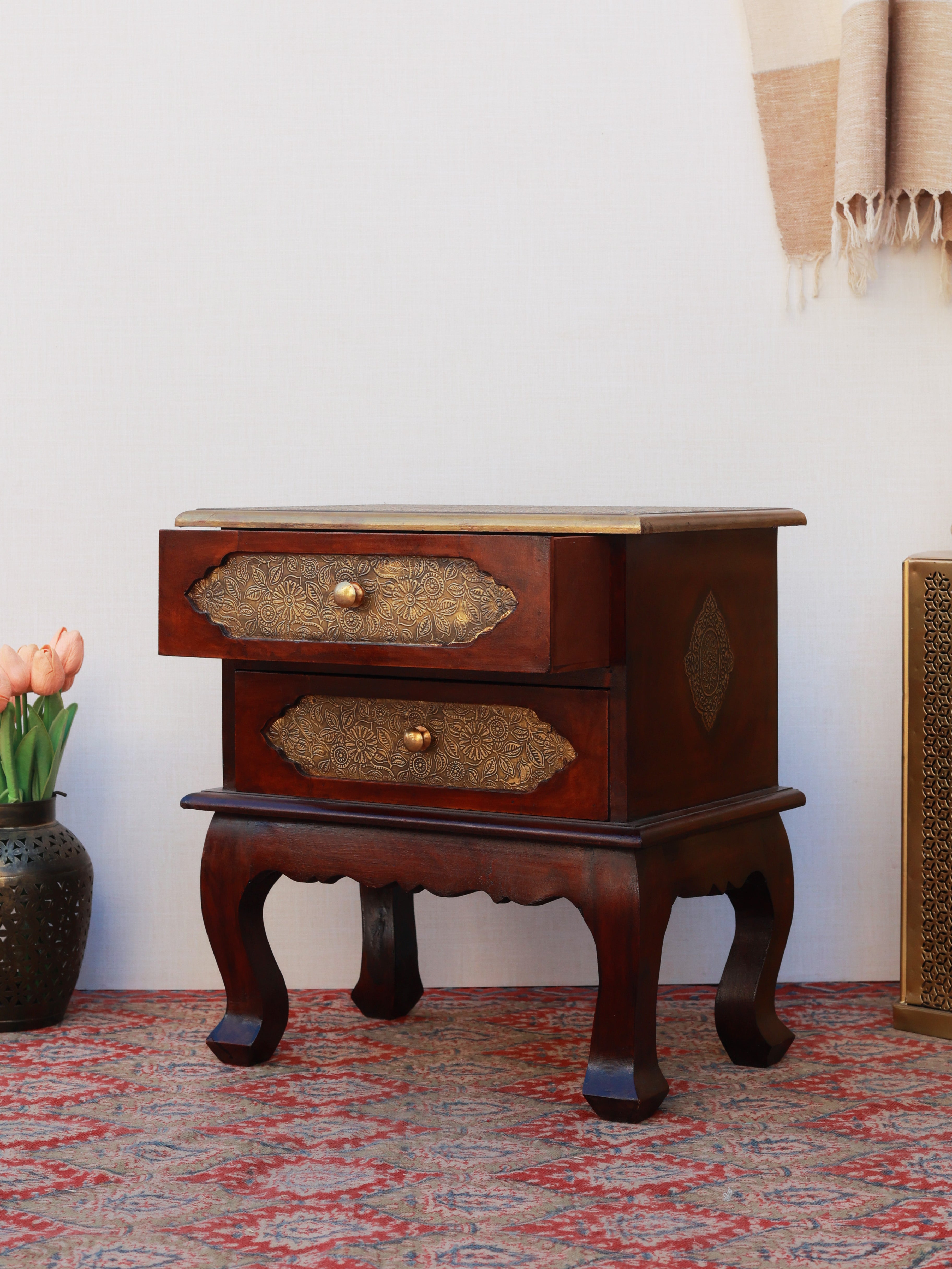 Elevate your space with the Royal Maharaja Brass Drawer Table, a masterpiece inspired by royal Indian craftsmanship. Handcrafted in rich hardwood and adorned with intricately embossed brass panels, this table blends heritage elegance with everyday utility. Its dual spacious drawers offer refined storage, while the classic curved legs add a touch of regal charm. A timeless statement piece that enhances bedrooms, living rooms, or entryways with effortless luxury.